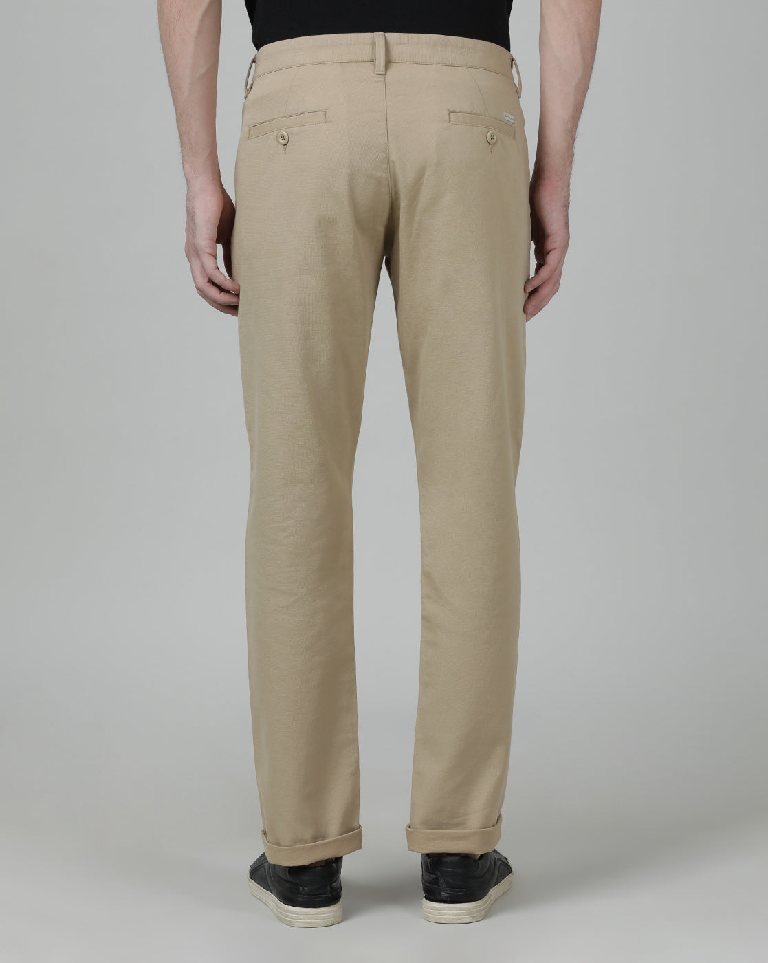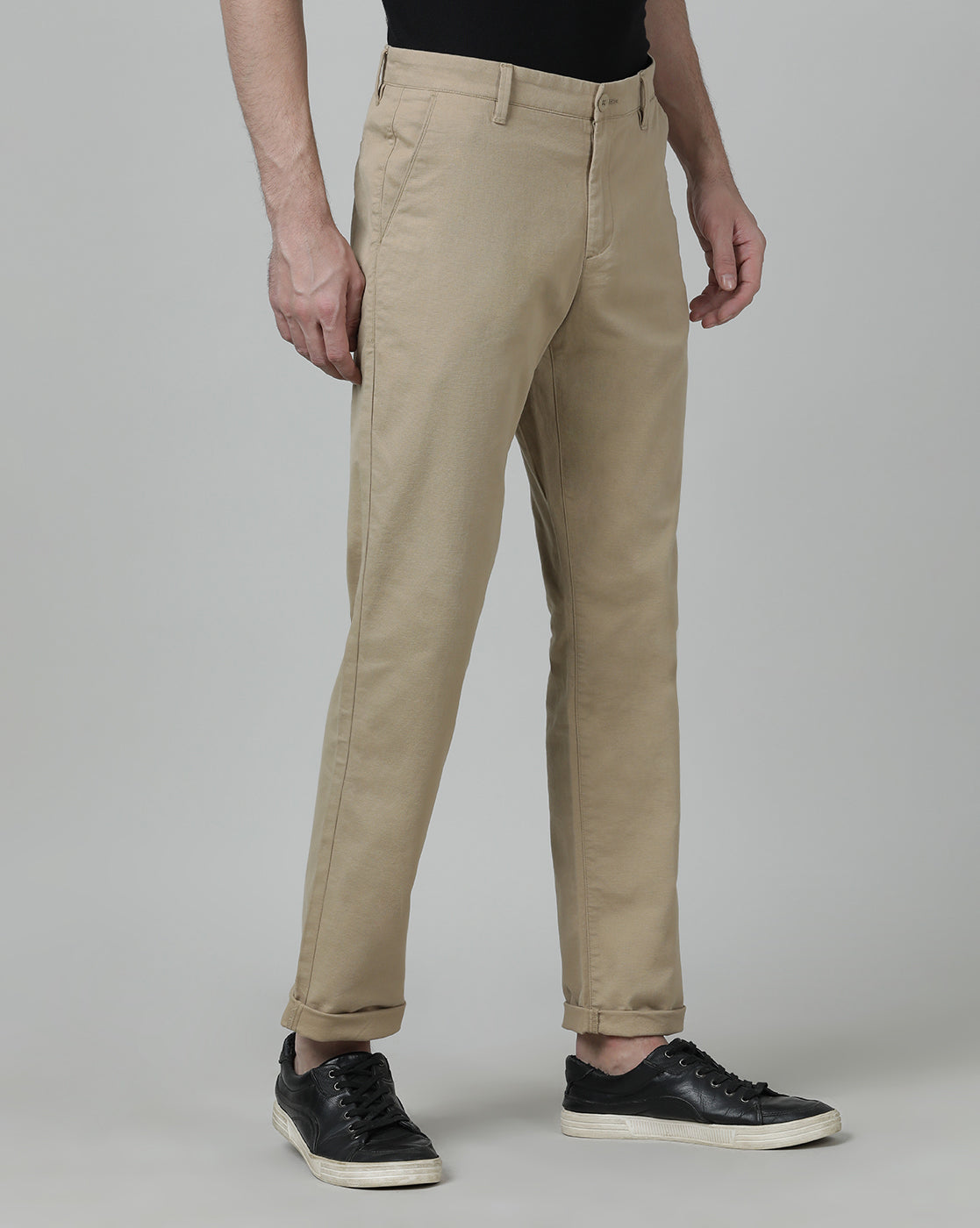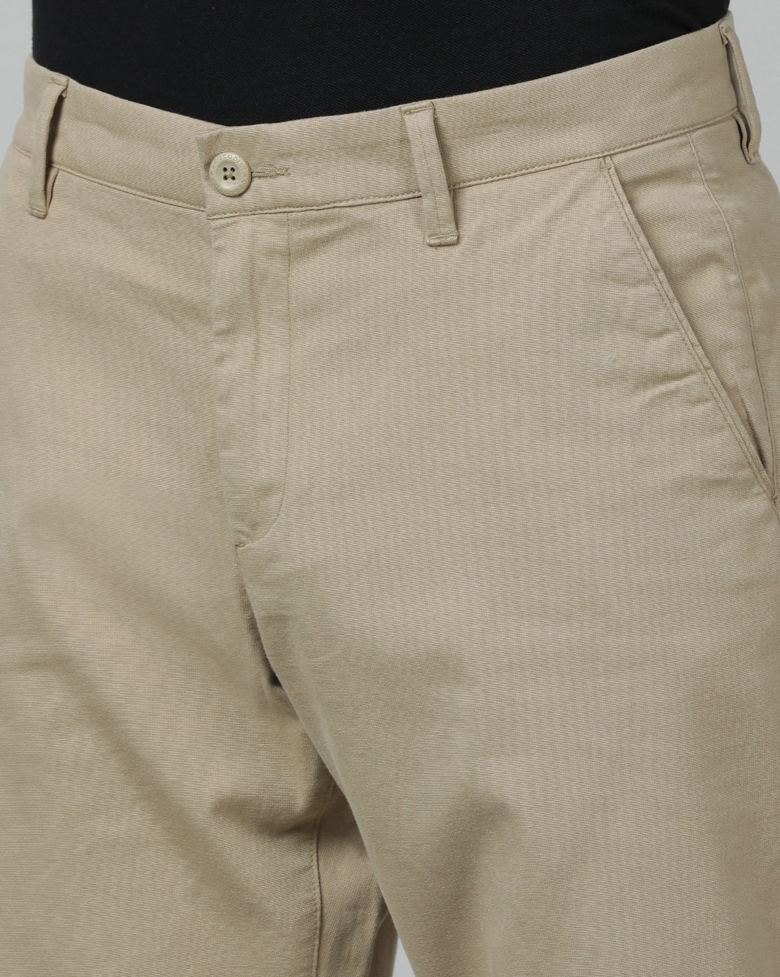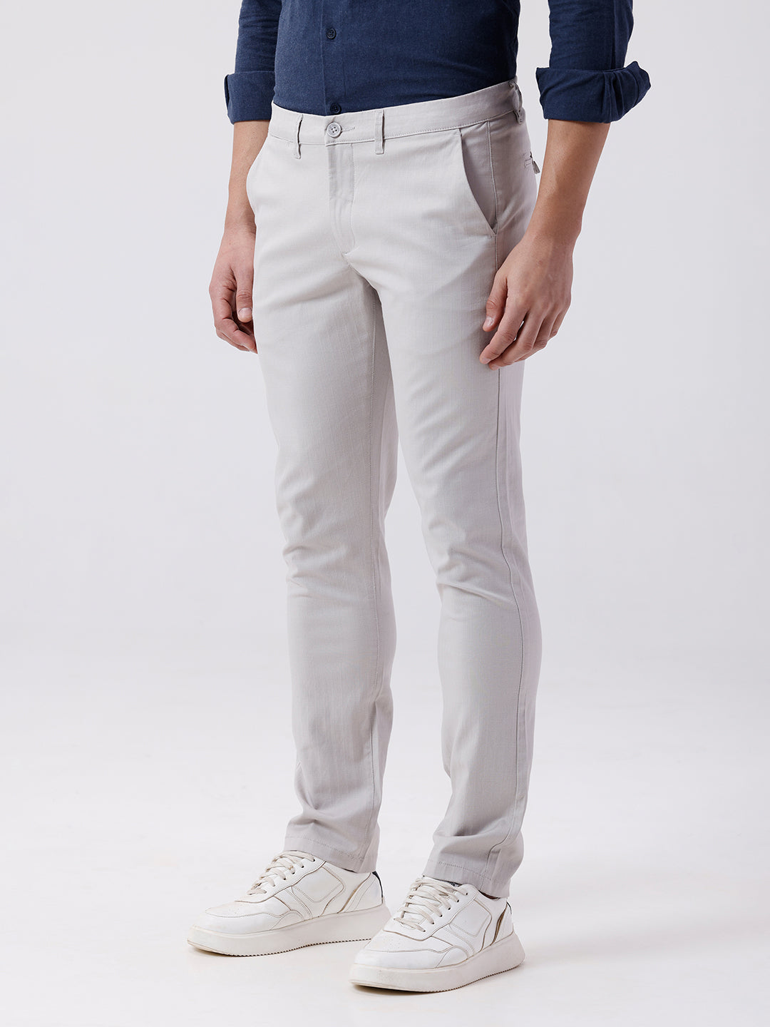 Light Beige Solid Slim Fit Casual Trouser