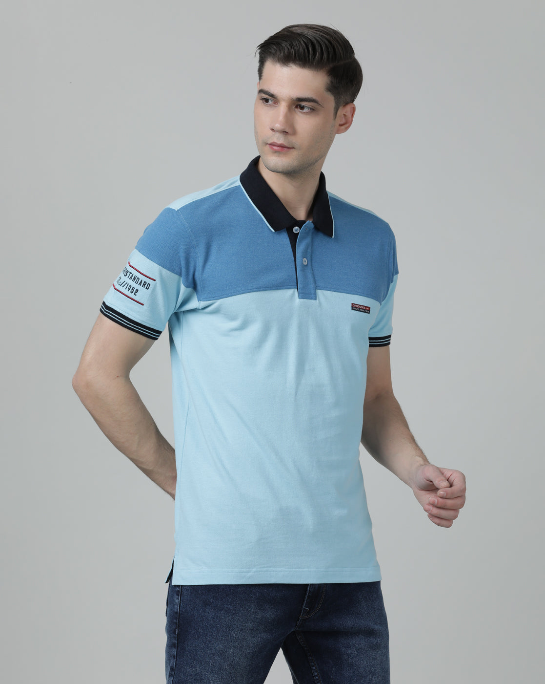 Light Blue Colourblocked Polo T-Shirt