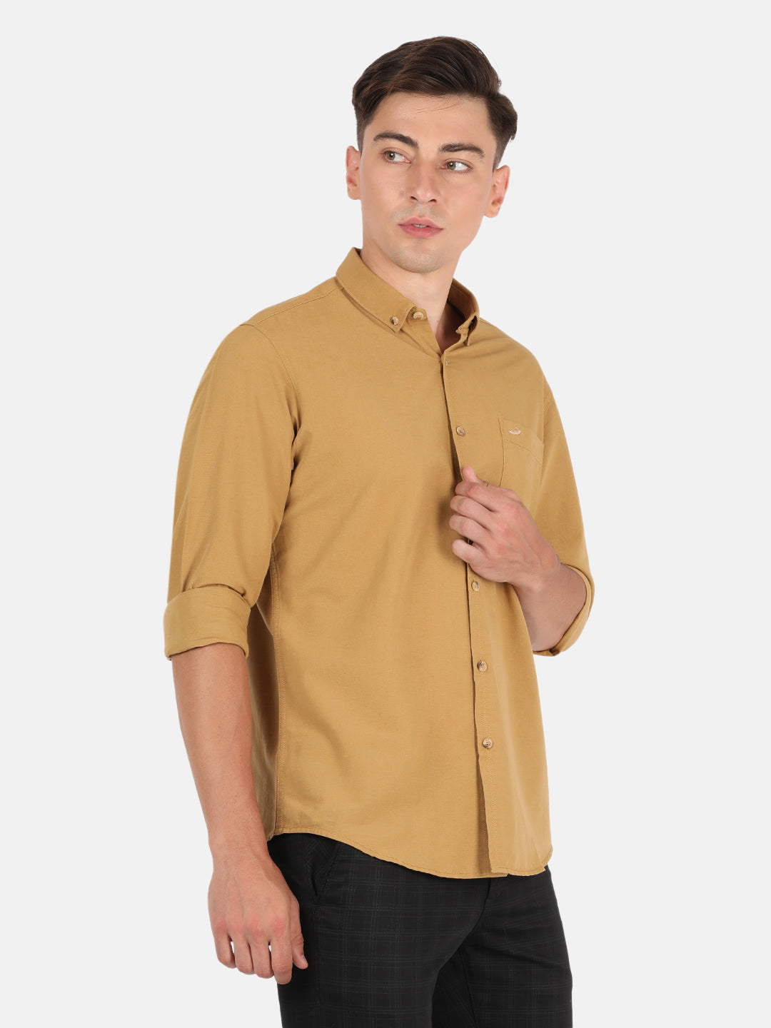 Light Brown Solid Full Sleeve Shirt