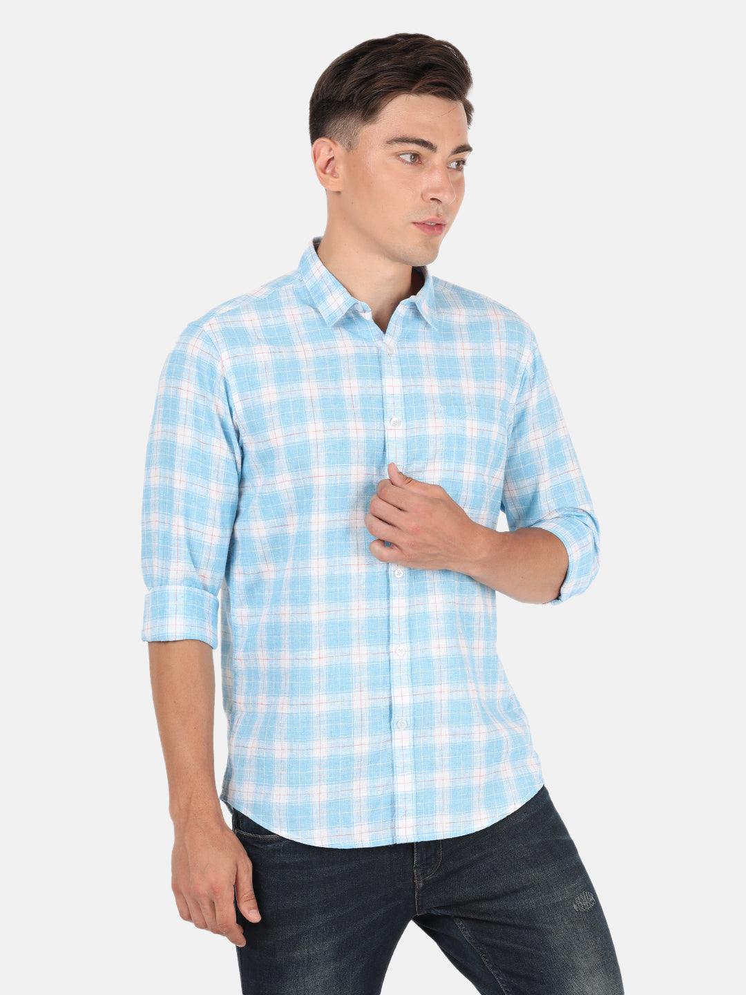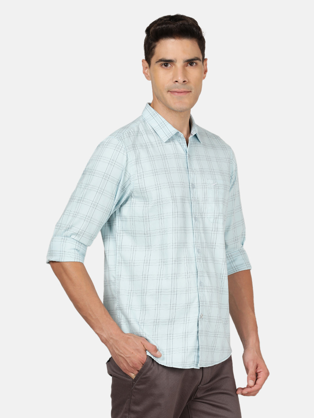 Light Blue Checked Full Sleeve Shirt