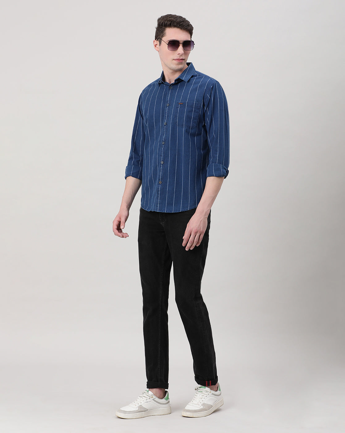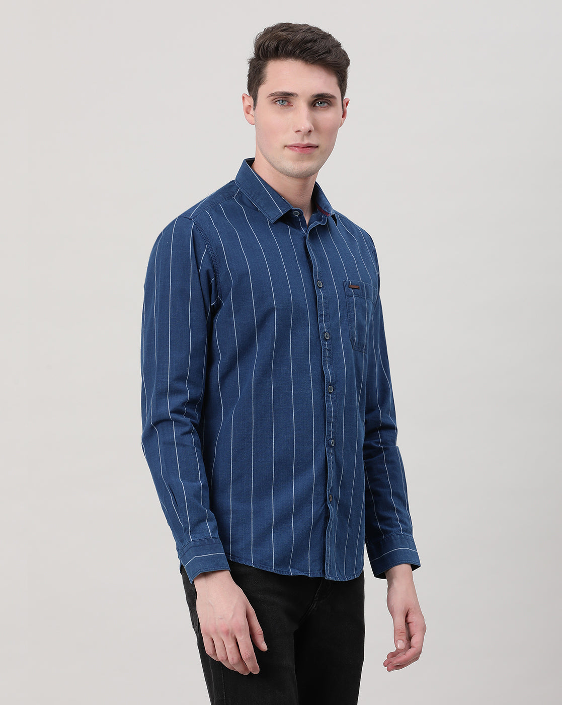 Indigo Navy Striped Casual Full Sleeve 100% Cotton Shirt