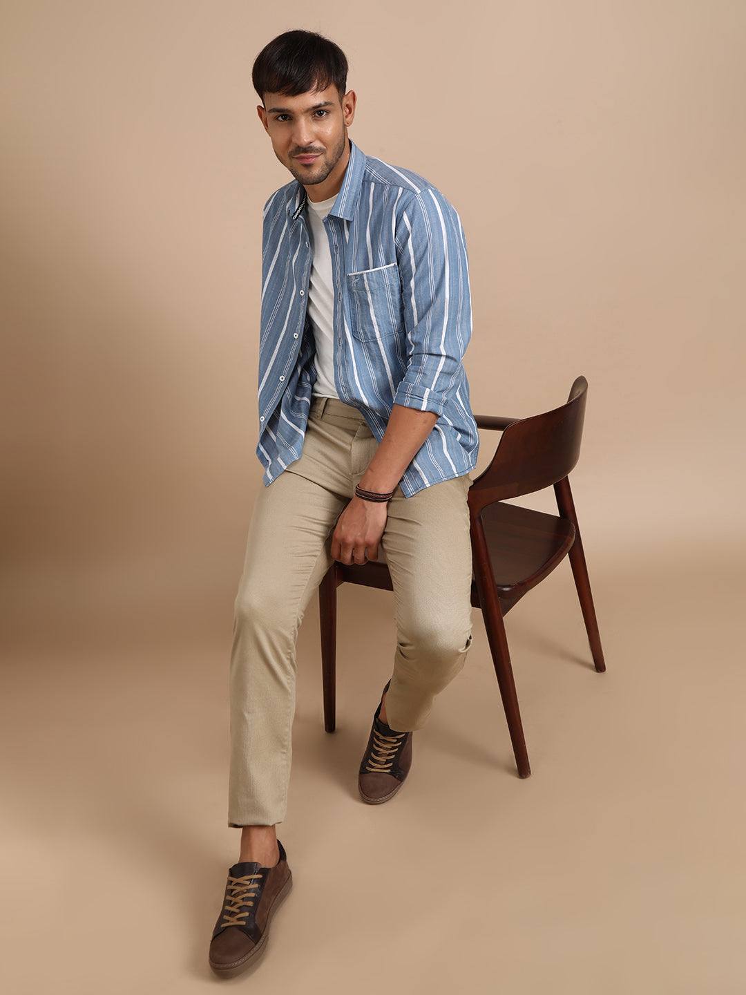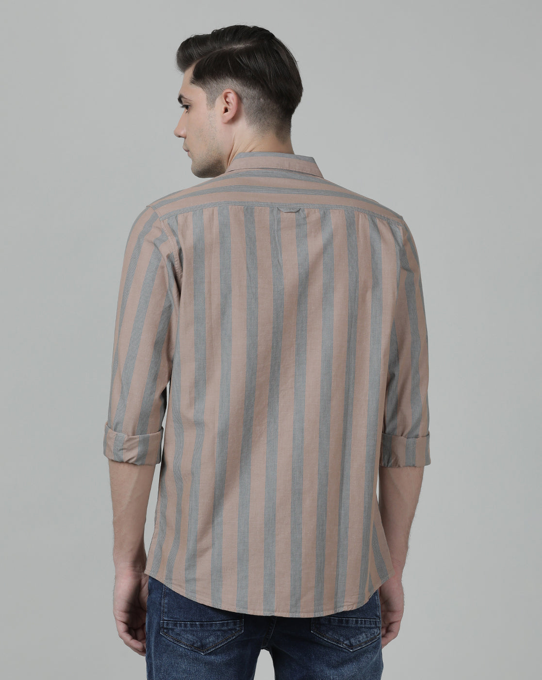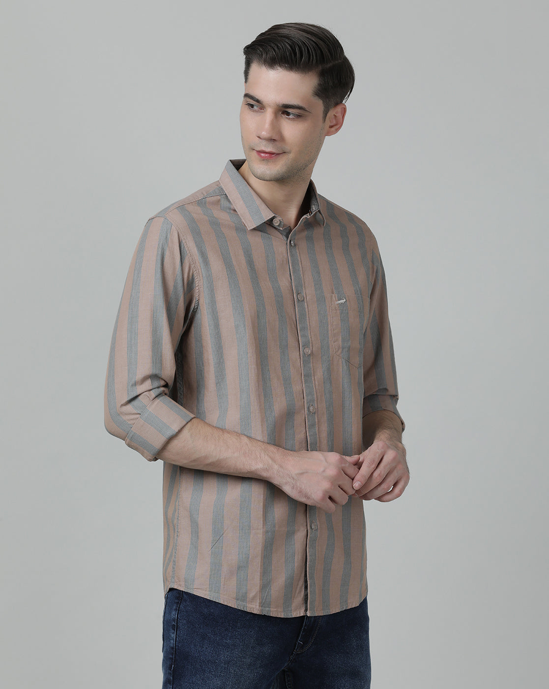 Light Brown Striped Full Sleeve 100% Cotton Shirt