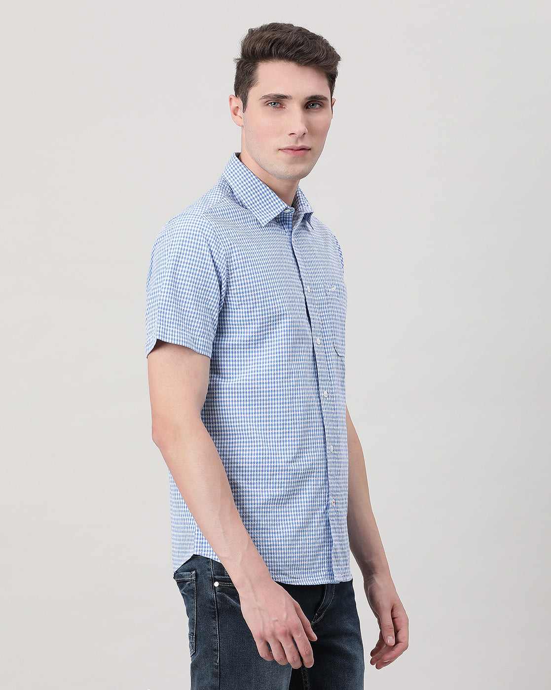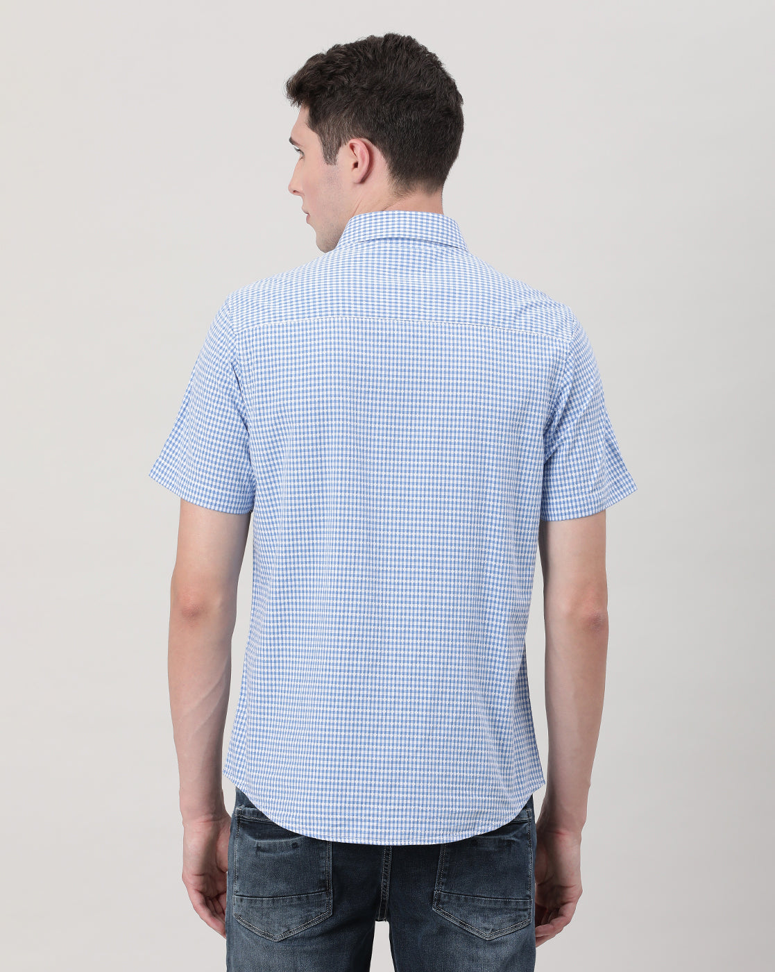 Light Blue Checked Half Sleeve 100% Cotton Shirt