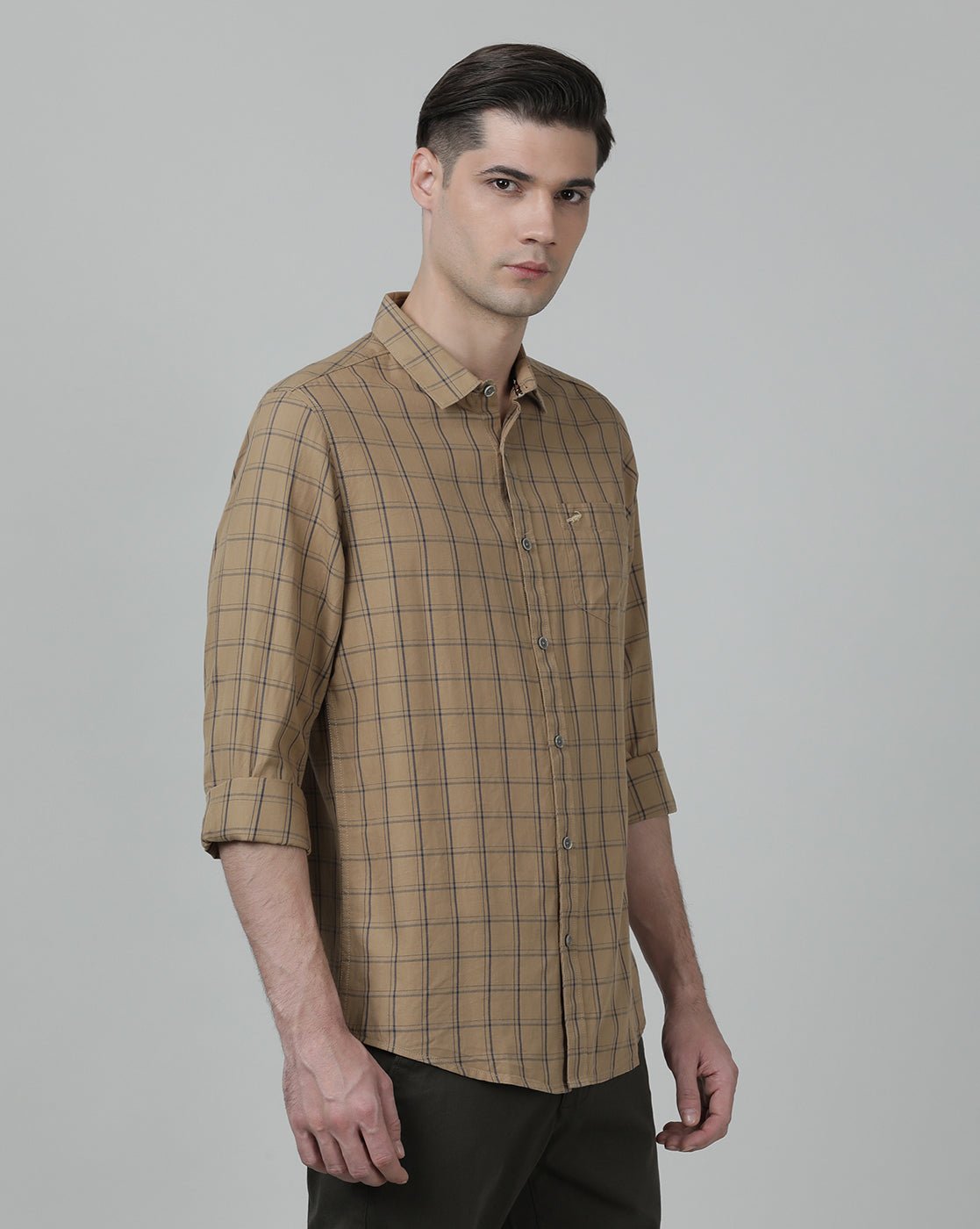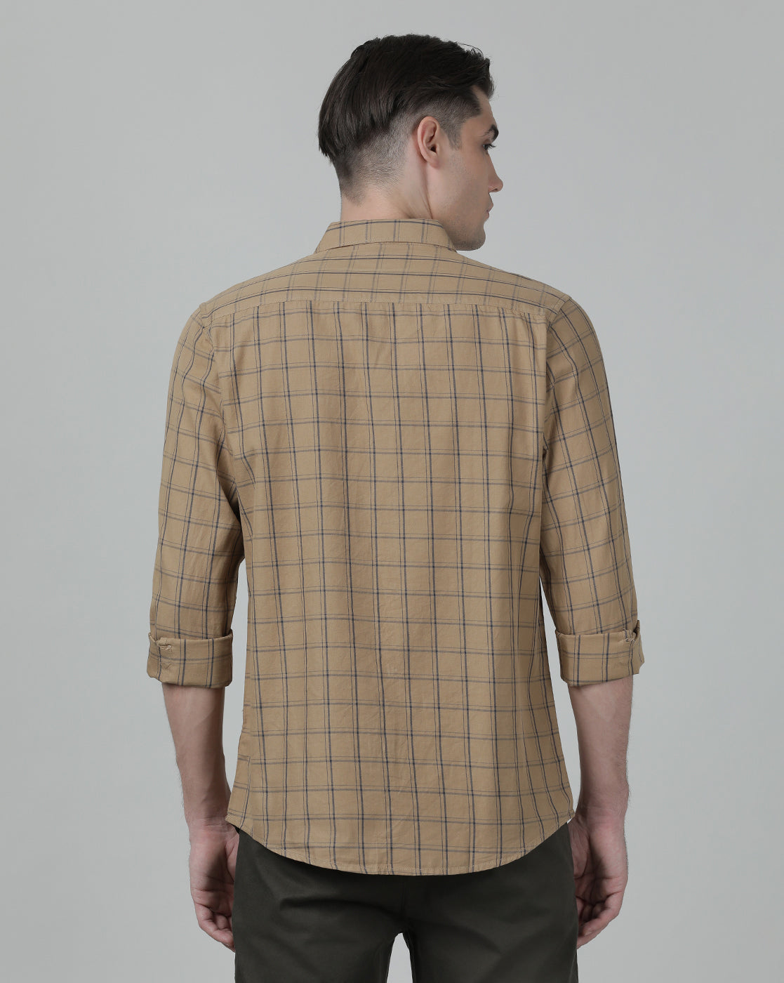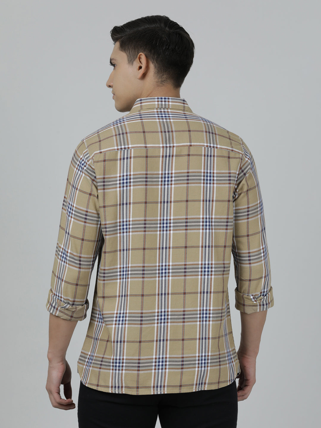 Khaki Brown Checked Full Sleeve 100% Cotton Shirt