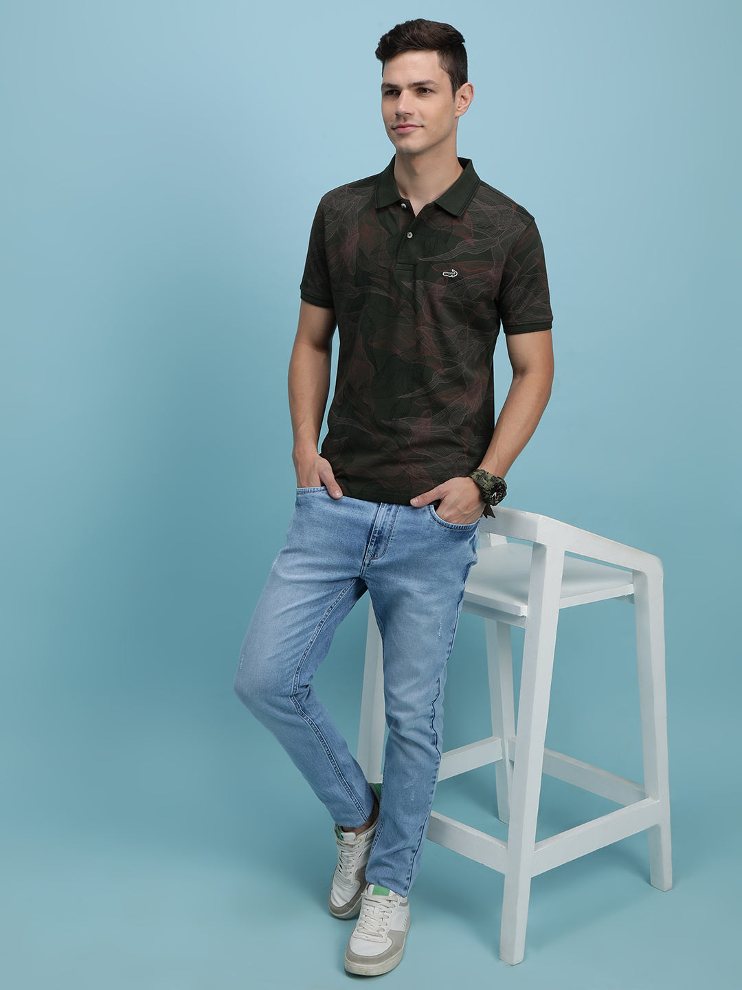 Light Blue Printed Casual Polo T-Shirt