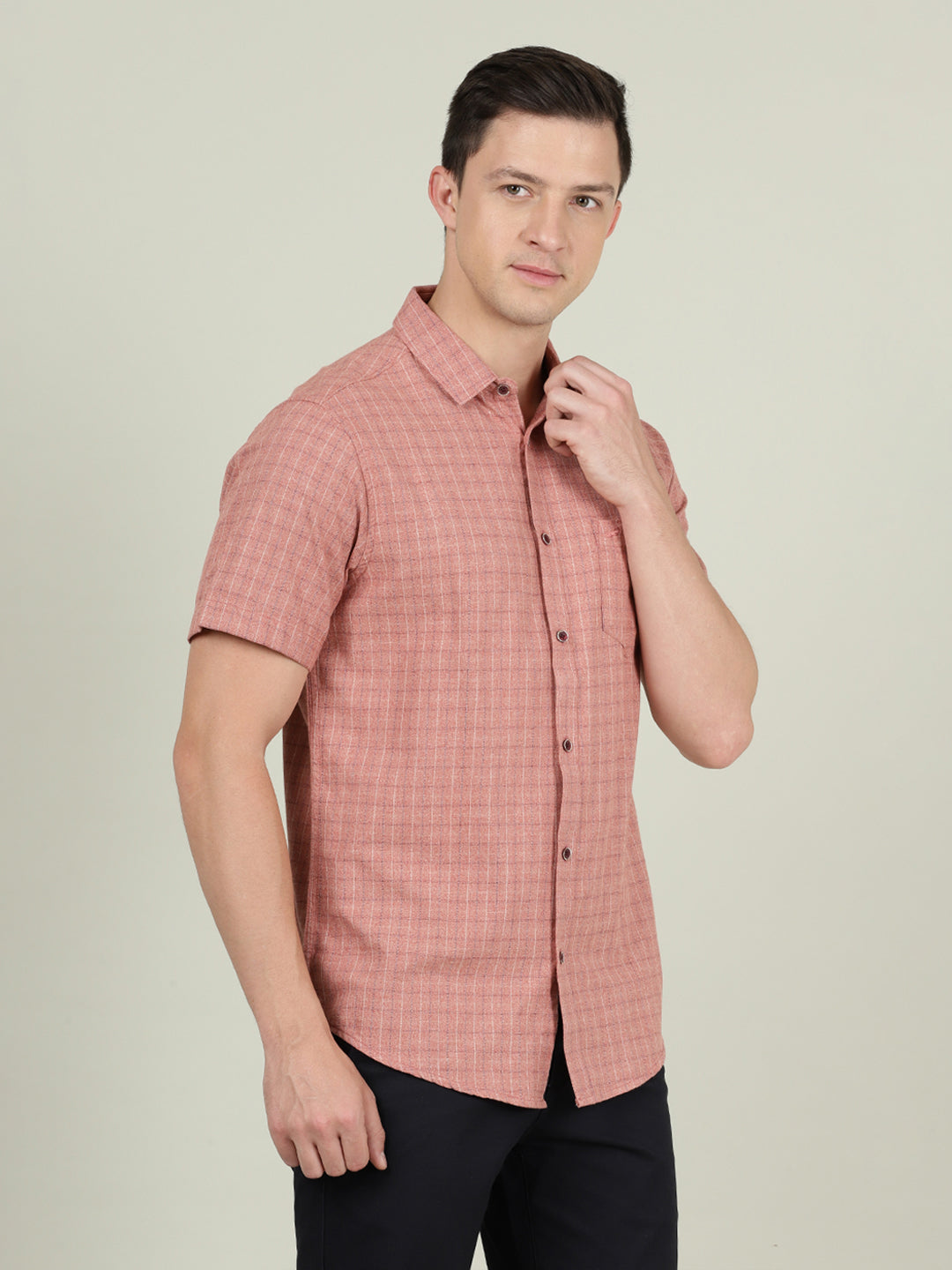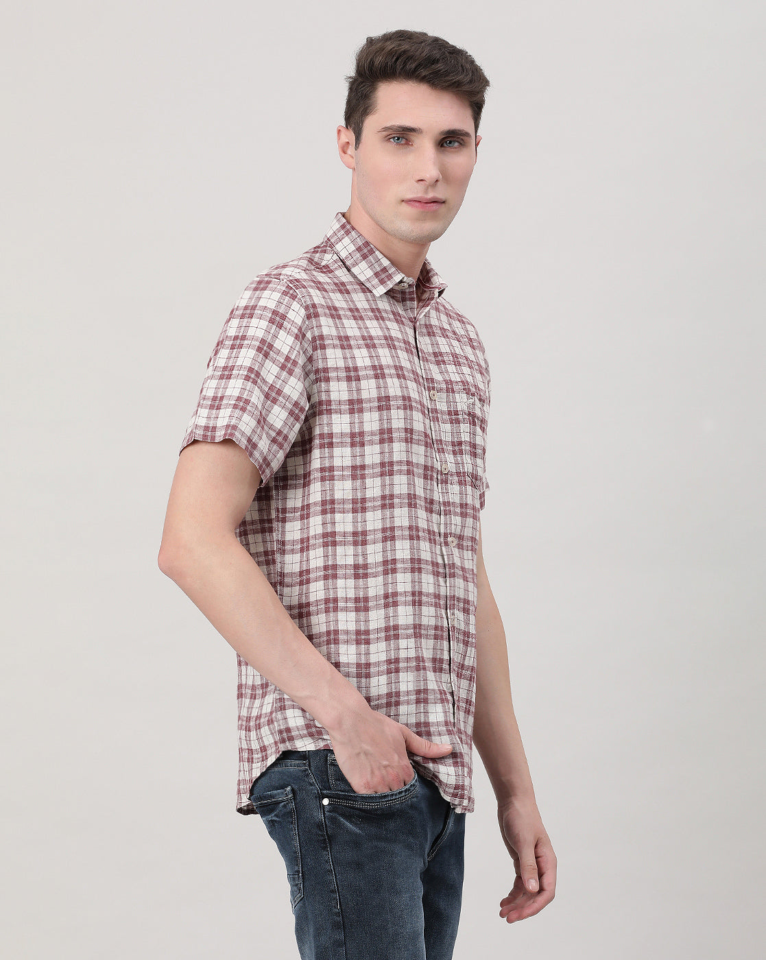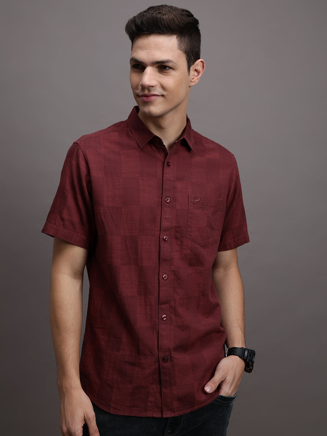 Maroon Checked Half Sleeve 100% Cotton Shirt