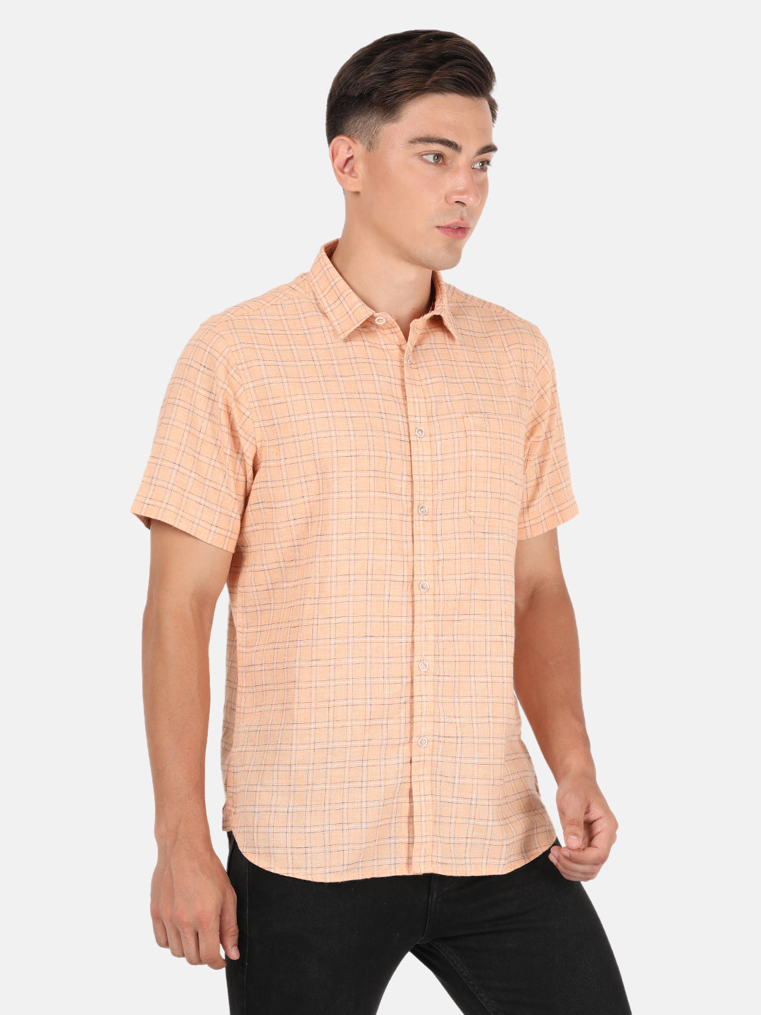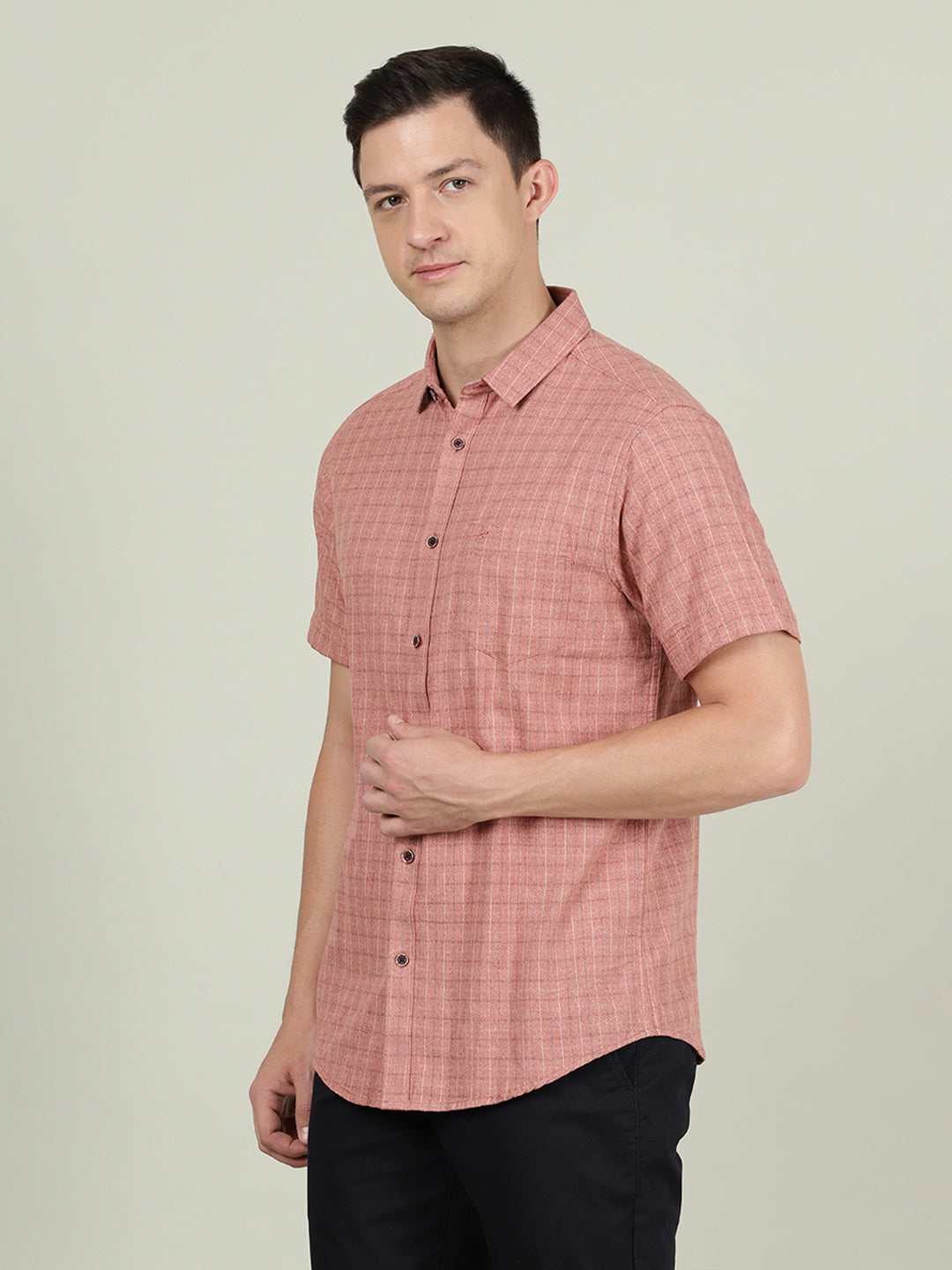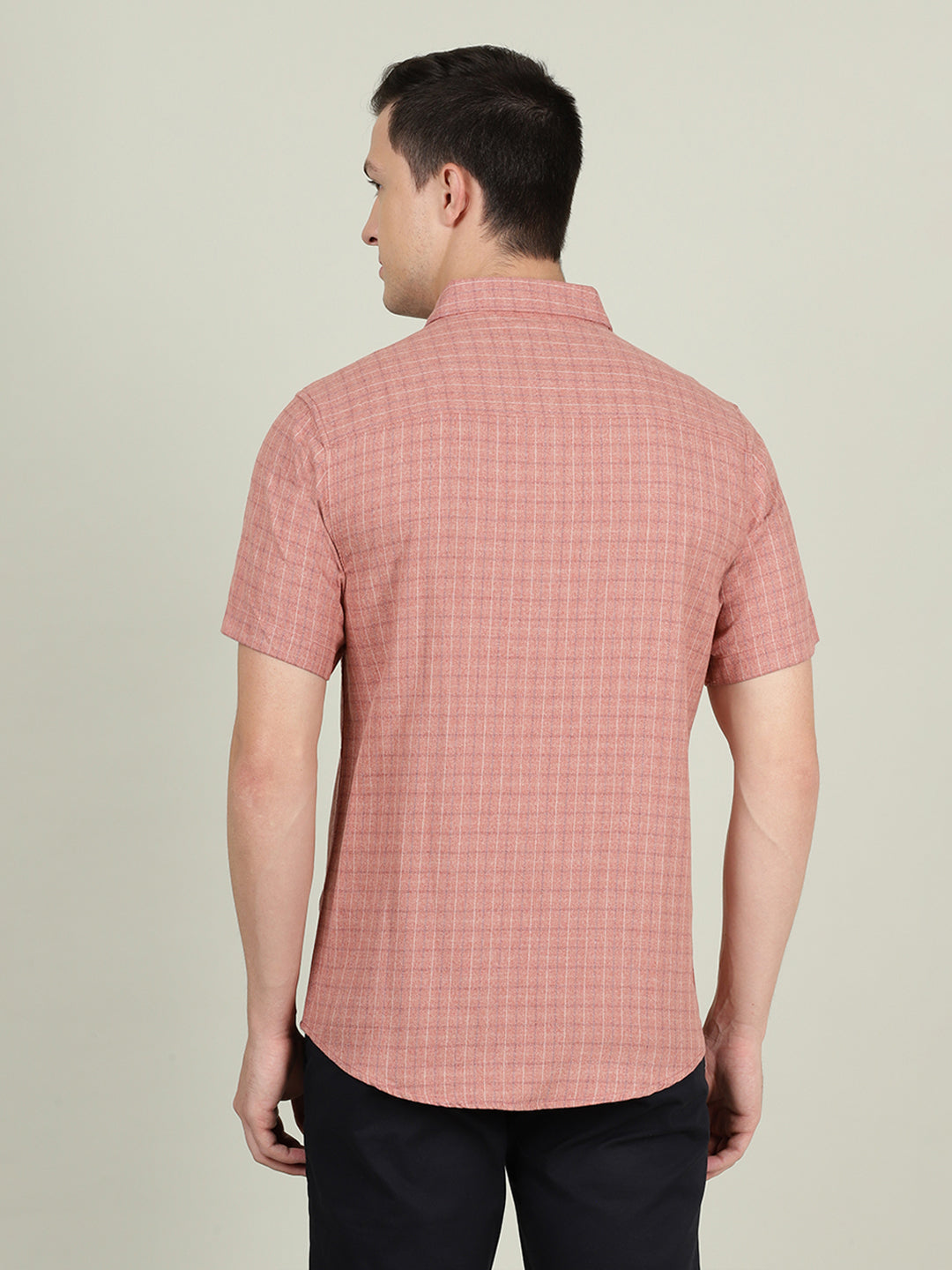 Maroon Checked Half Sleeve 100% Cotton Shirt