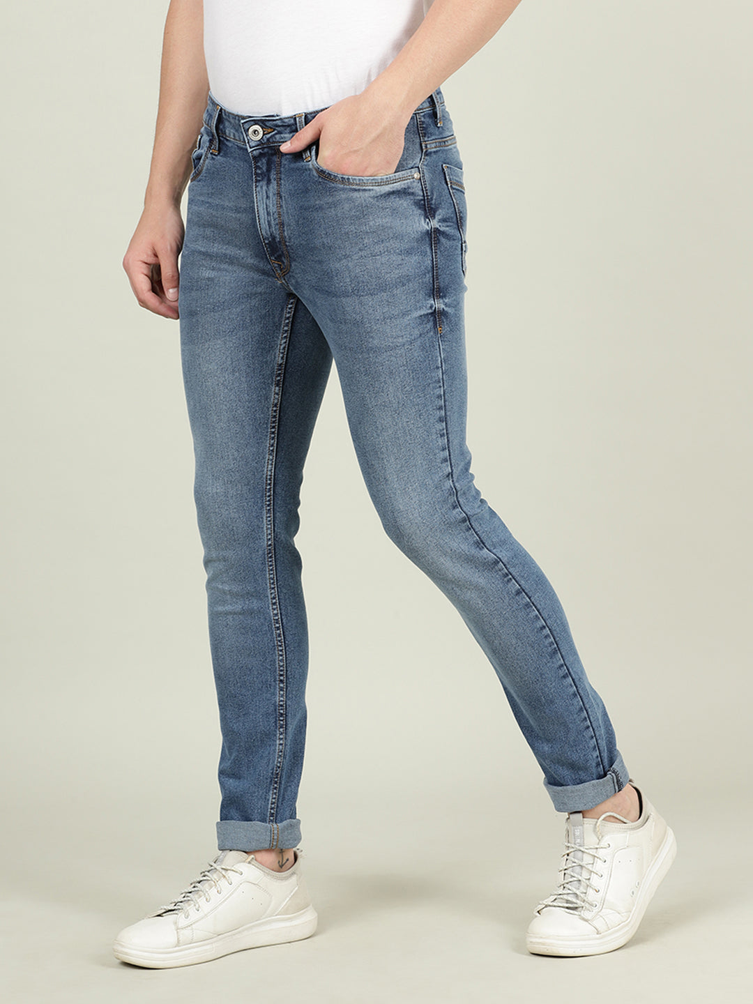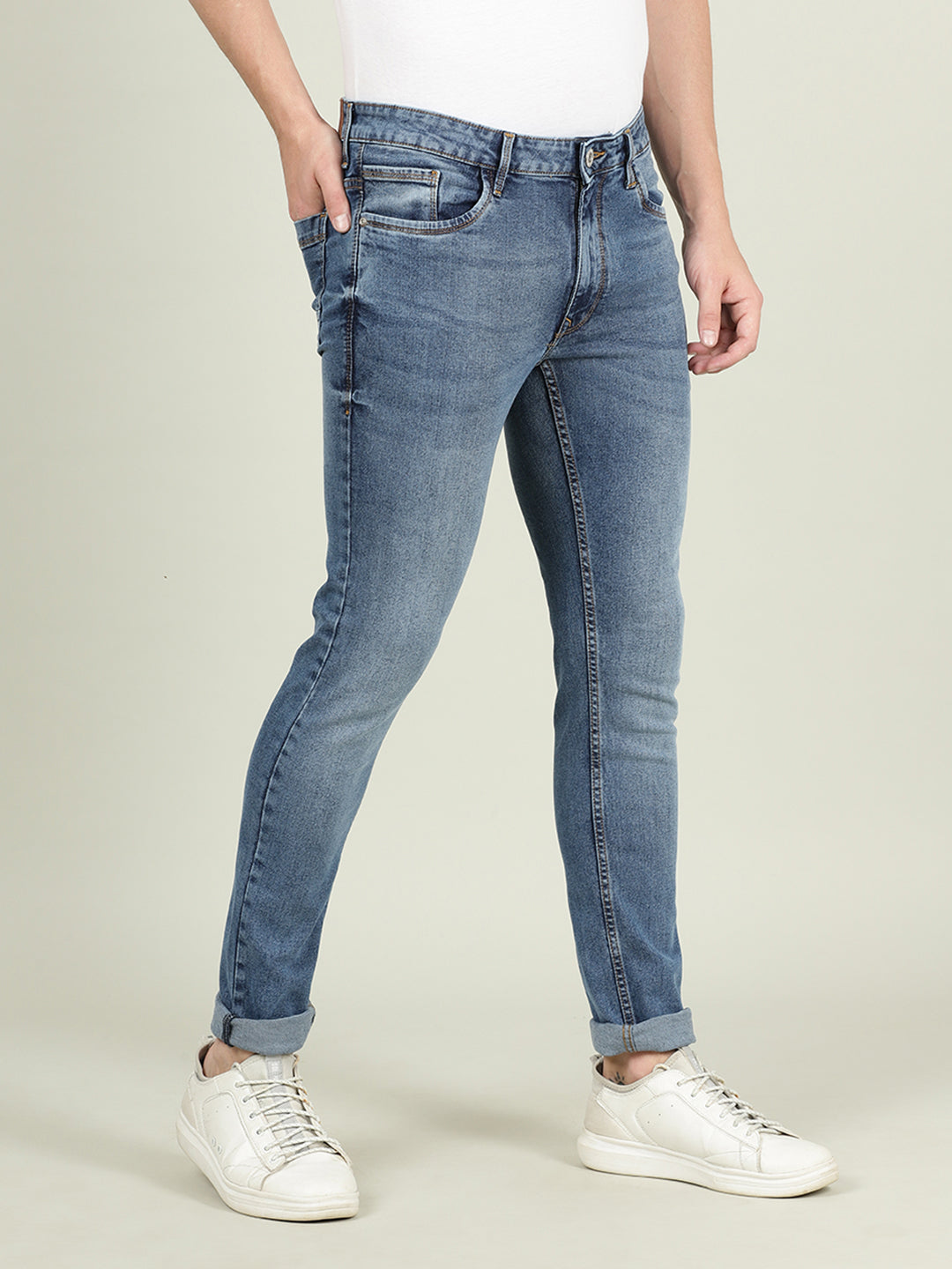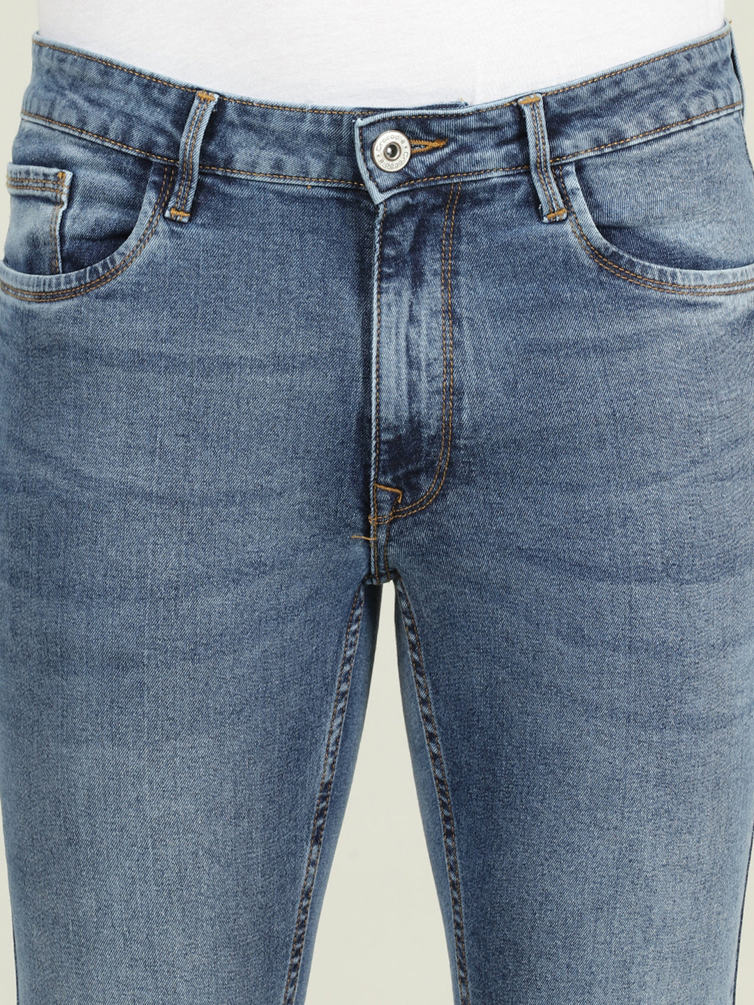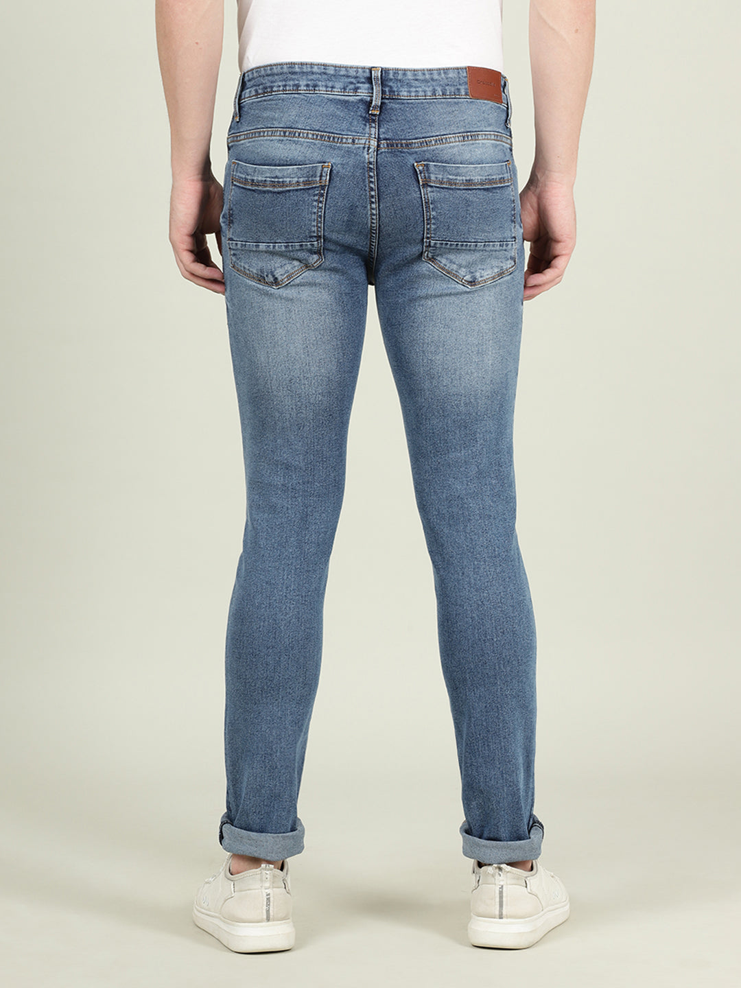 Mid Blue Casual Solid Mid Rise Slim Fit Jean