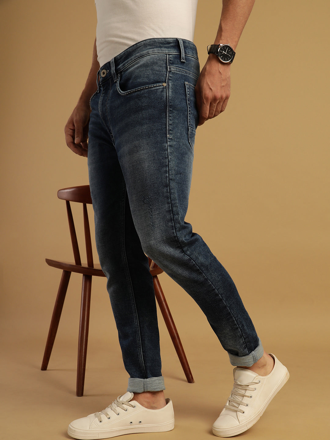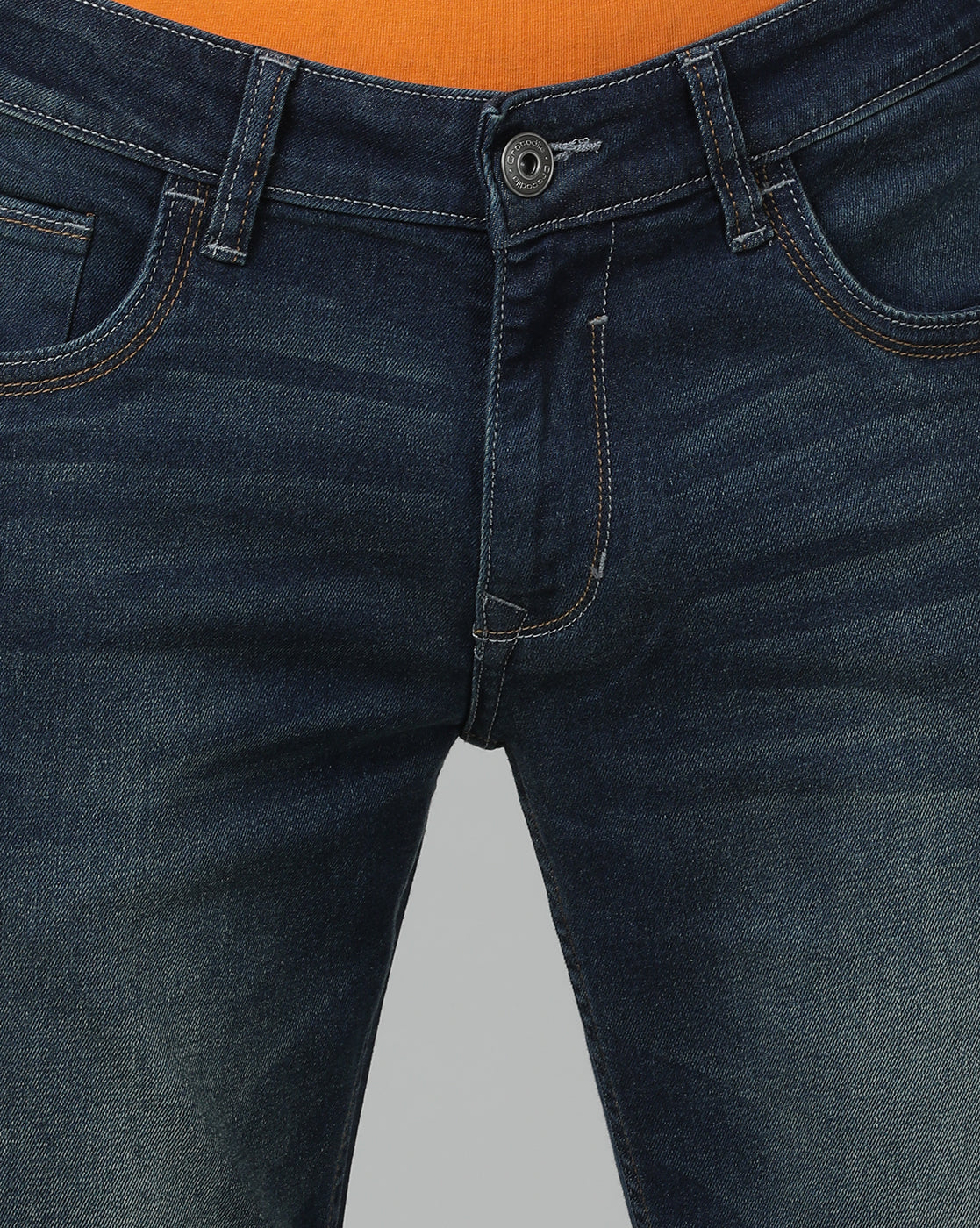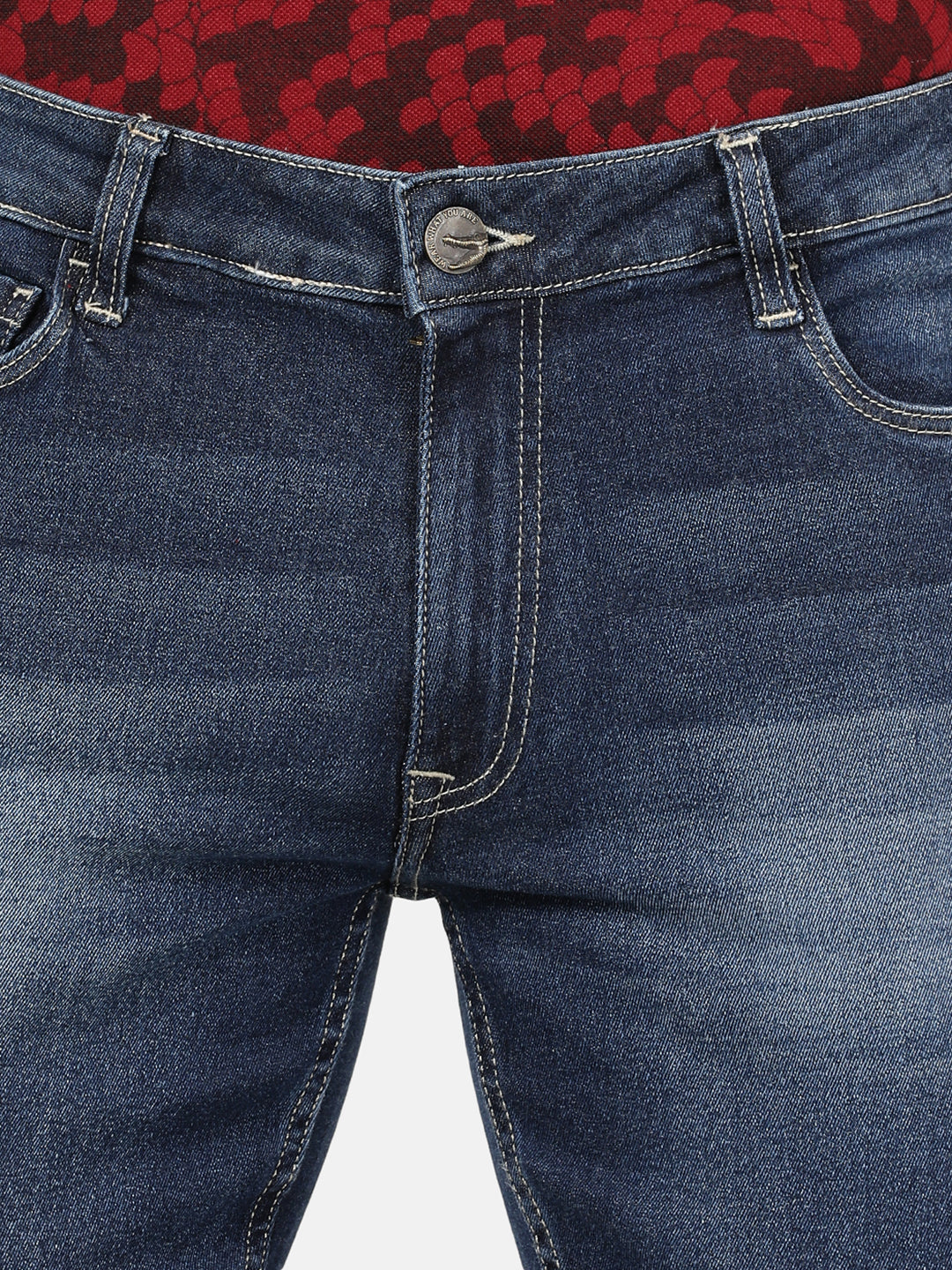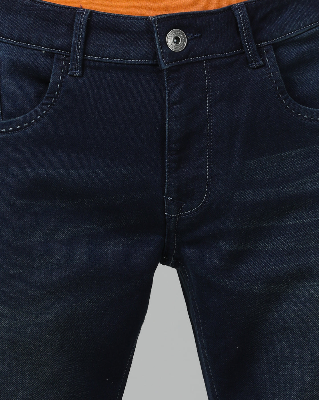 Mid Blue Casual Solid Mid Rise Slim Fit Jean