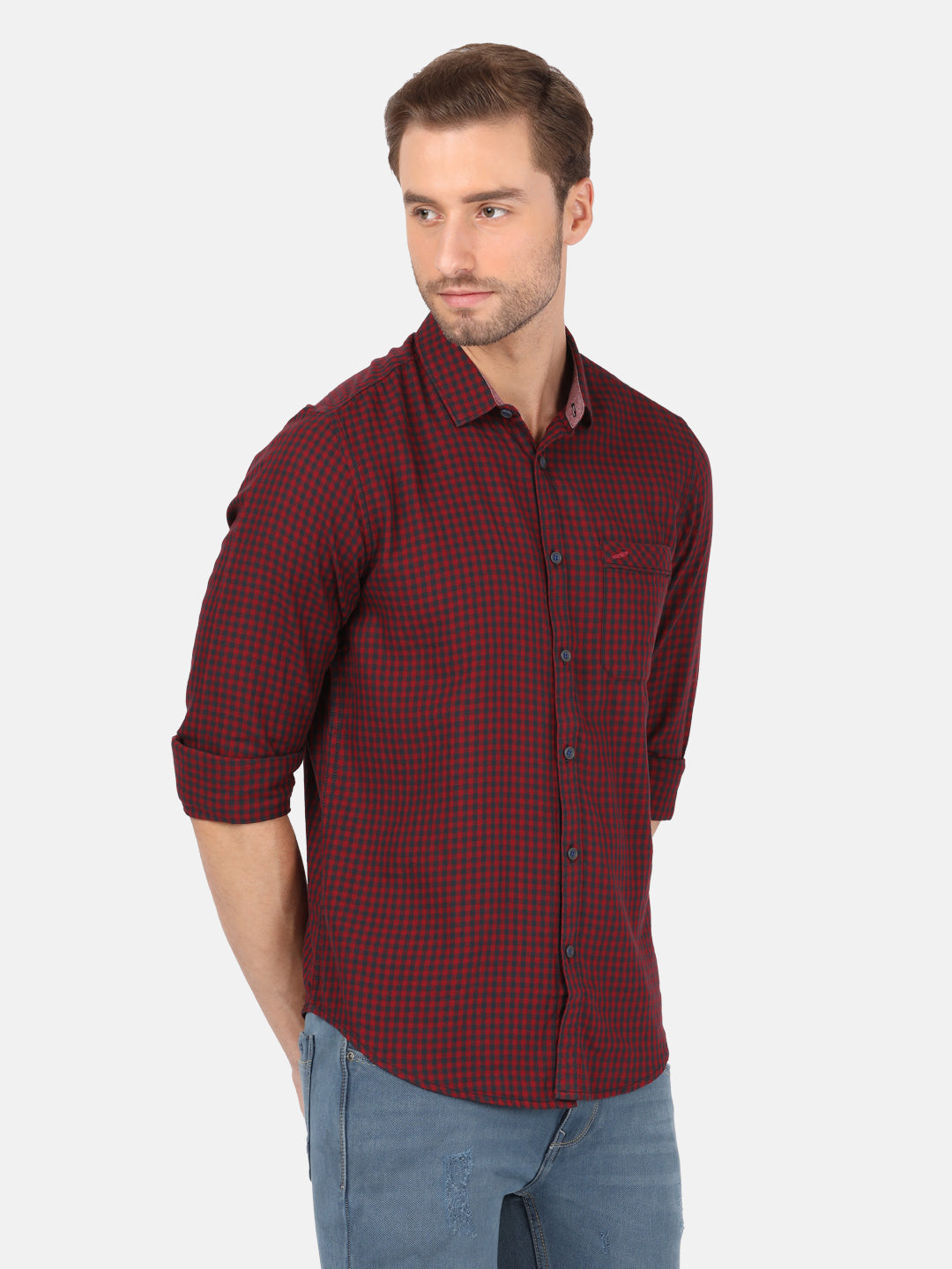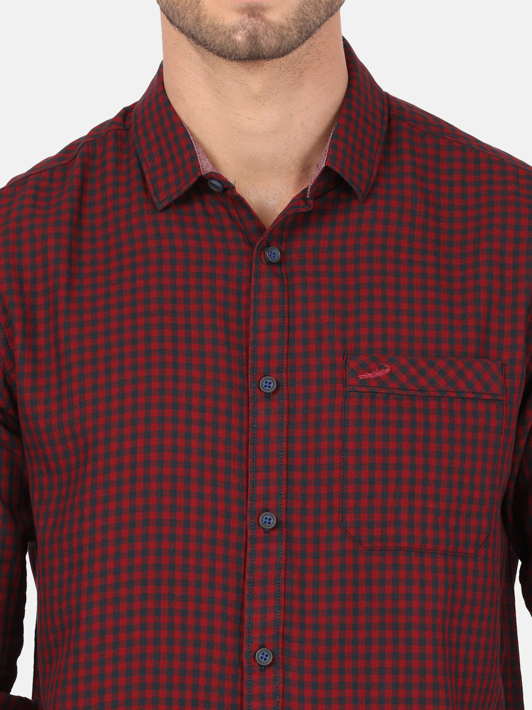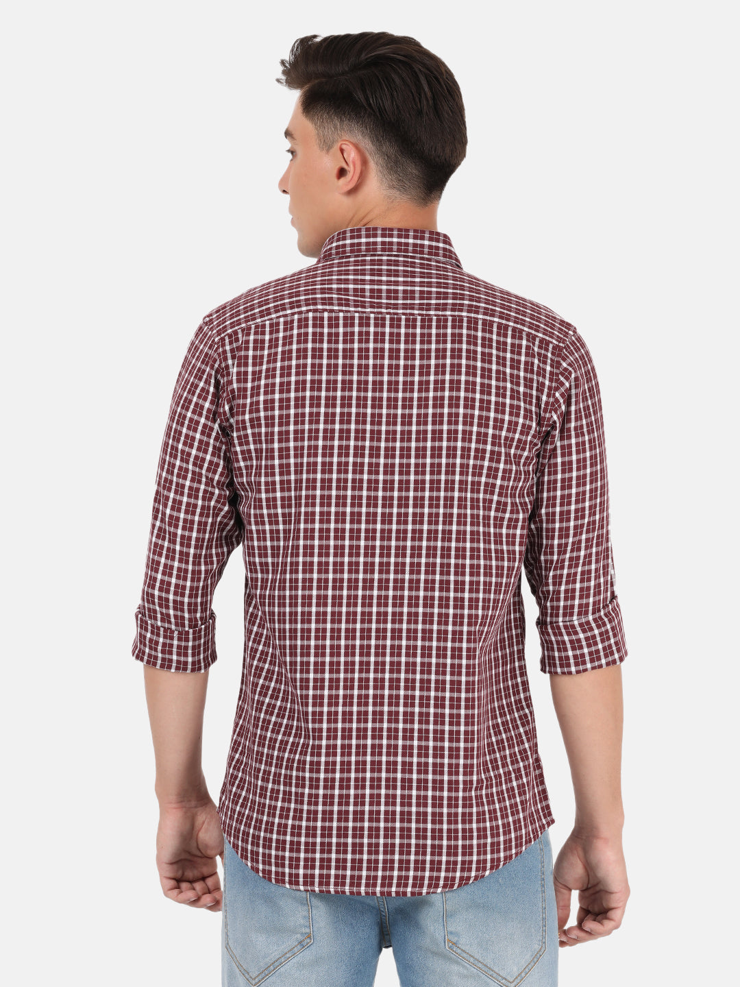 Maroon Checked Casual Full Sleeve 100% Cotton Shirt