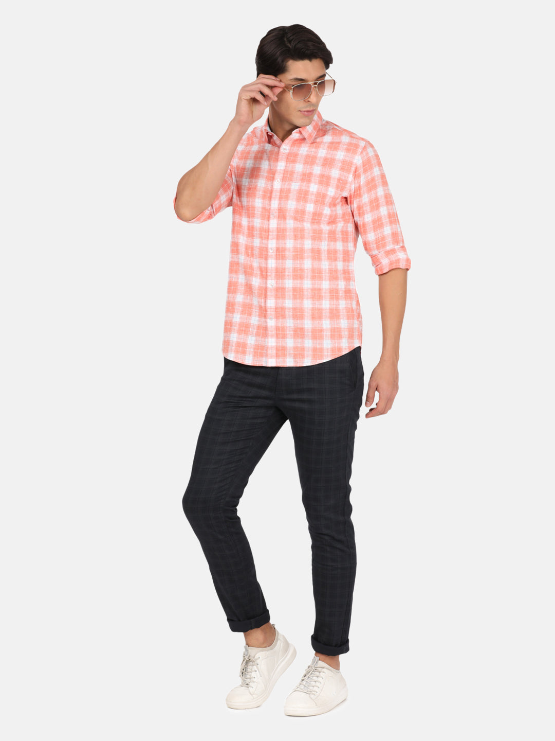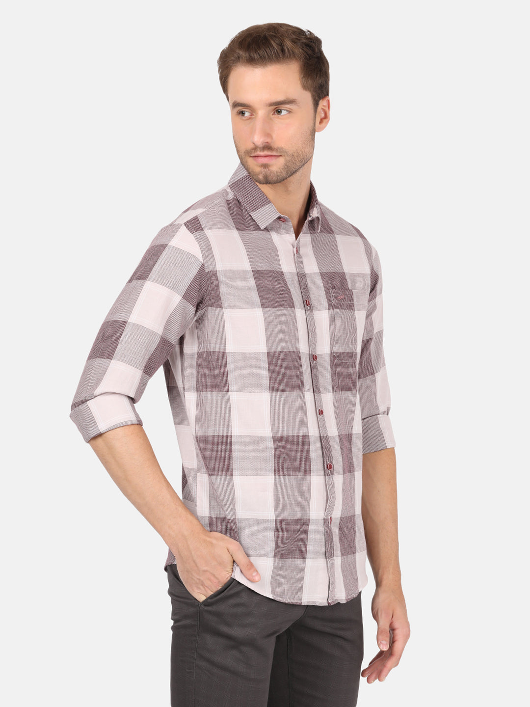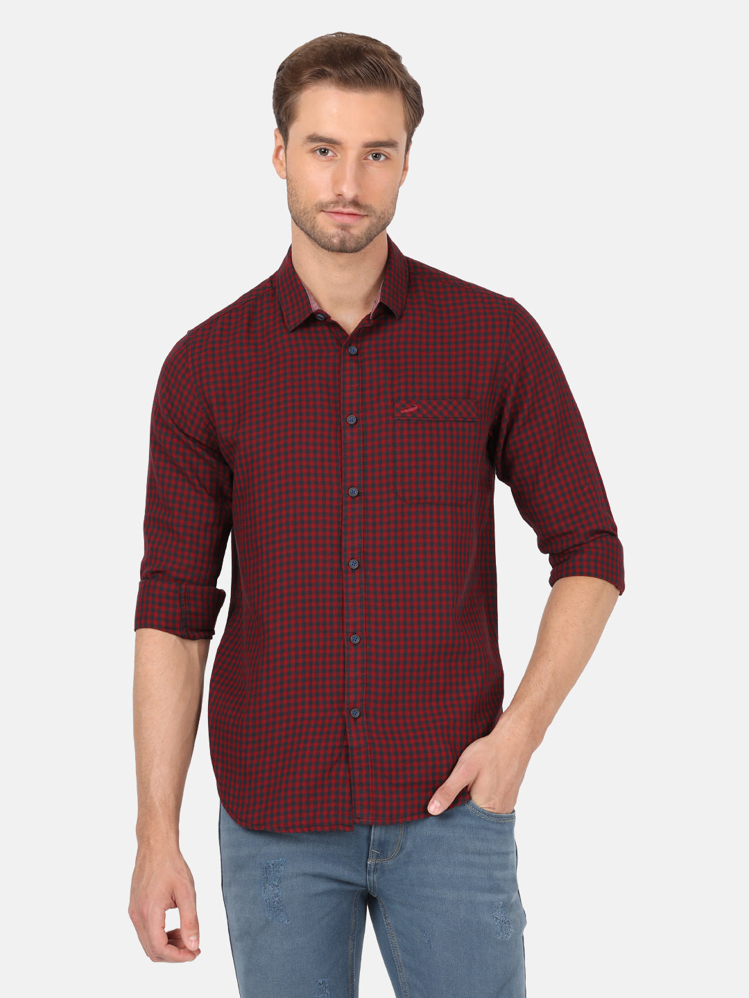 Maroon Checked Casual Full Sleeve 100% Cotton Shirt