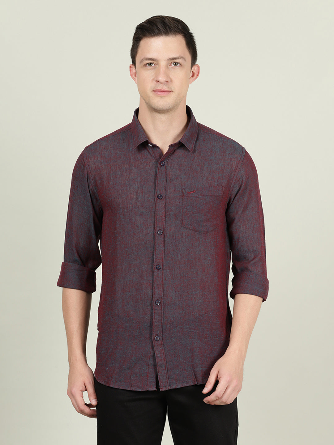 Maroon Solid Full Sleeve 100% Cotton Casual Shirt