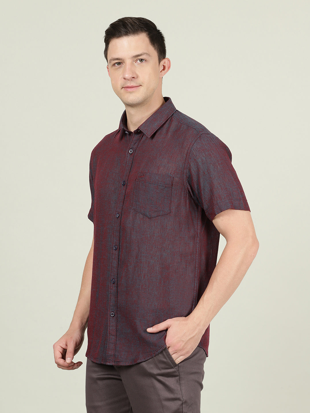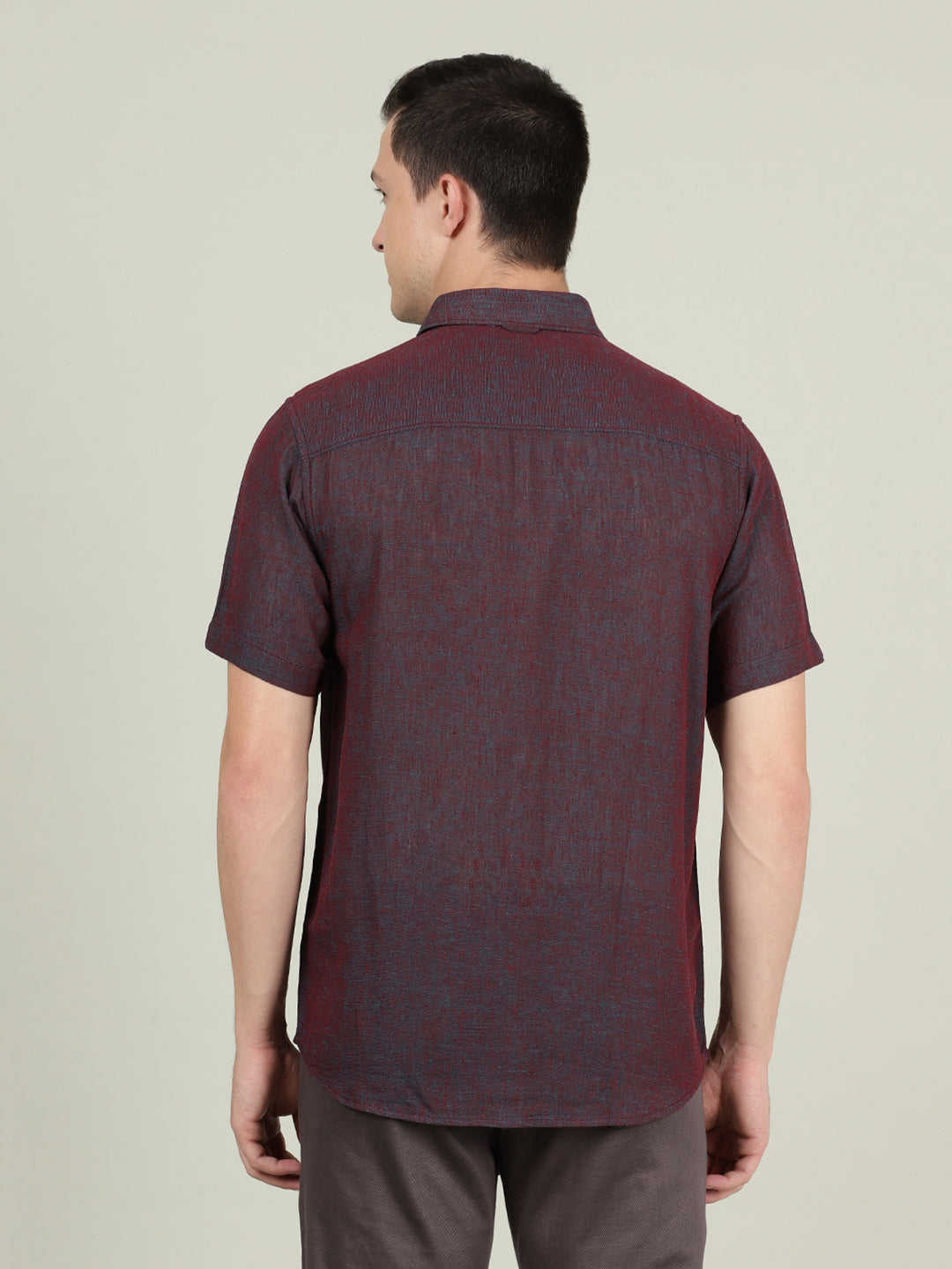 Maroon Printed Half Sleeve 100% Cotton Shirt