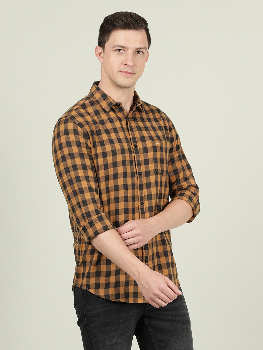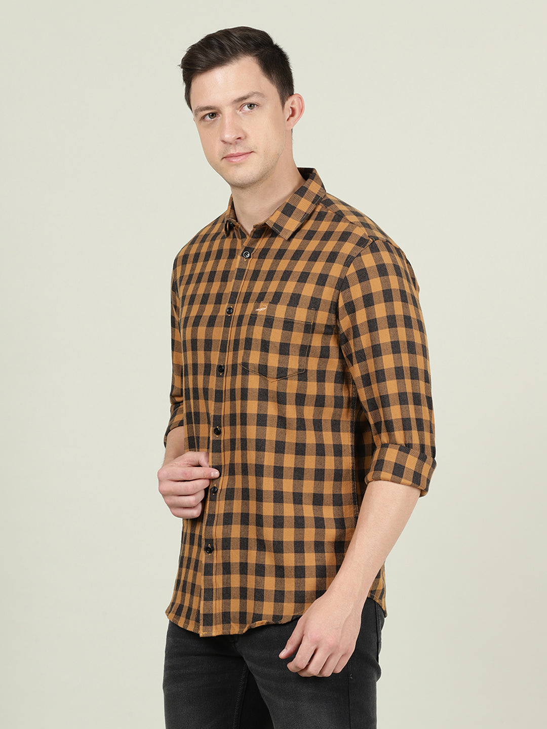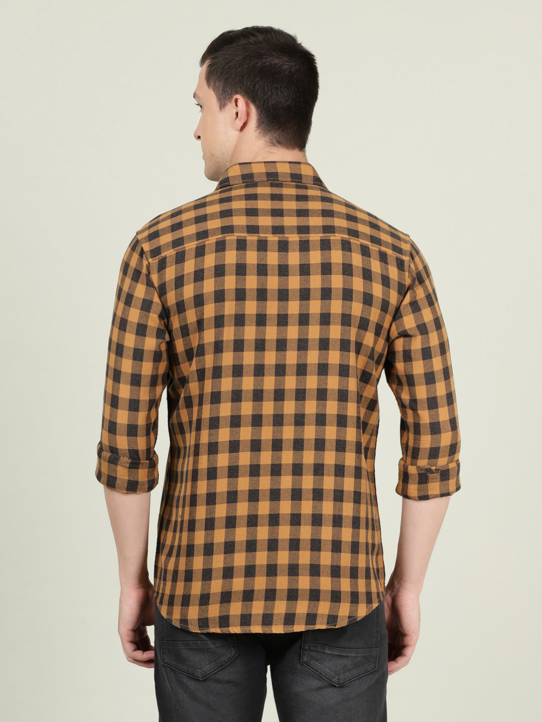 Mustard Yellow Checked Full Sleeve 100% Cotton Casual Shirt