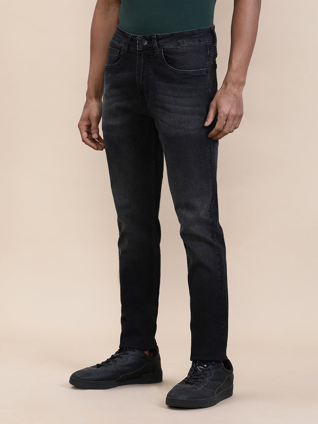Medium Blue Solid Mid Rise Slim Tapered Jean