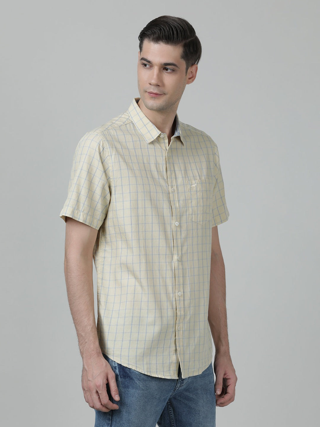 Mustard Yellow Checked Casual Full Sleeve 100% Cotton Shirt