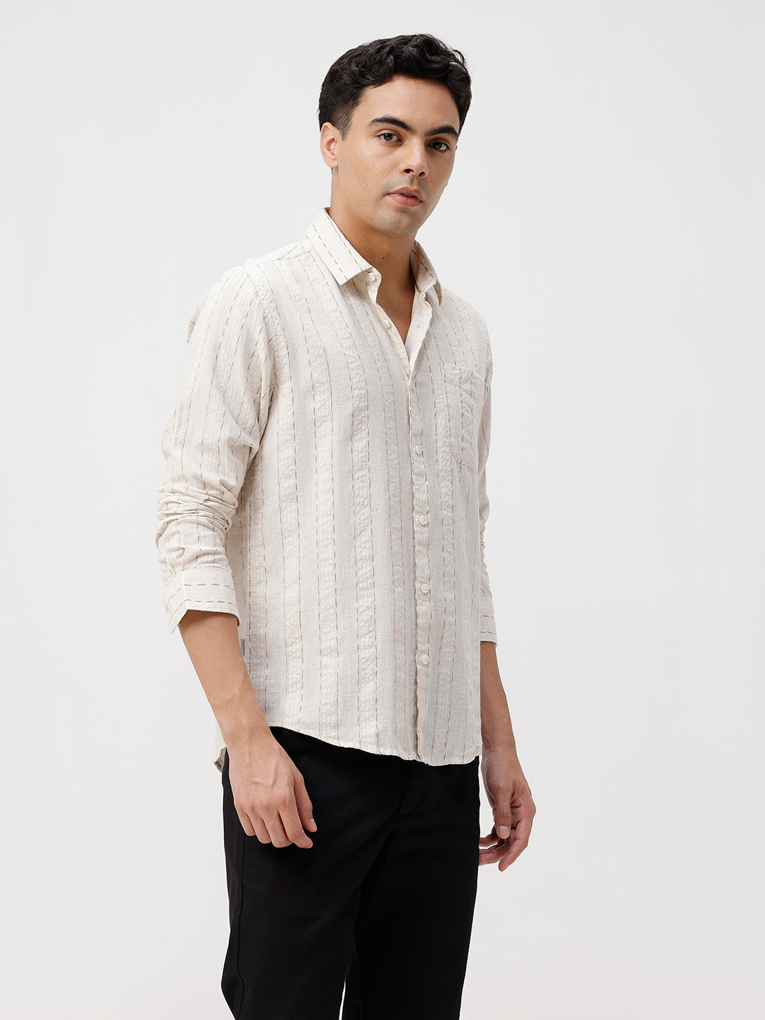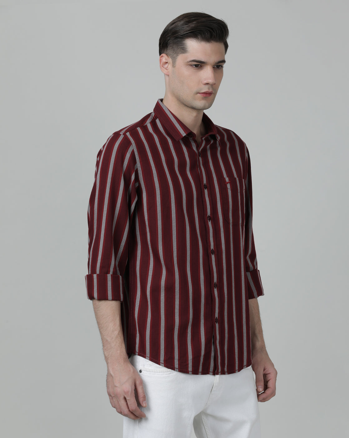 Maroon Striped Full Sleeve 100% Cotton Shirt