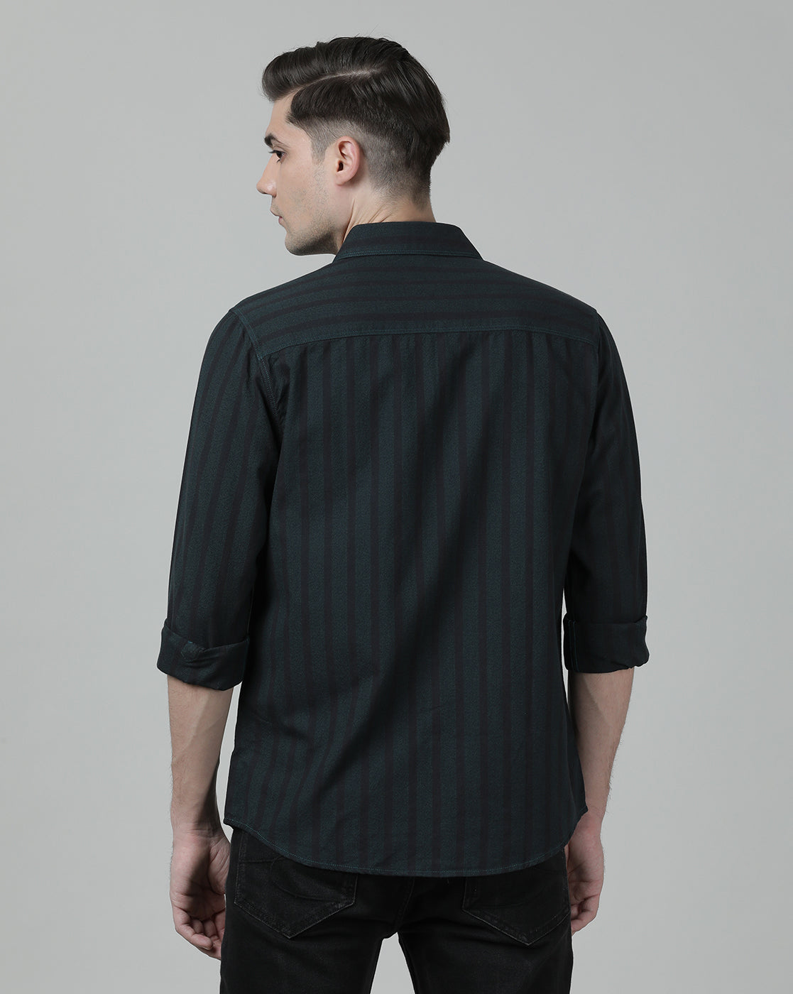 Moss Green Striped Full Sleeve 100% Cotton Shirt