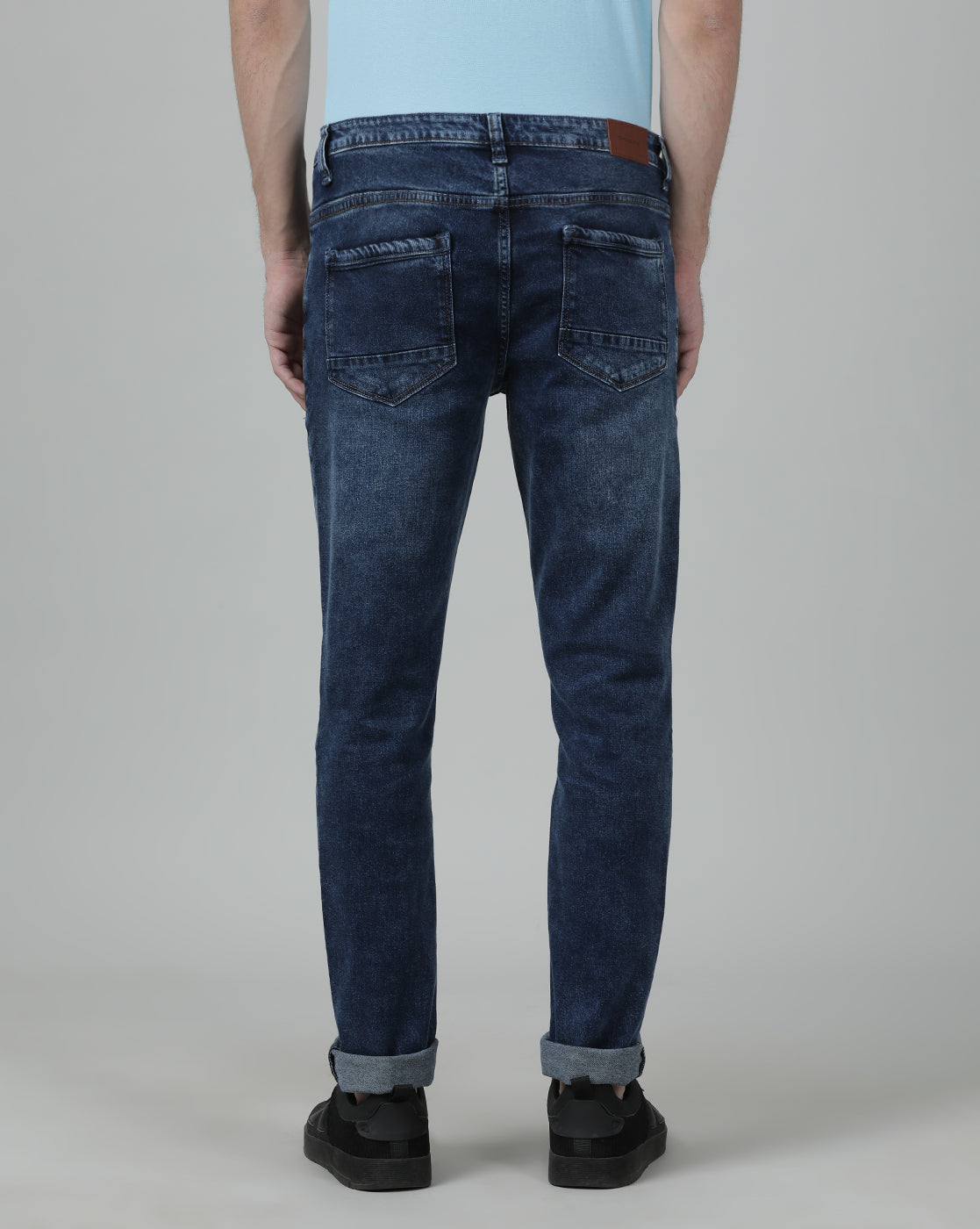 Mid Blue Solid Mid Rise Casual Slim Tapered Jean