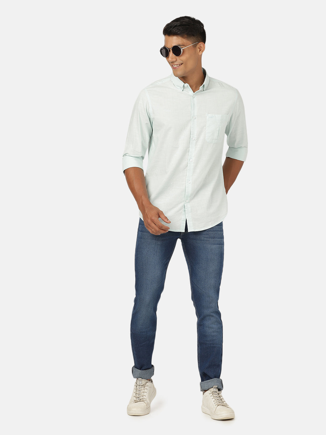 Mint Green Solid Full Sleeve 100% Cotton Shirt