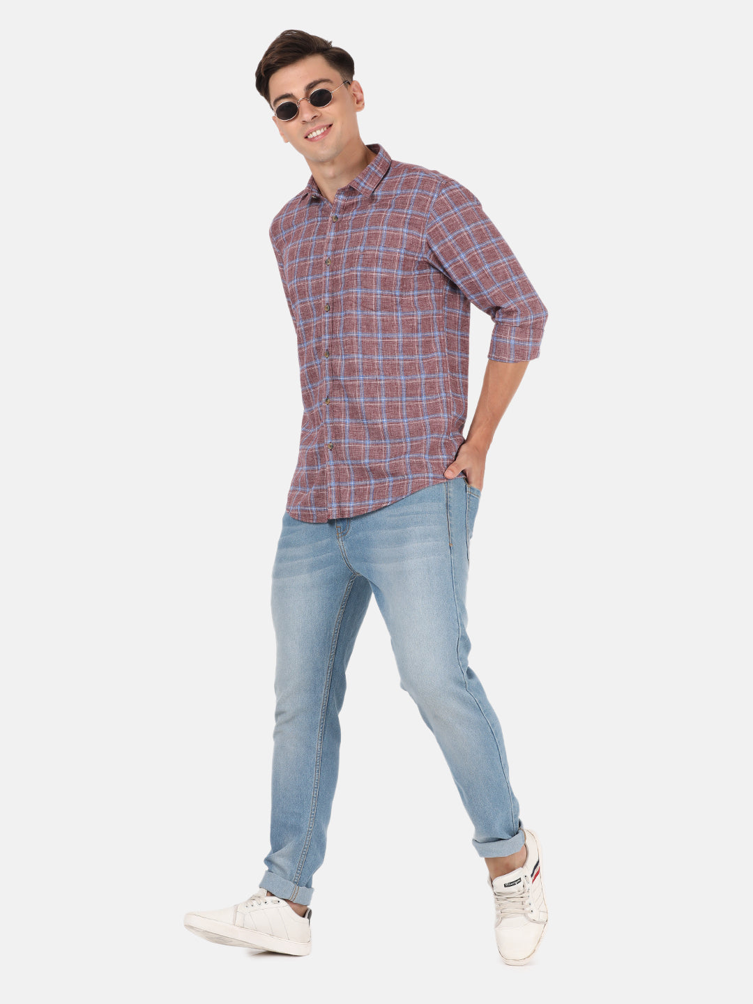 Maroon Checked Full Sleeve 100% Cotton Shirt