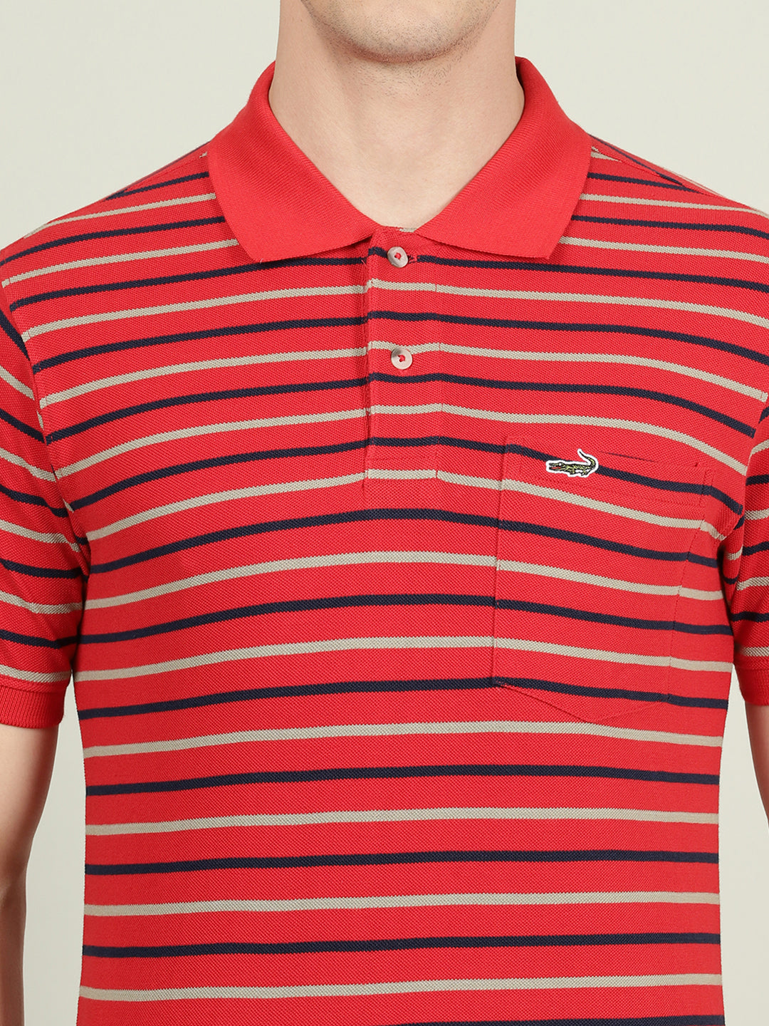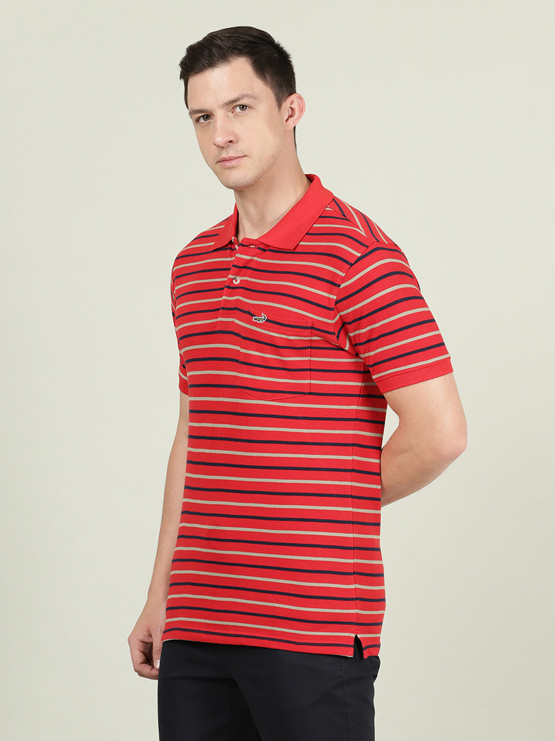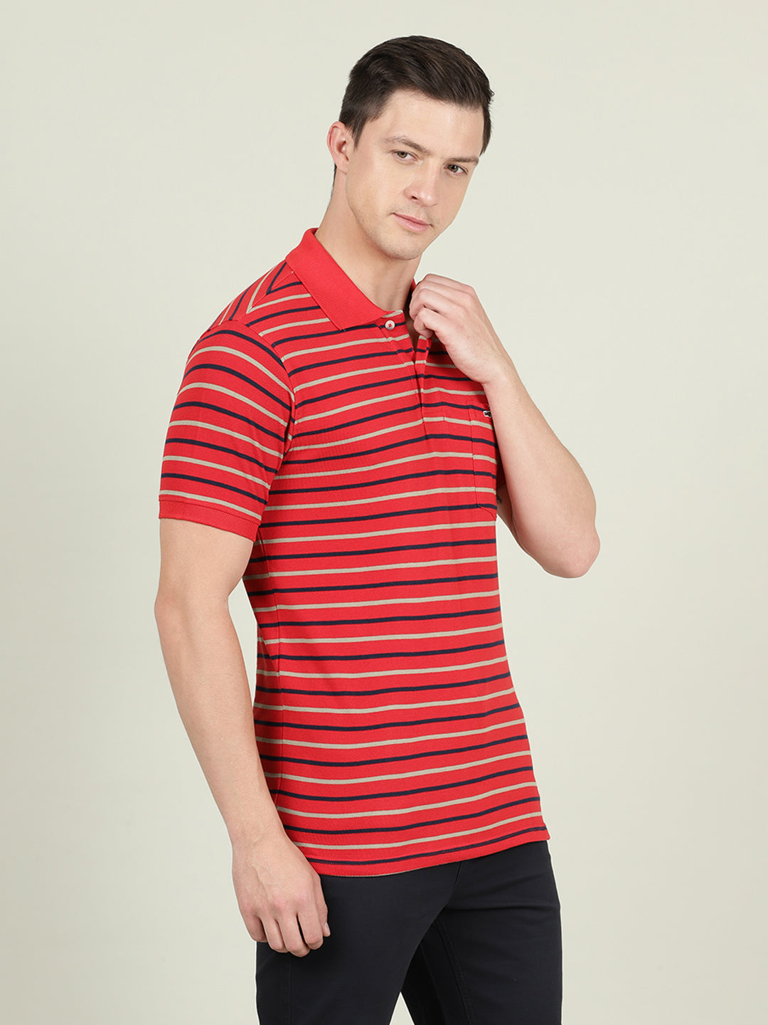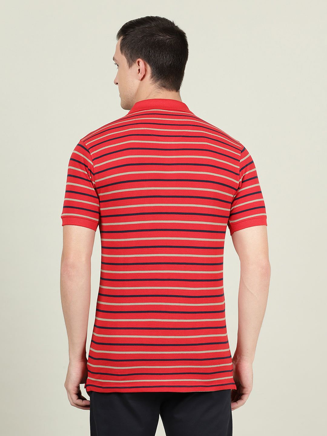 Red Striped Casual Polo T-Shirt
