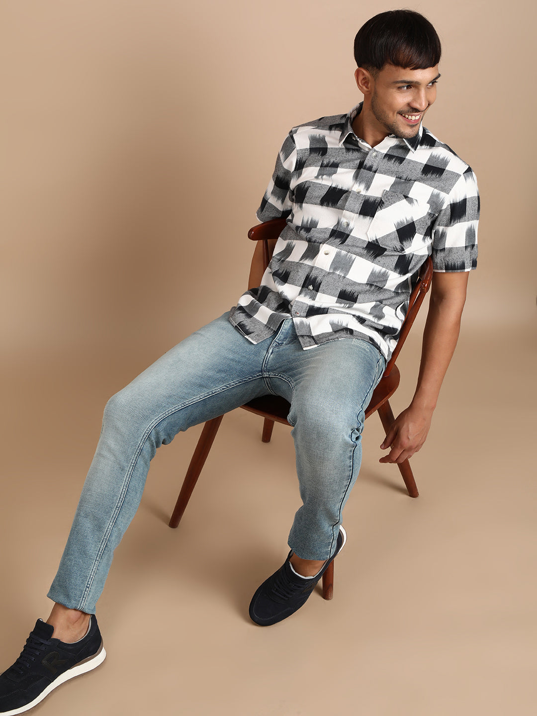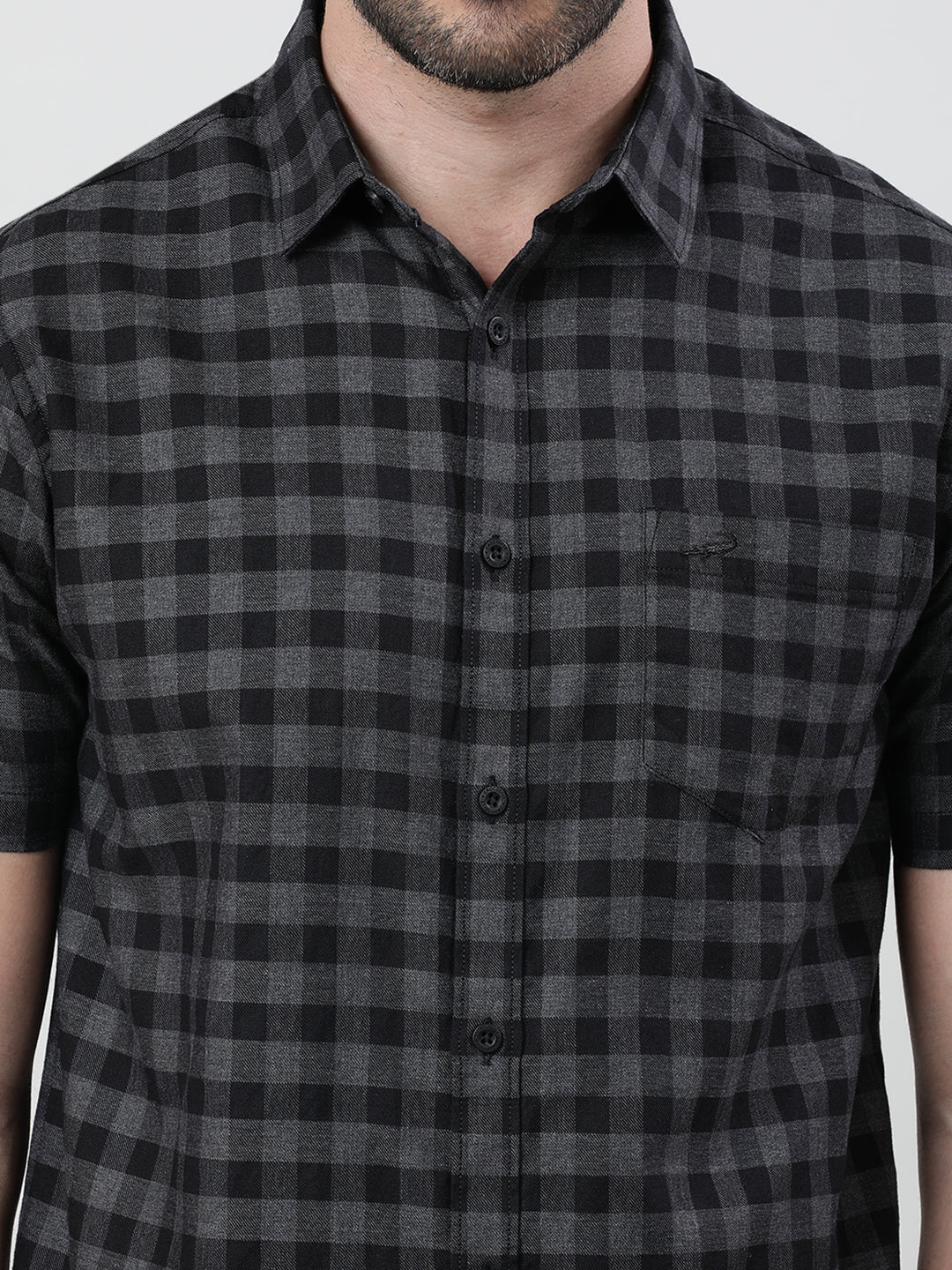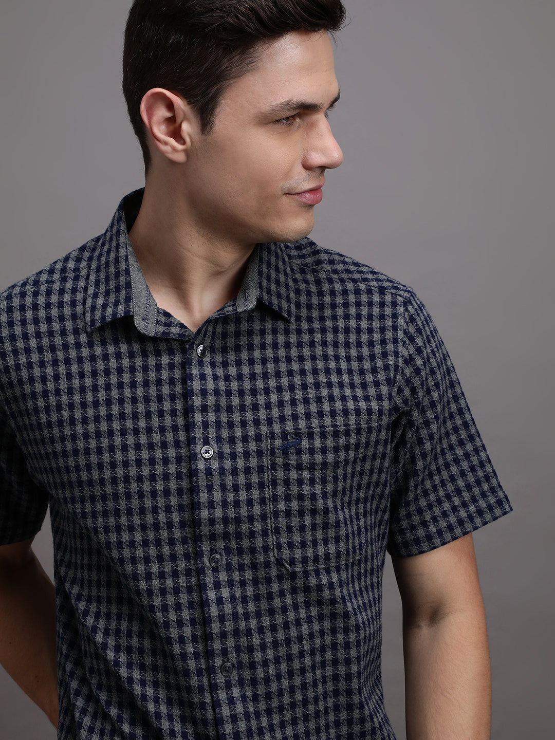 Navy Checked Half Sleeve 100% Cotton Shirt