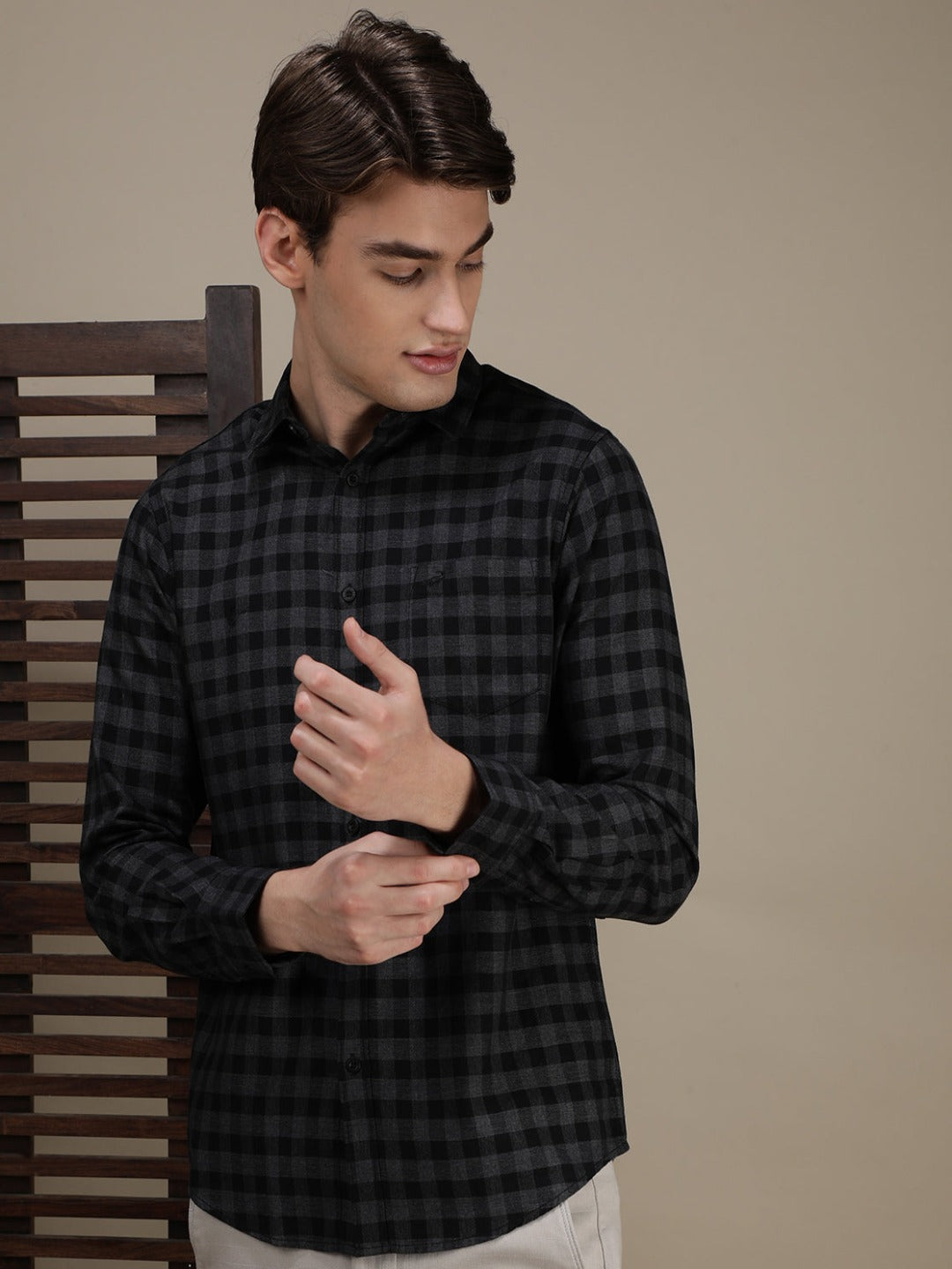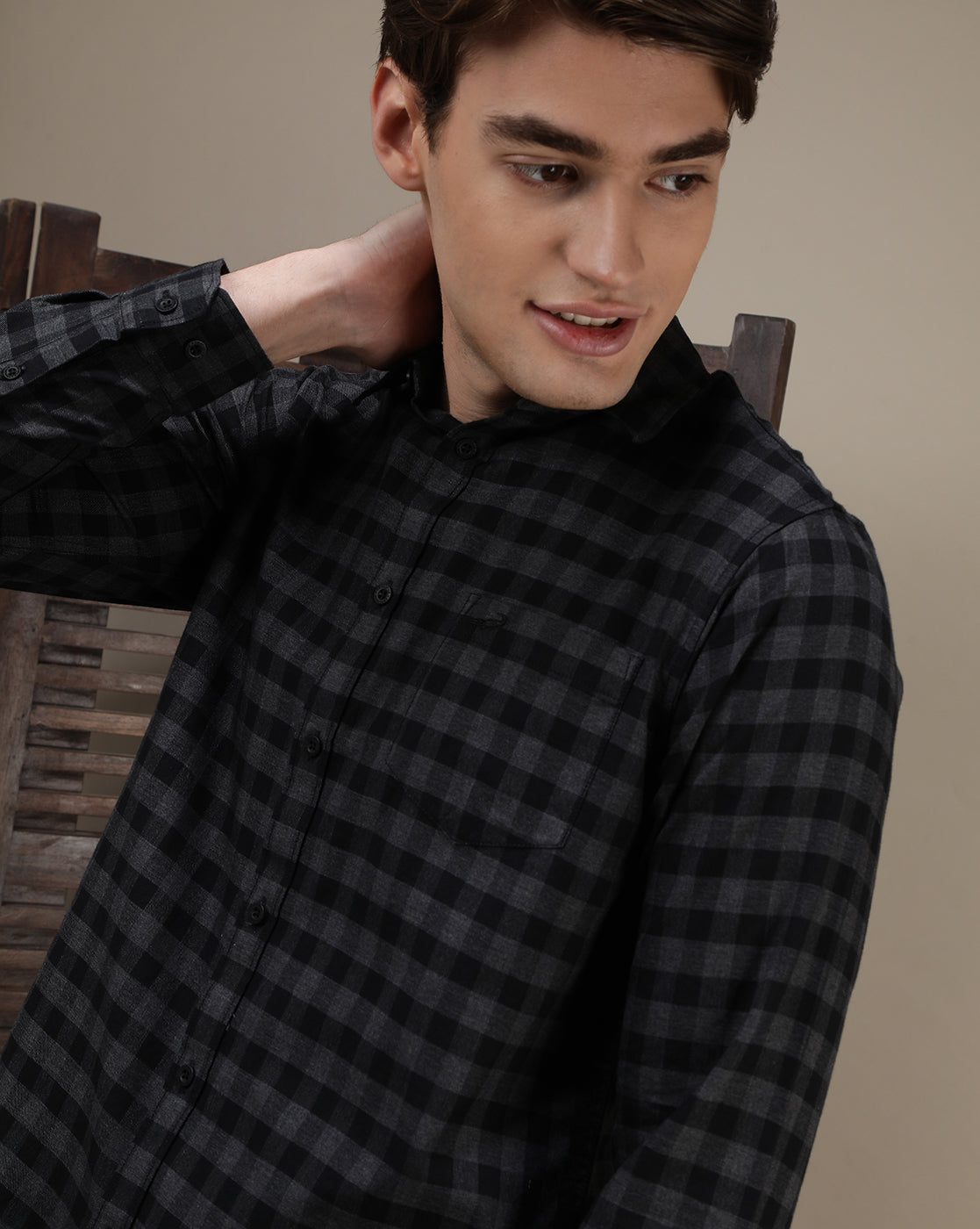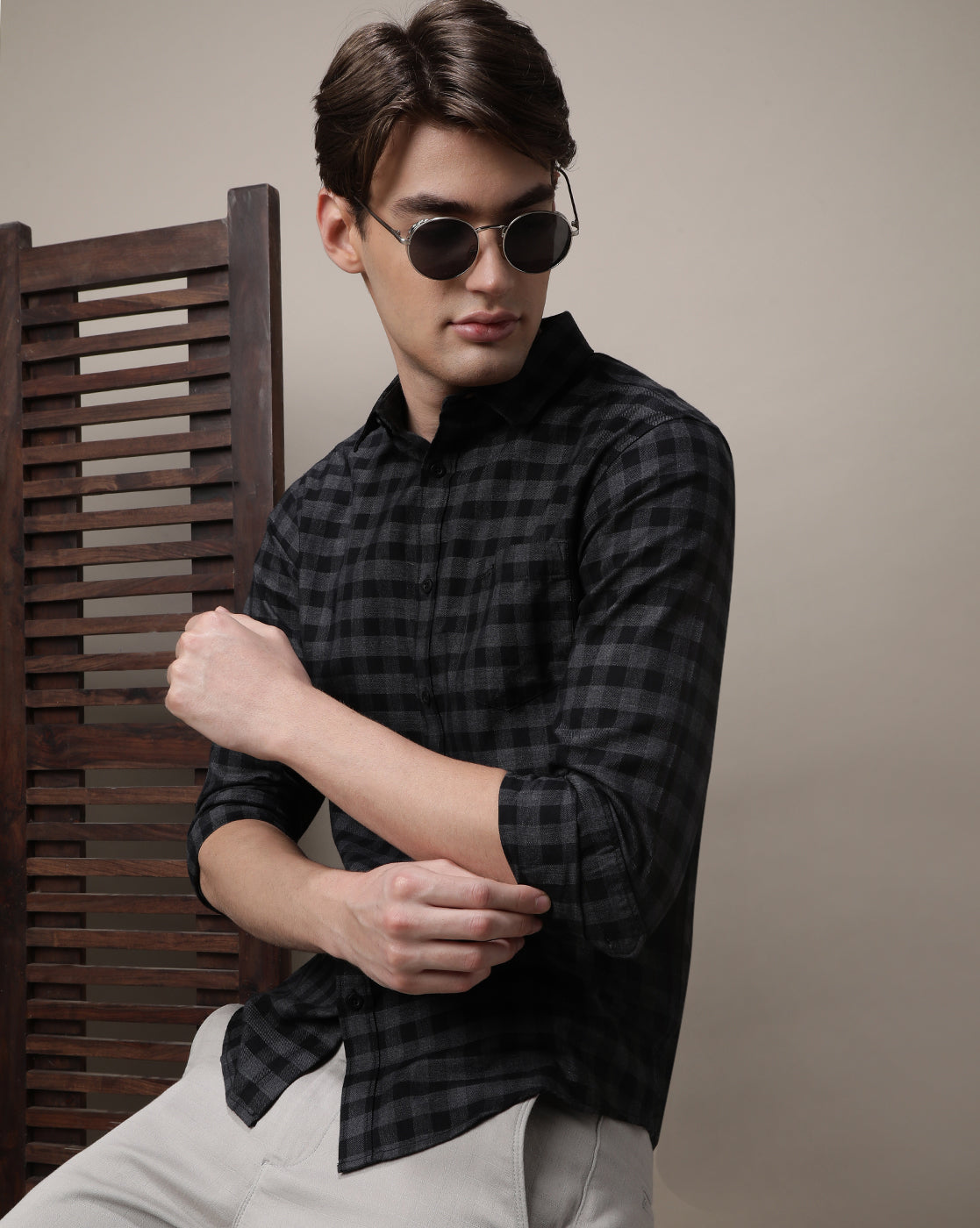 Black Solid Casual Full Sleeve 100% Cotton Shirt