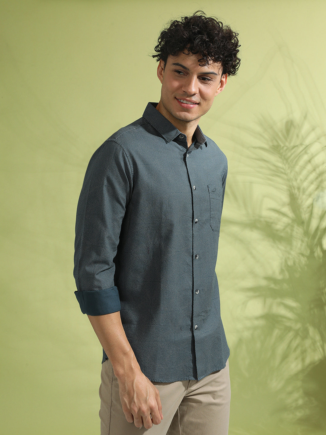 Printed Green Full Sleeve 100% Cotton Casual Shirt
