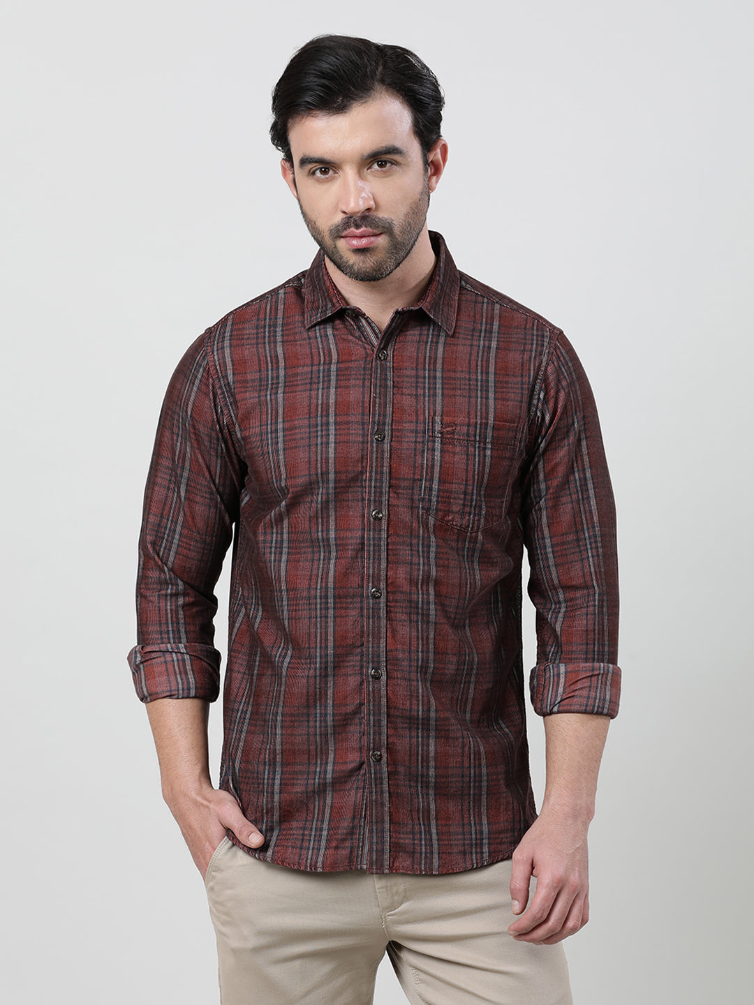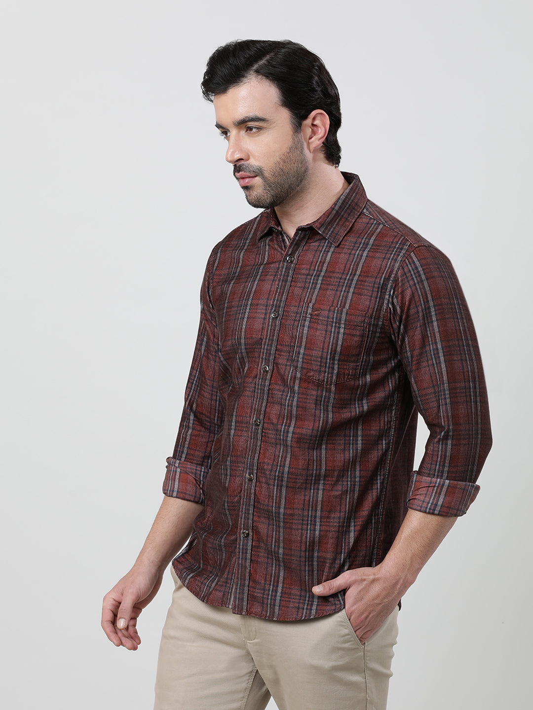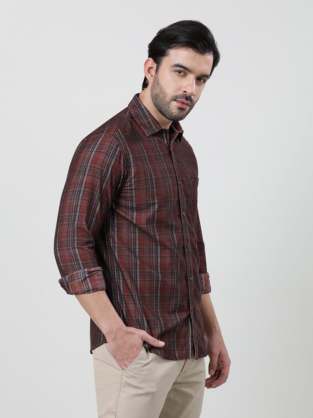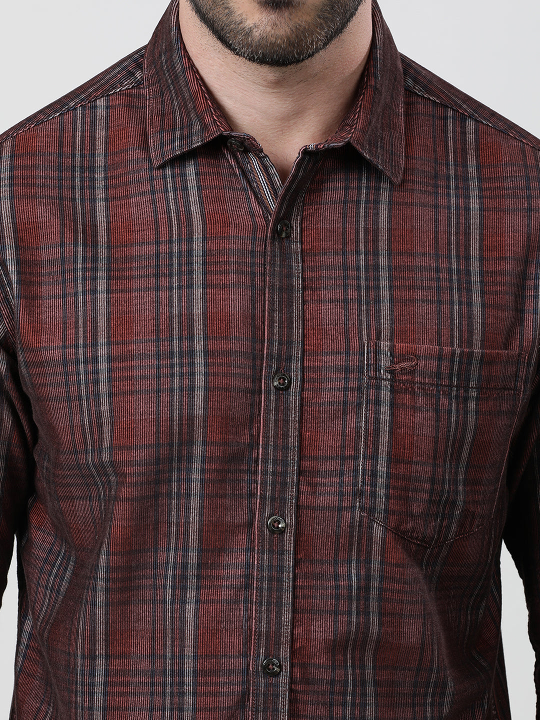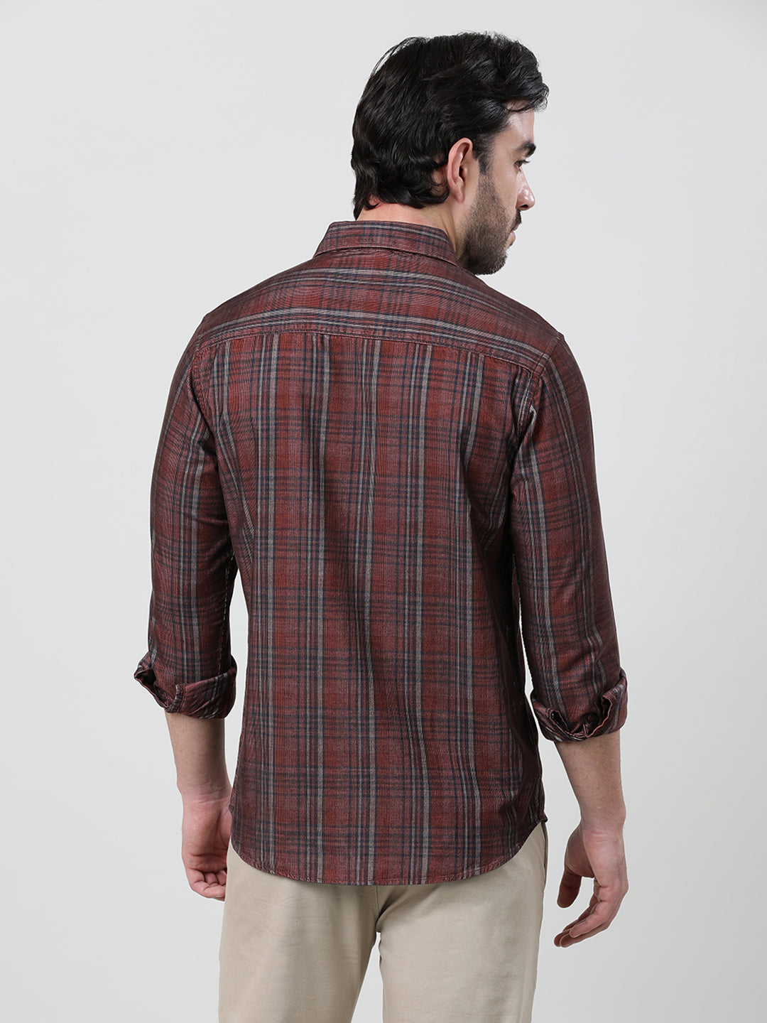 Rust Brown Checked Full Sleeve 100% Cotton Shirt