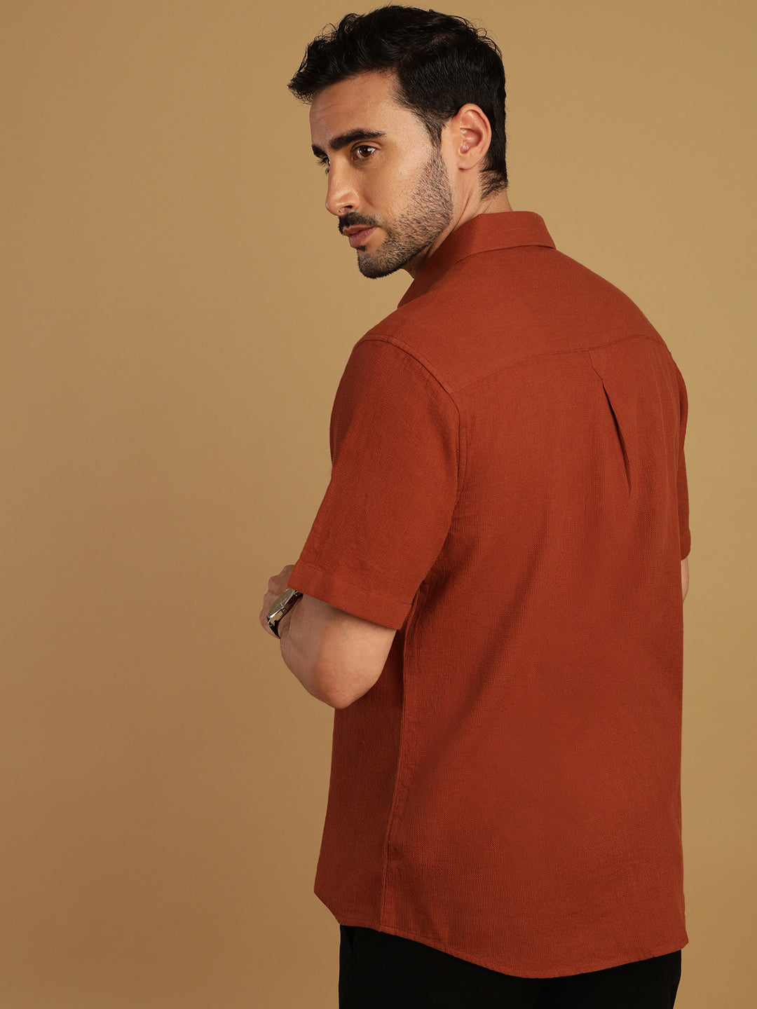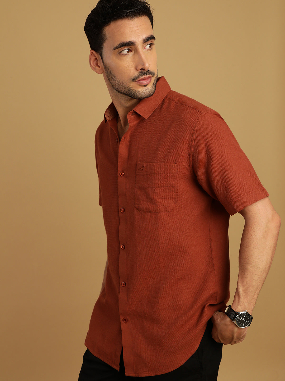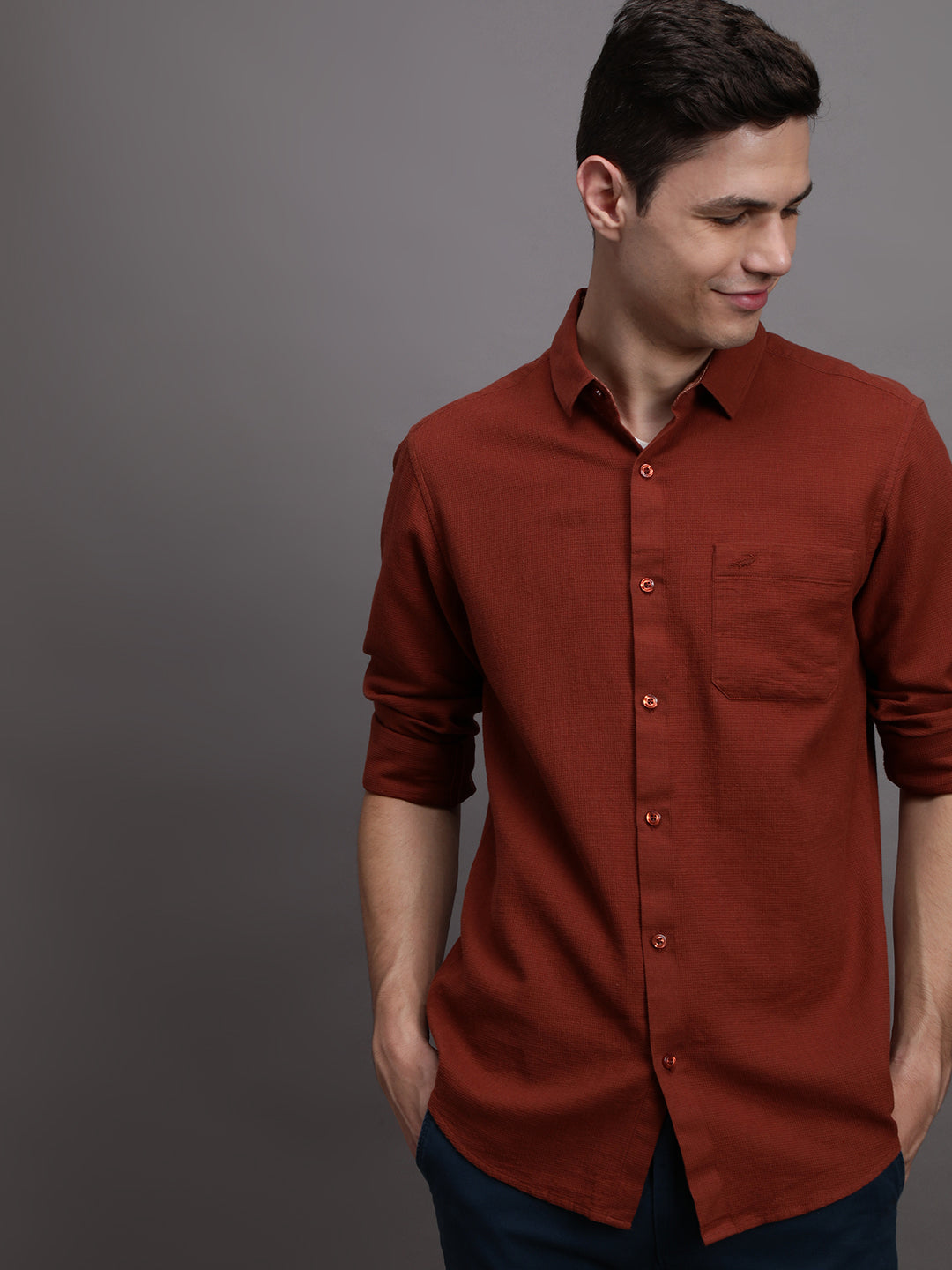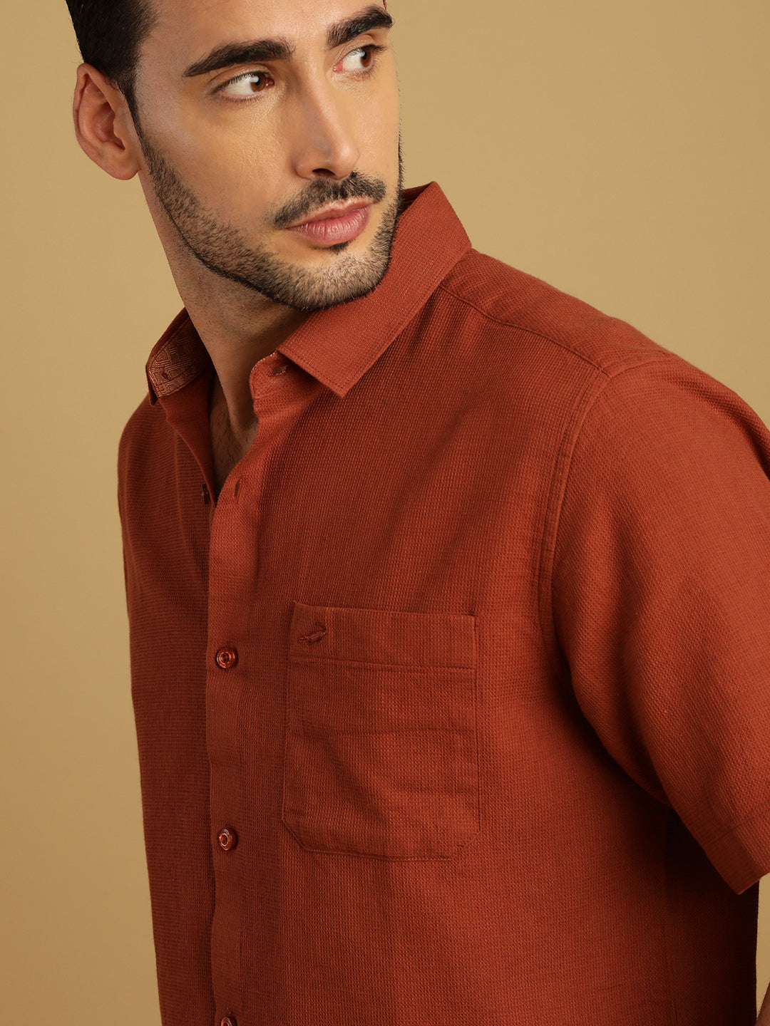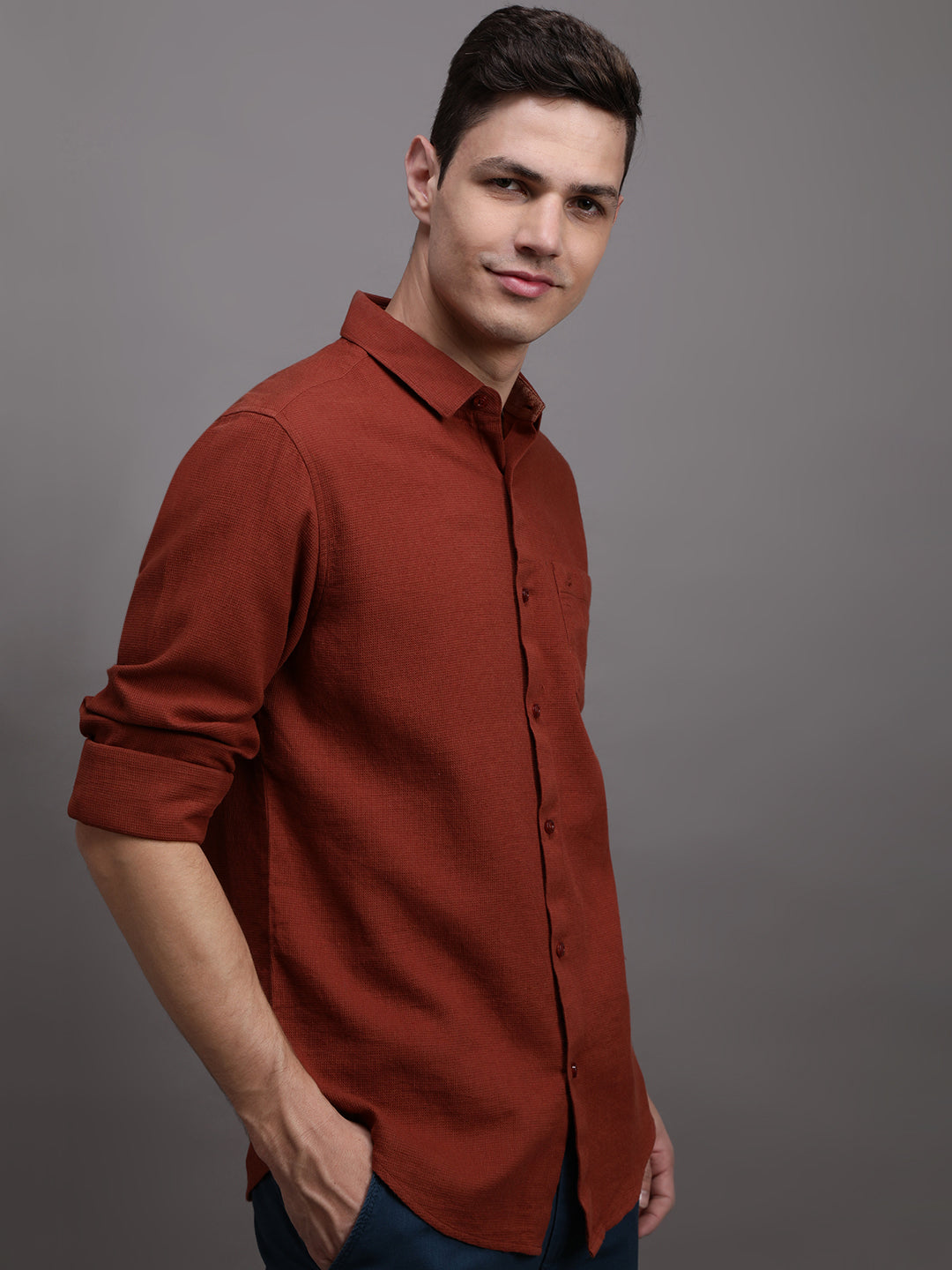 Rust Brown Checked Full Sleeve 100% Cotton Shirt