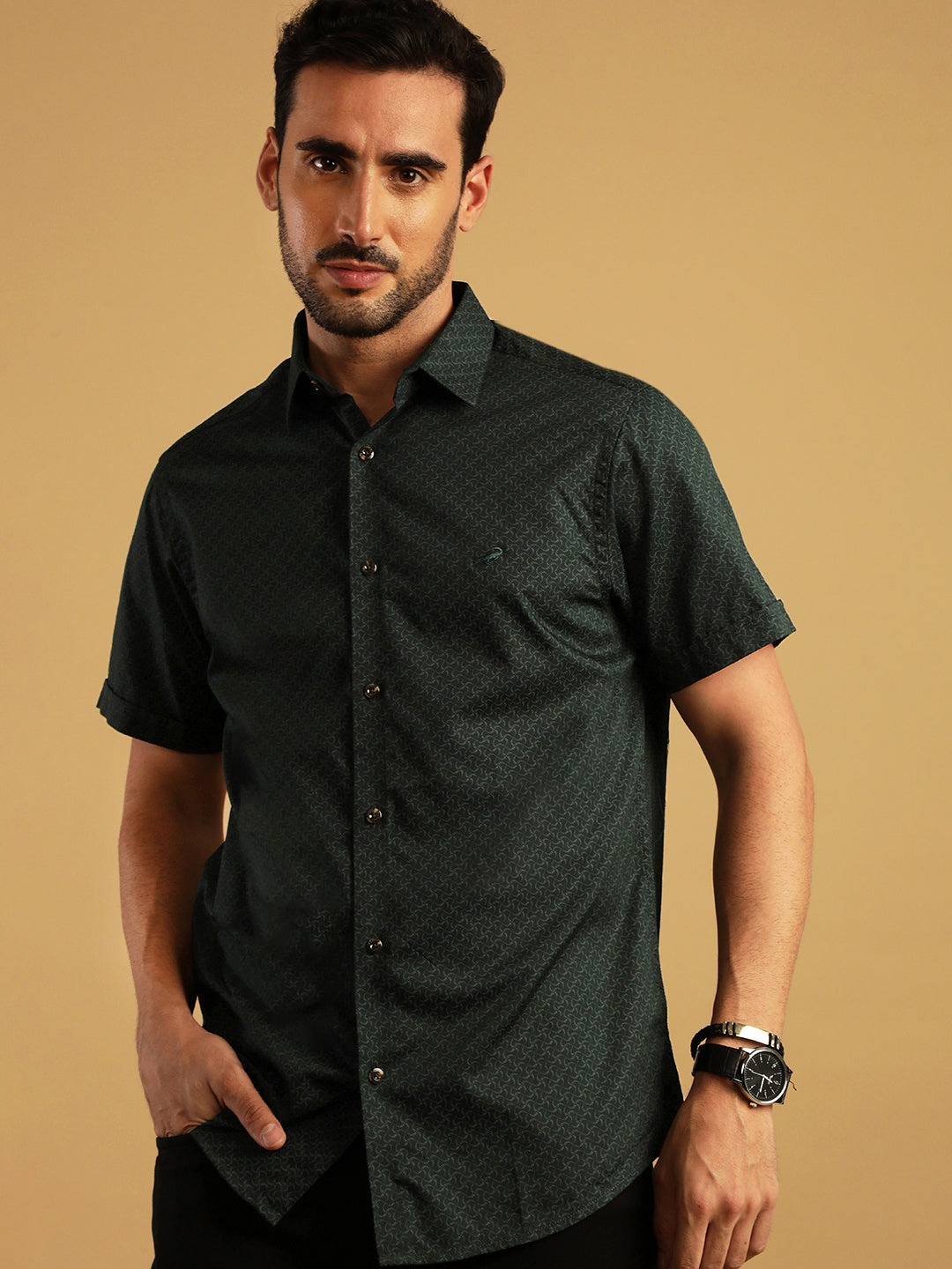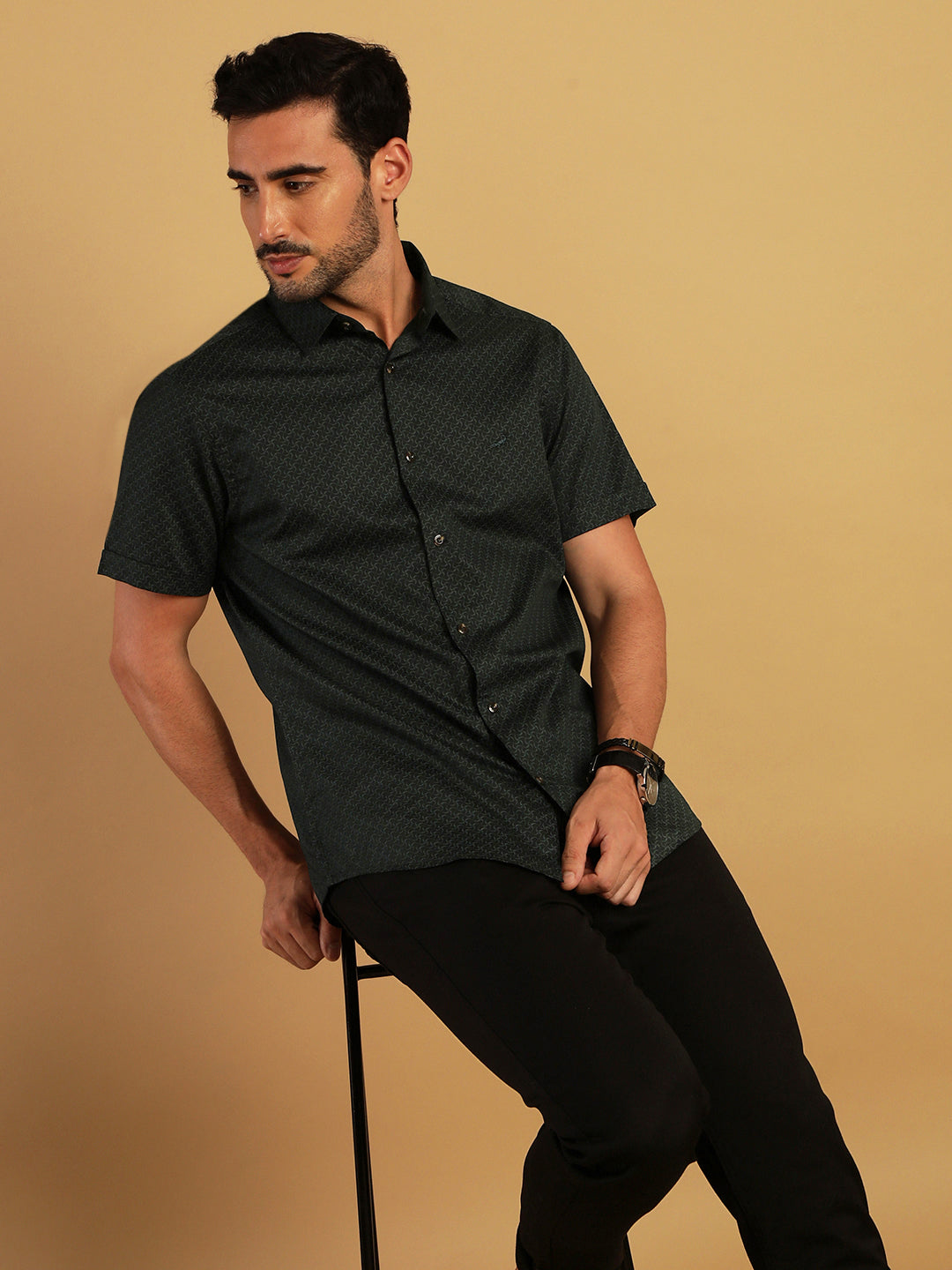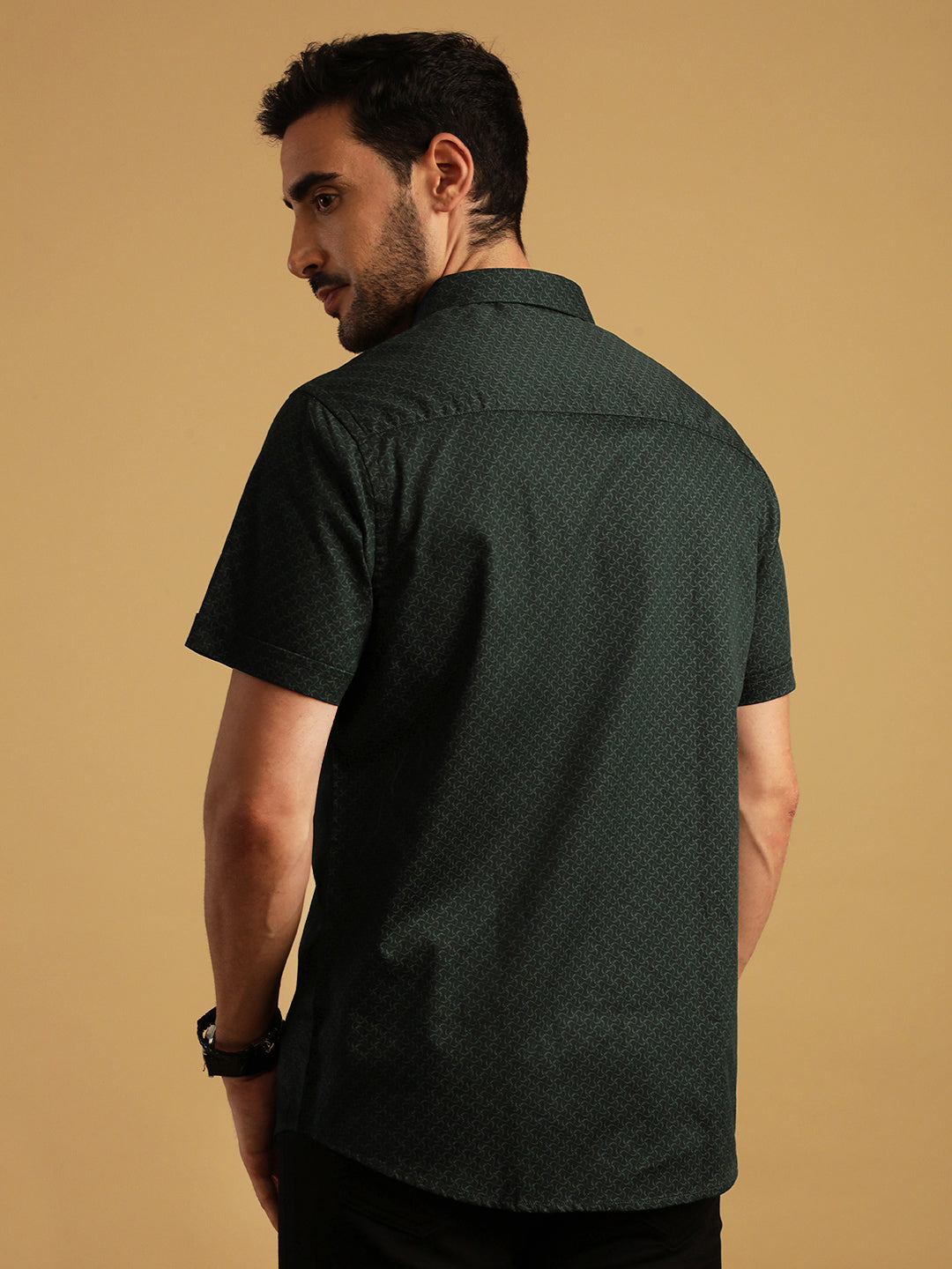 Green Printed Half Sleeve 100% Cotton Casual Shirt