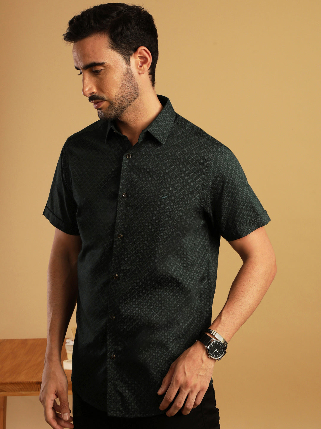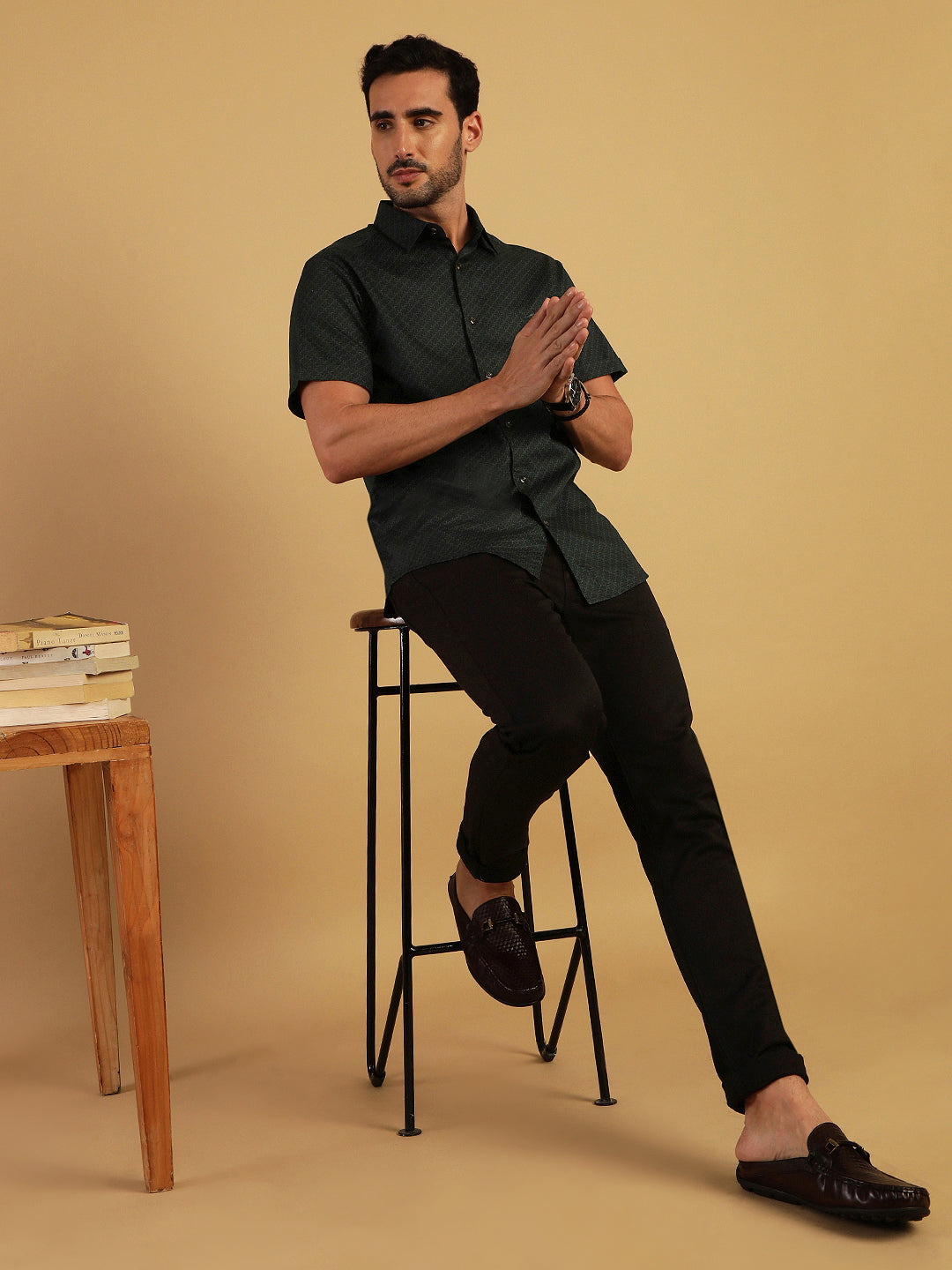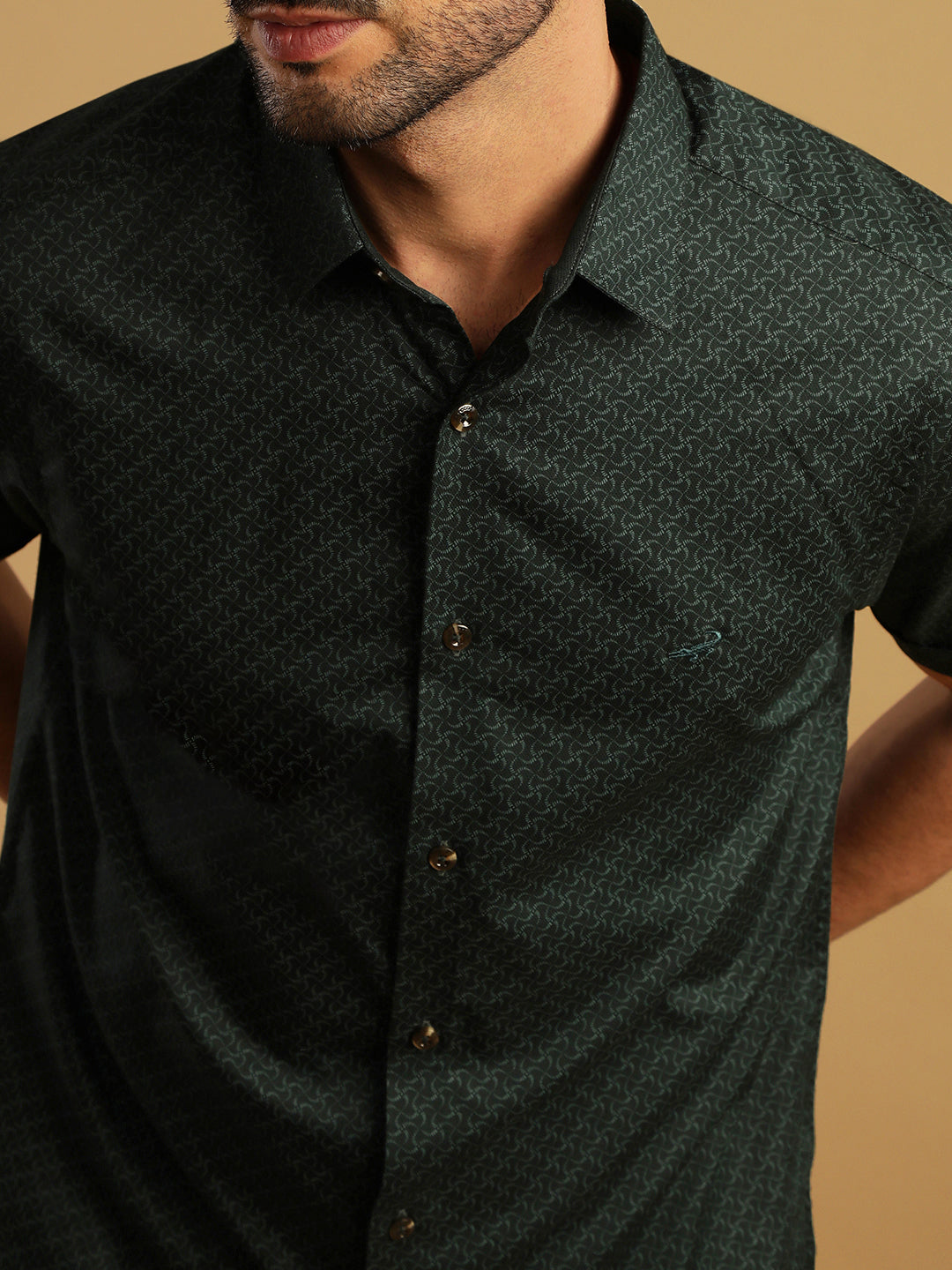 Green Printed Half Sleeve 100% Cotton Casual Shirt