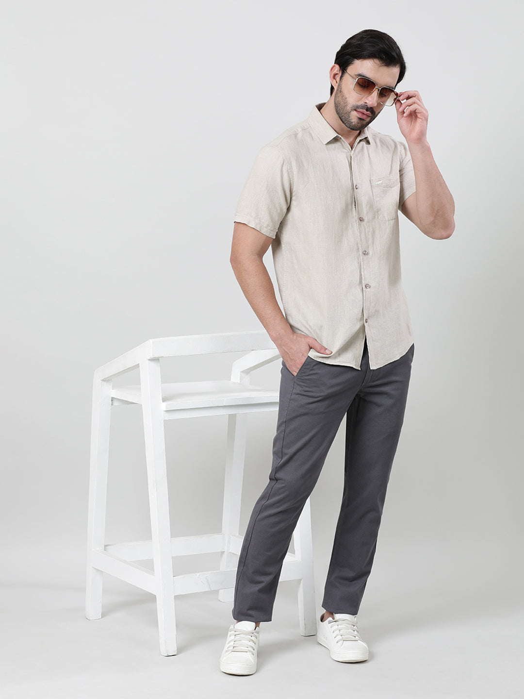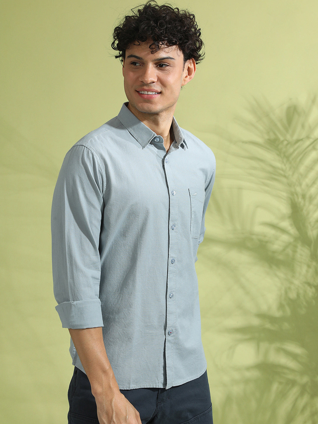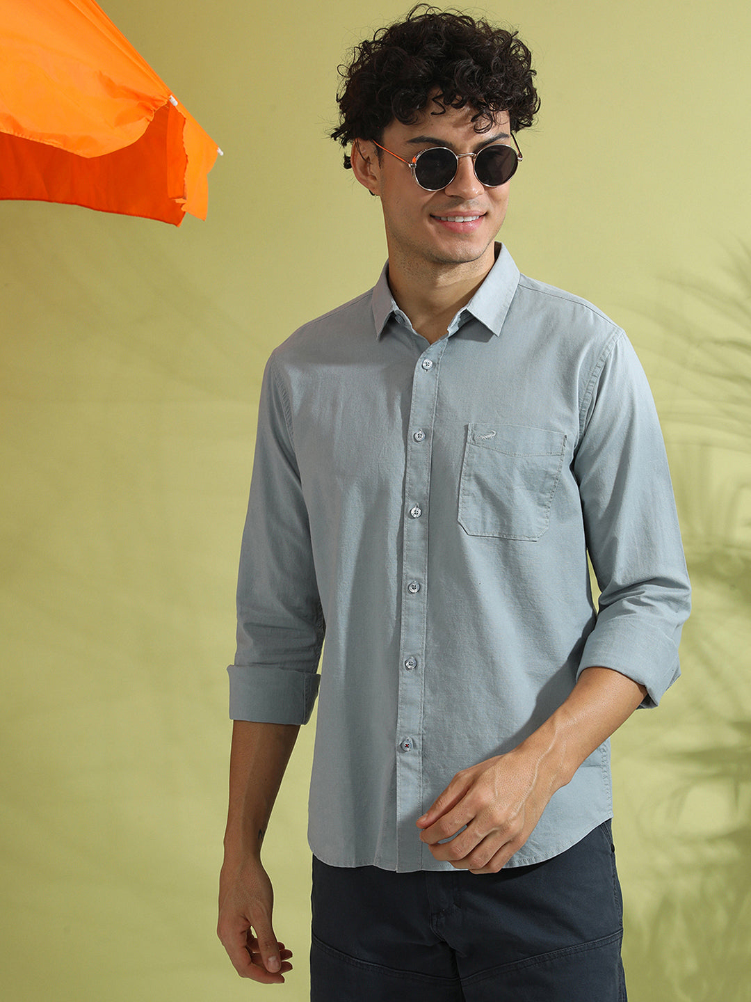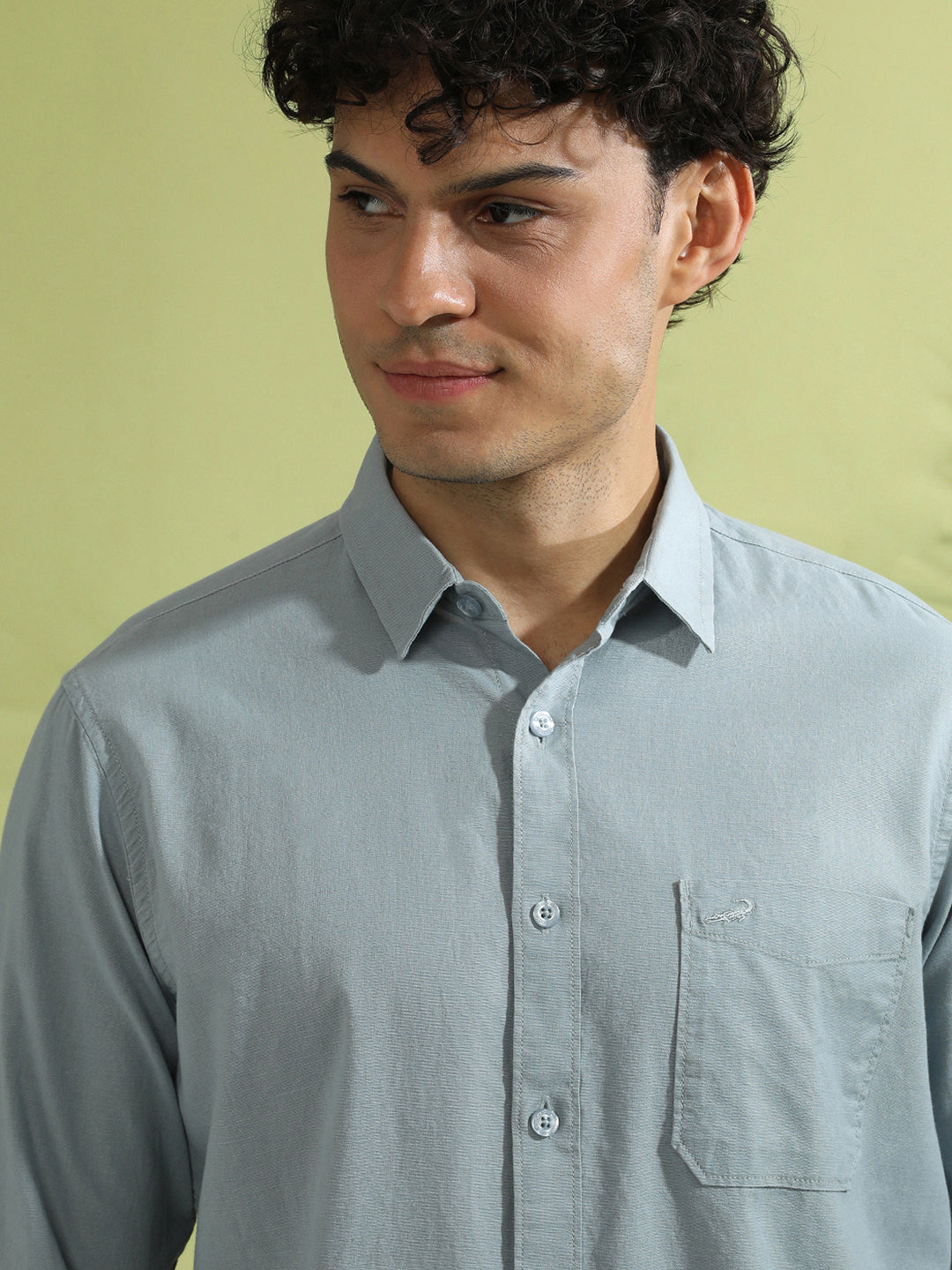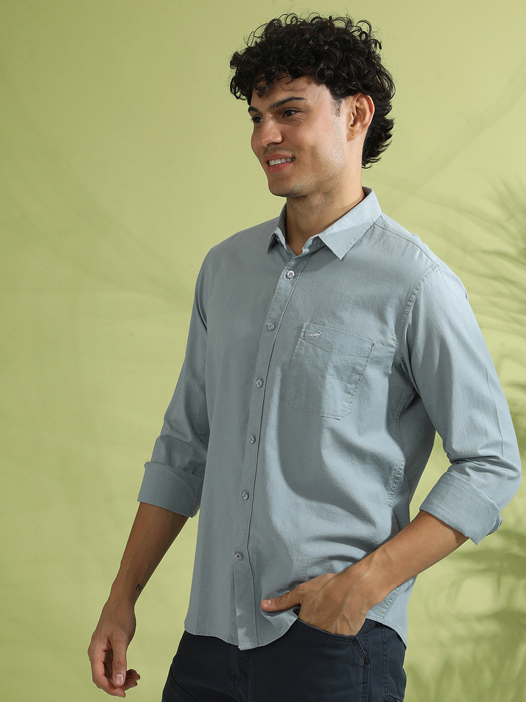 Grey Solid Full Sleeve 100% Cotton Shirt