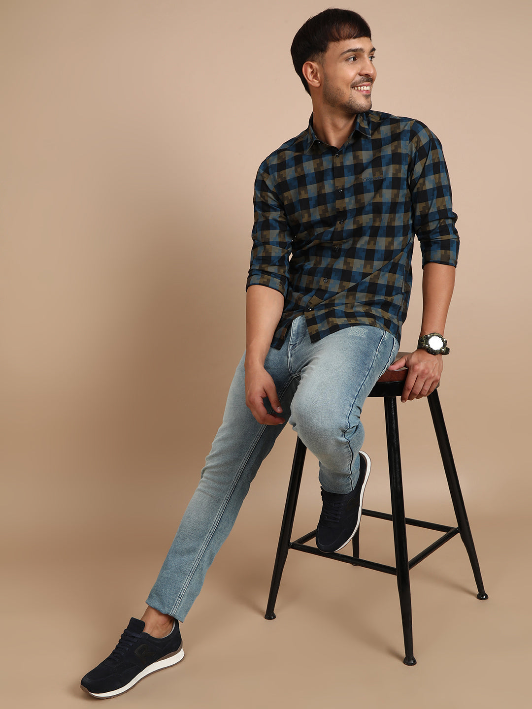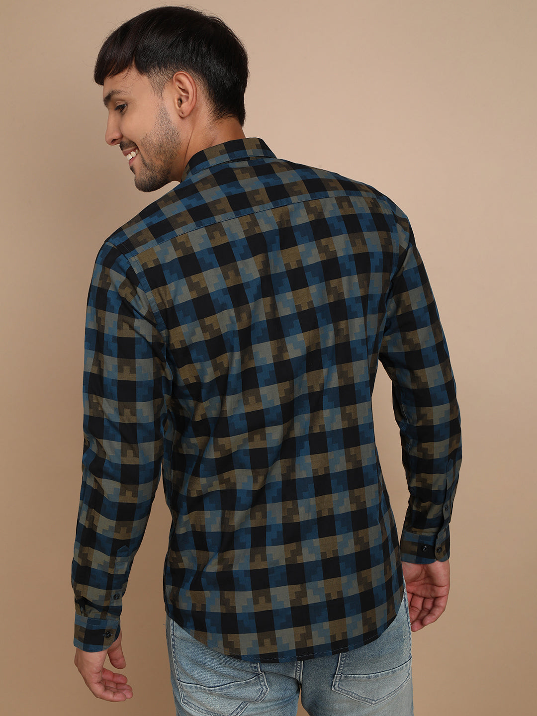 Checked Full Sleeve Navy 100% Cotton Casual Shirt