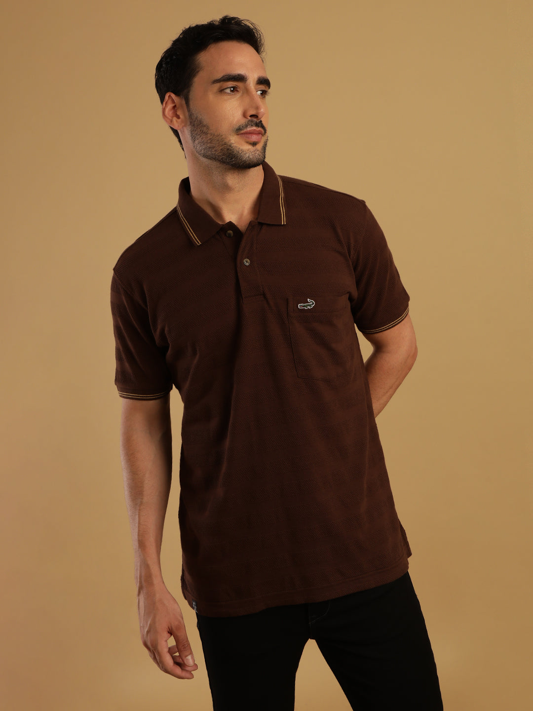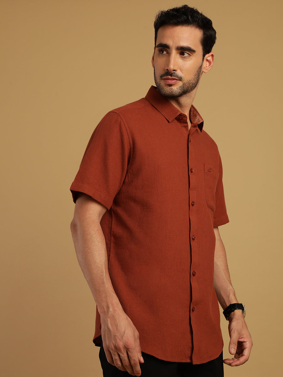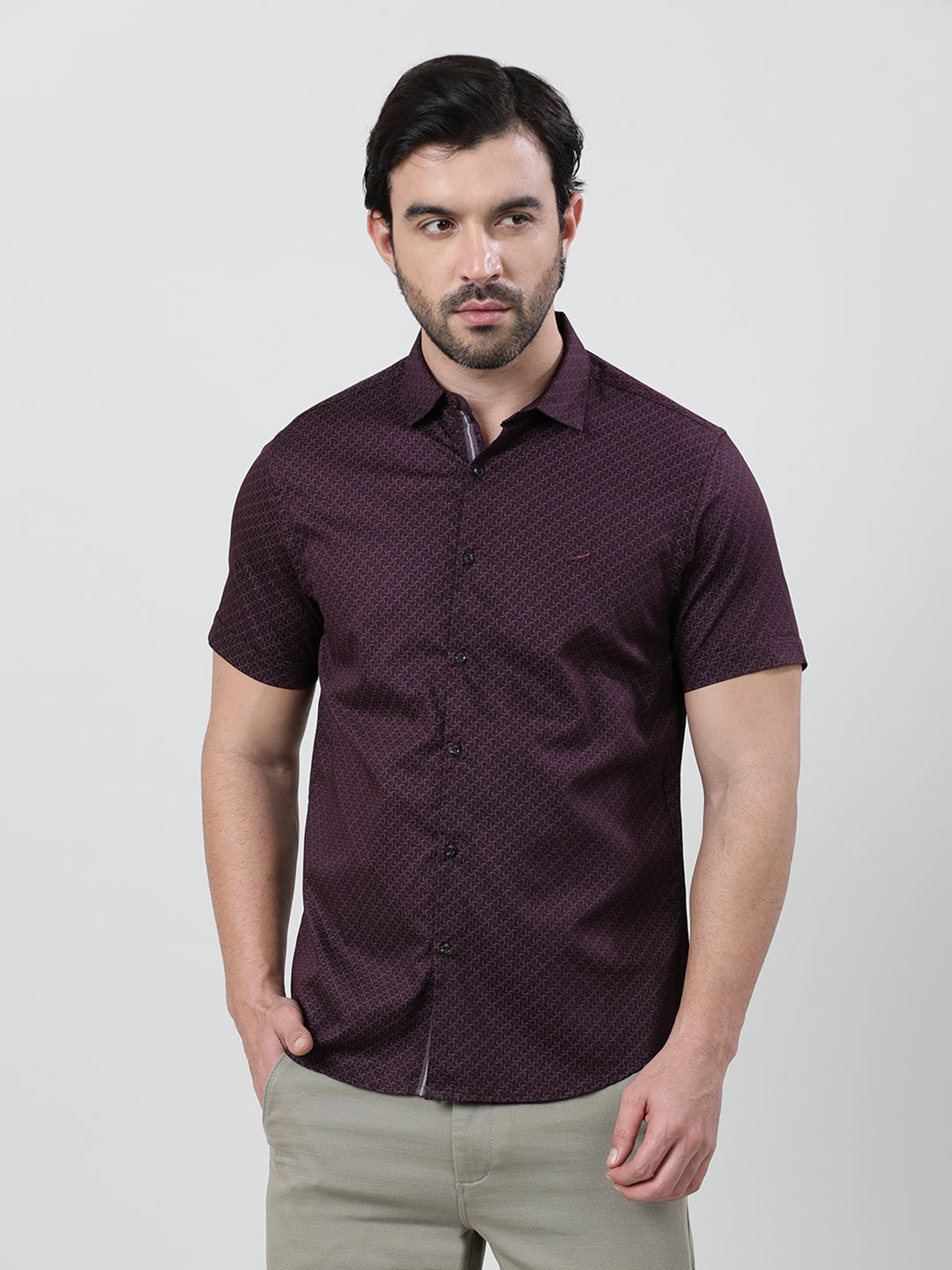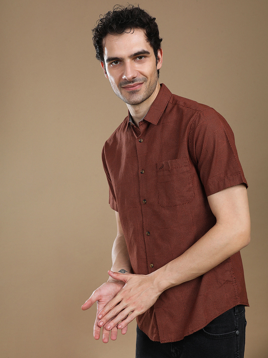 Wine Brown Printed Half Sleeve 100% Cotton Shirt