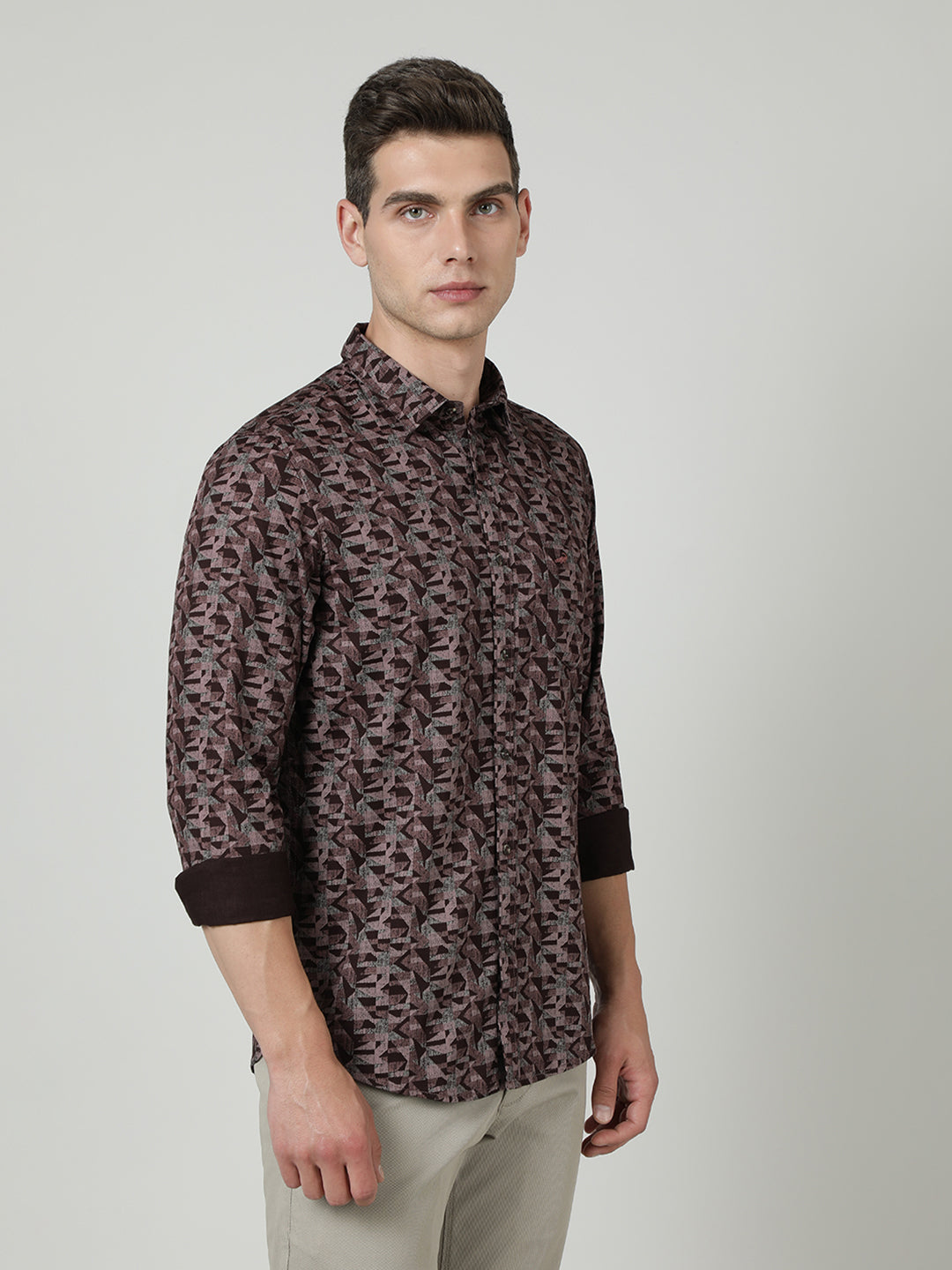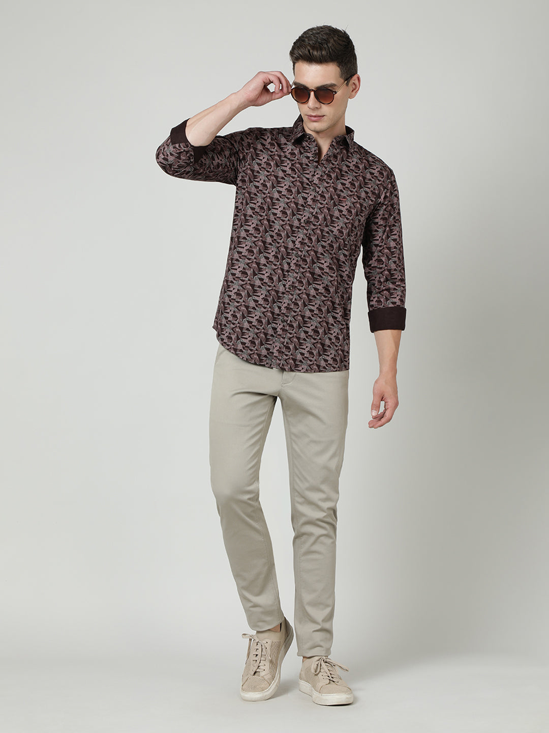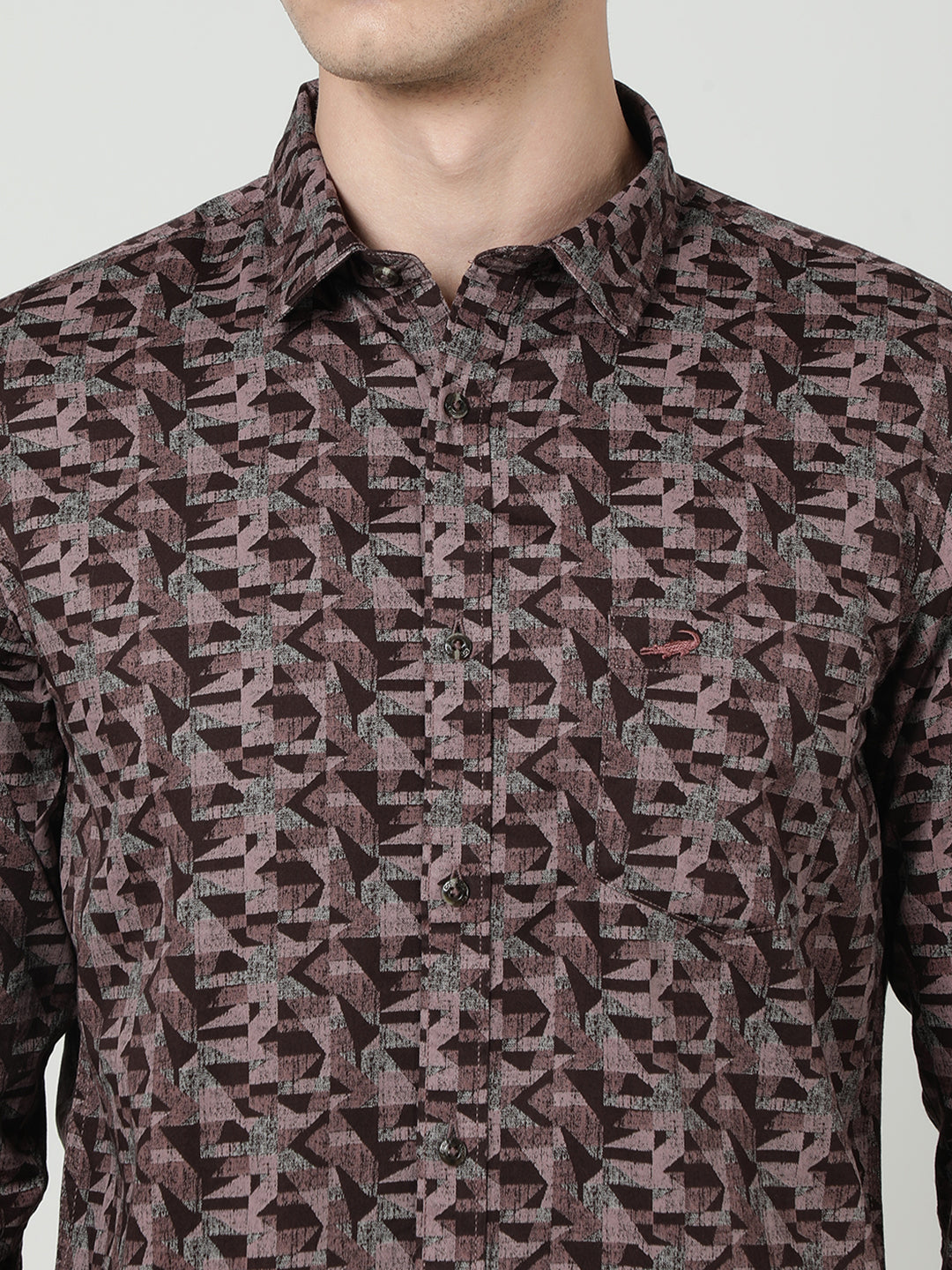 Wine Brown Printed Full Sleeve 100% Cotton Shirt