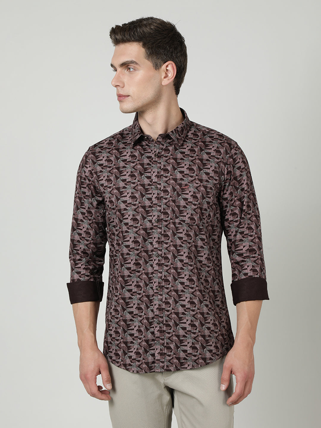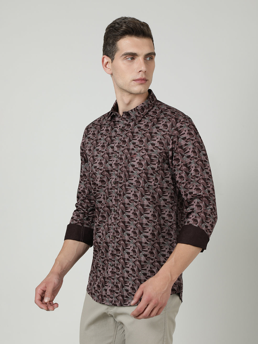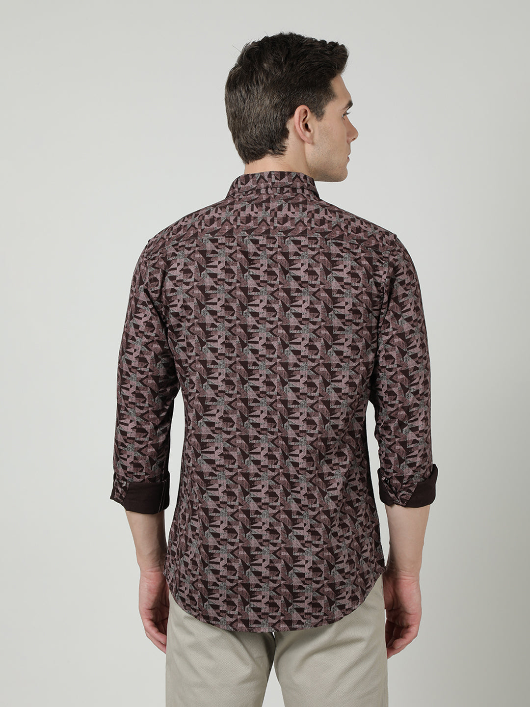 Wine Brown Printed Full Sleeve 100% Cotton Shirt