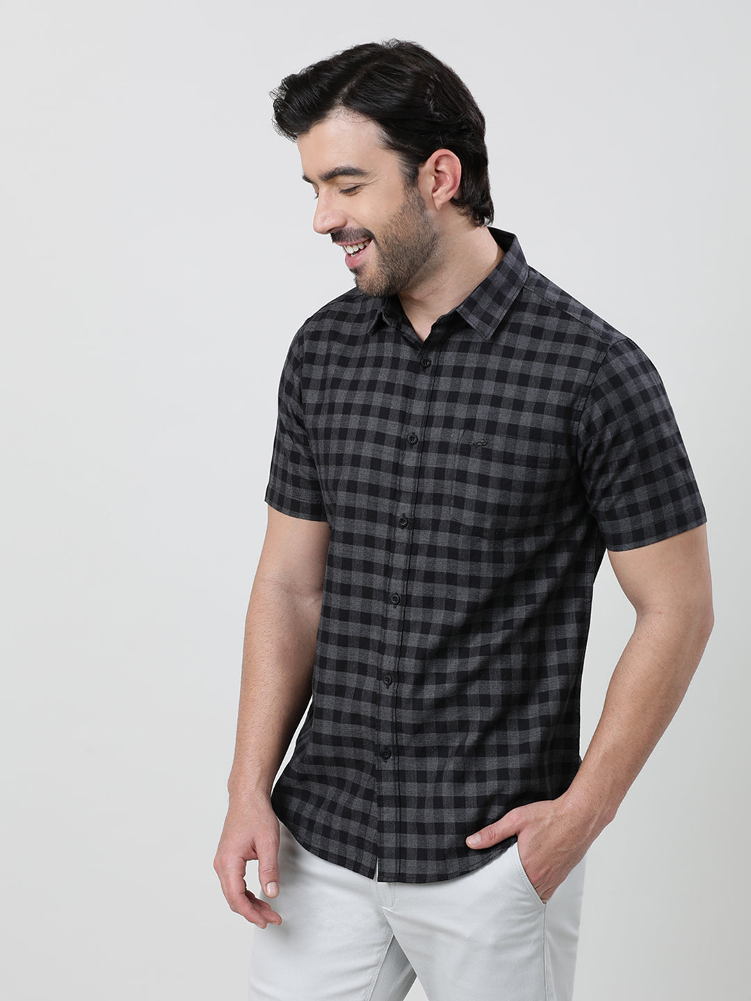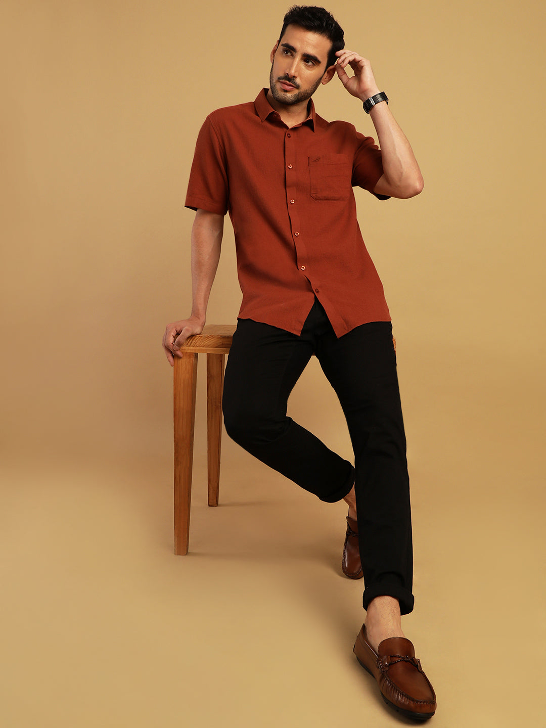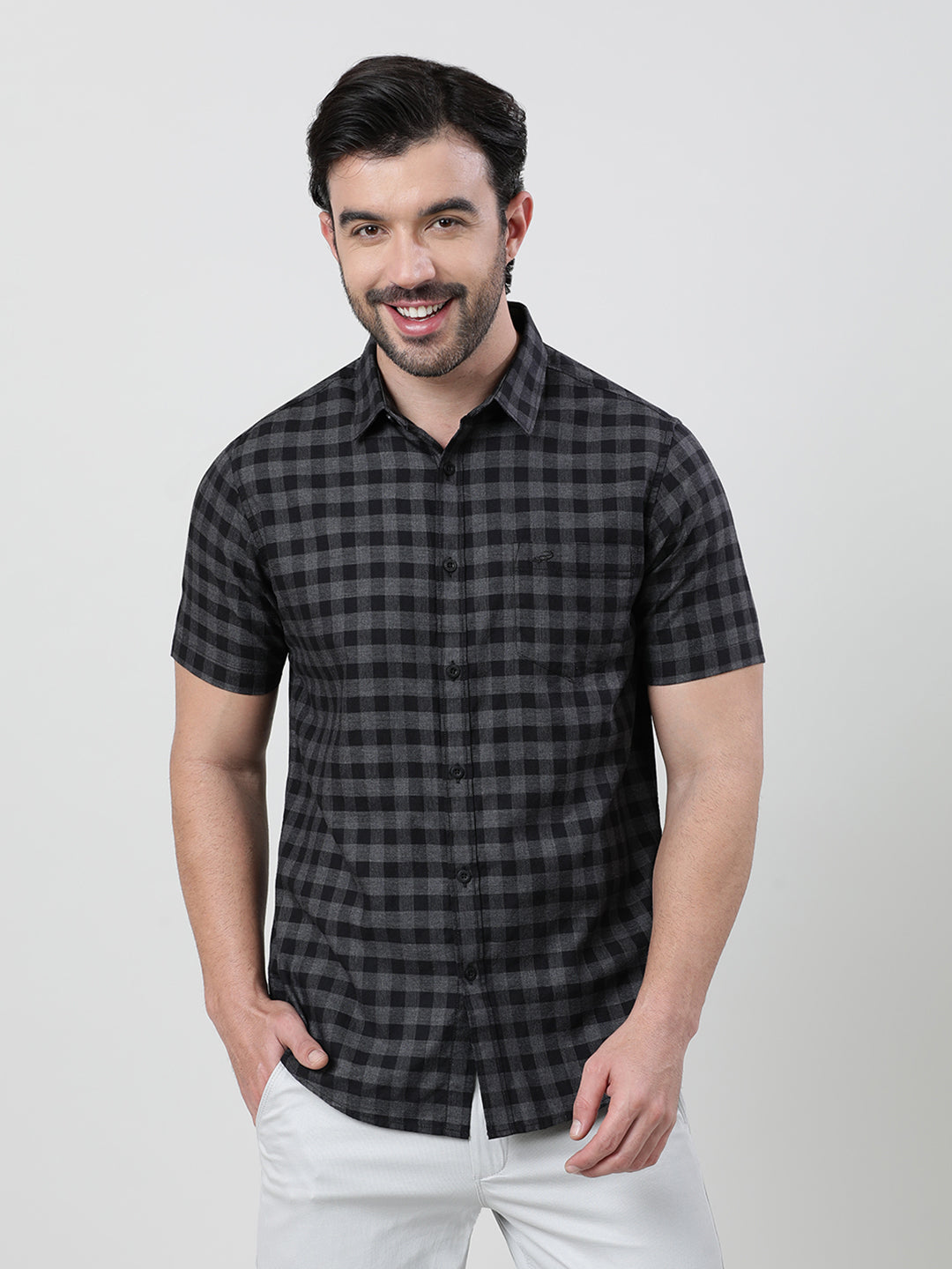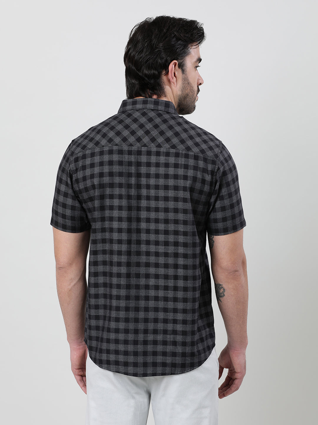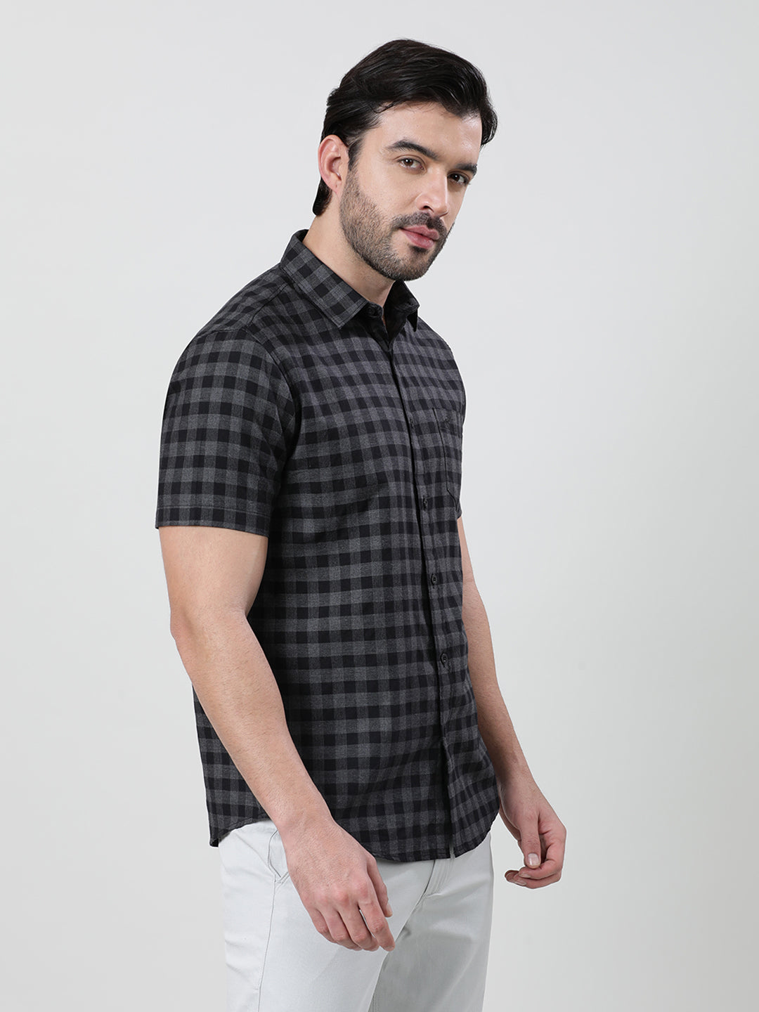 Black Solid Half Sleeve 100% Cotton Casual Shirt