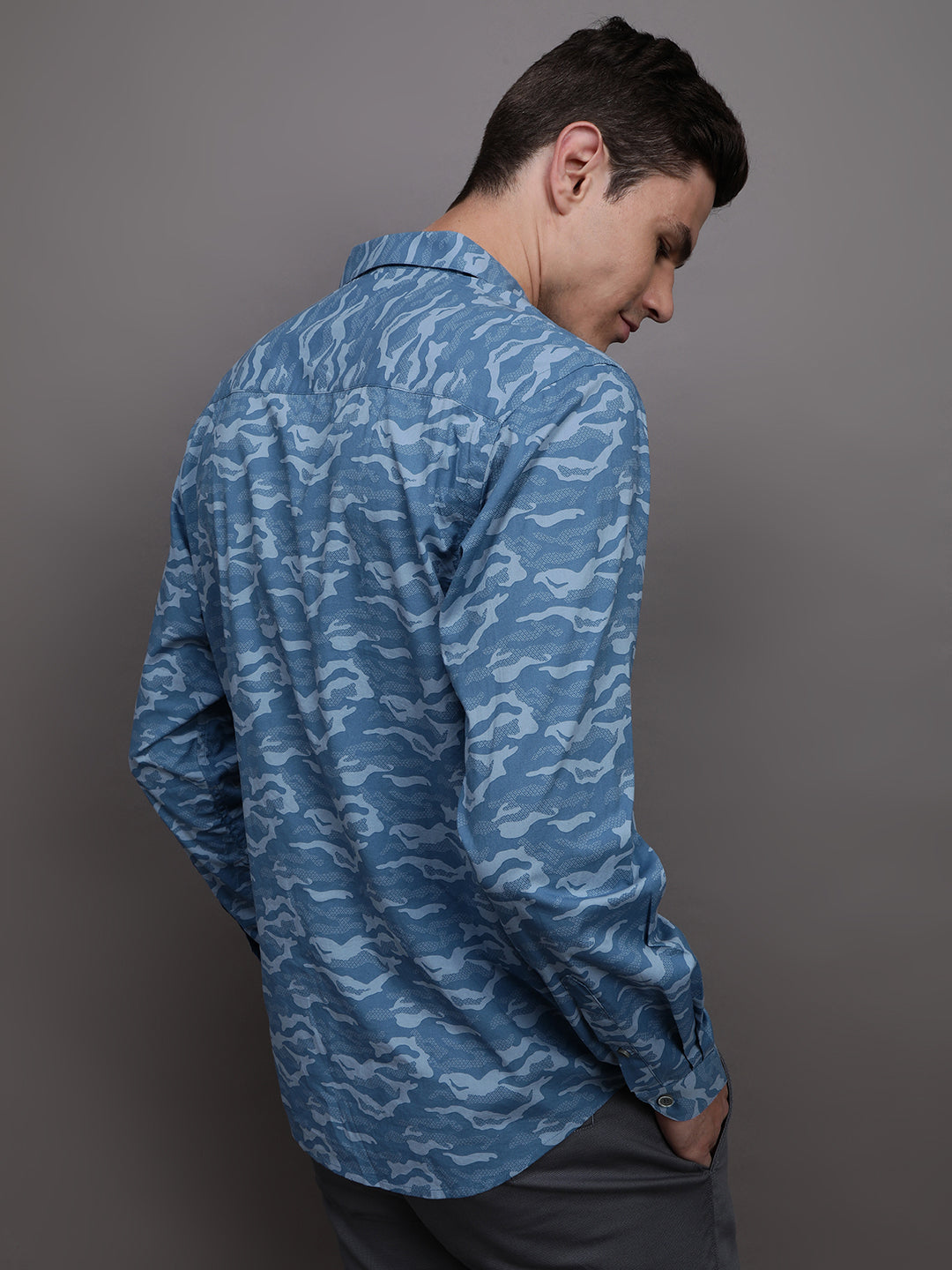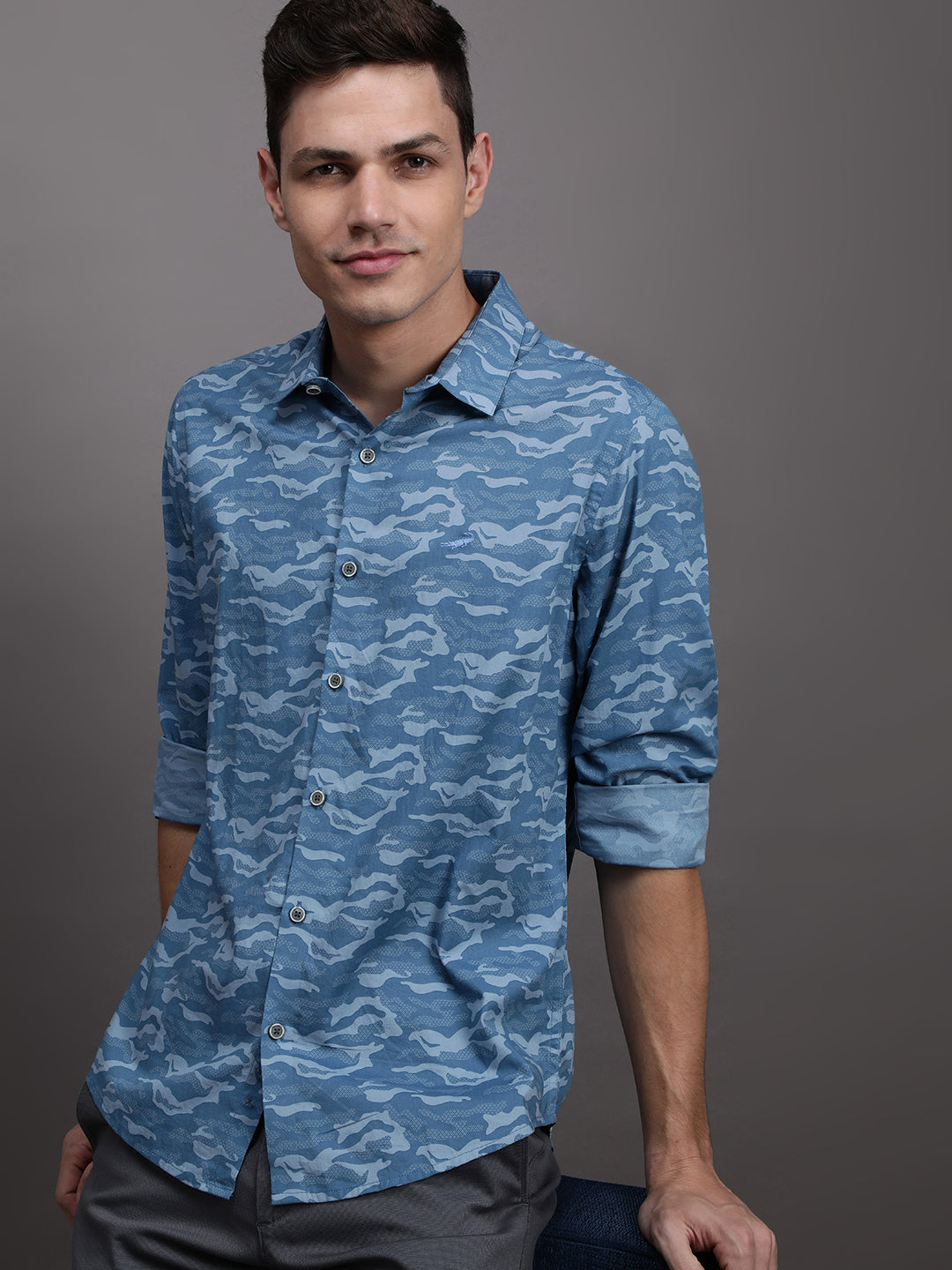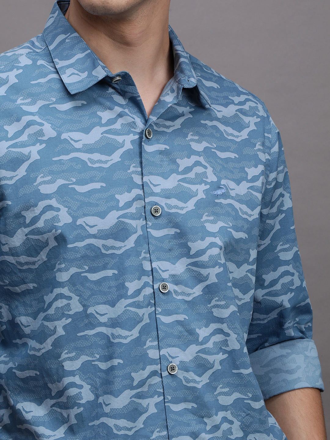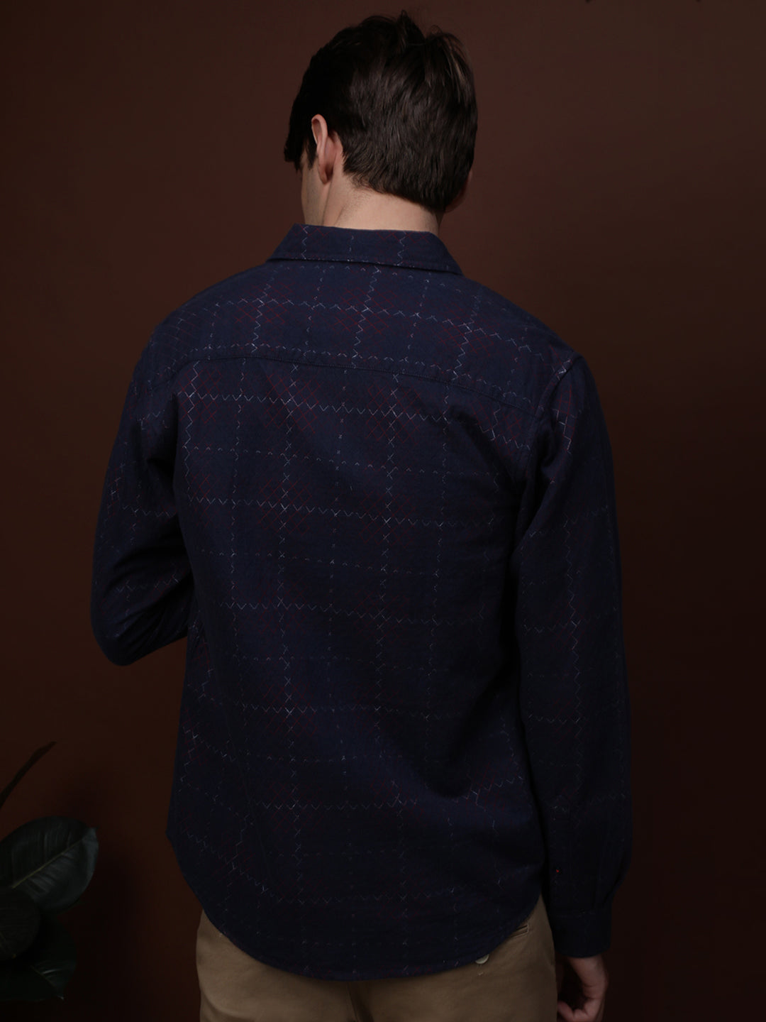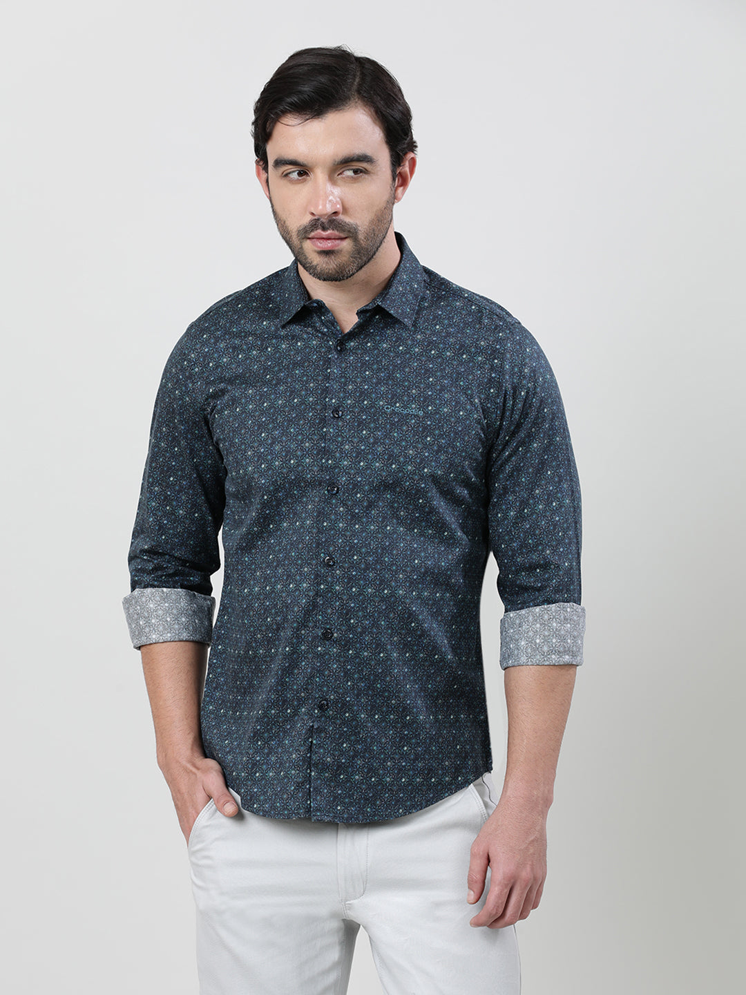 Dark Blue Printed Full Sleeve 100% Cotton Shirt
