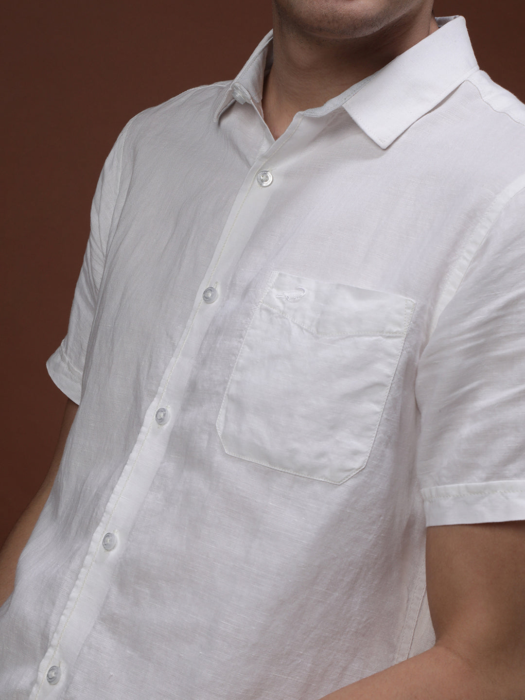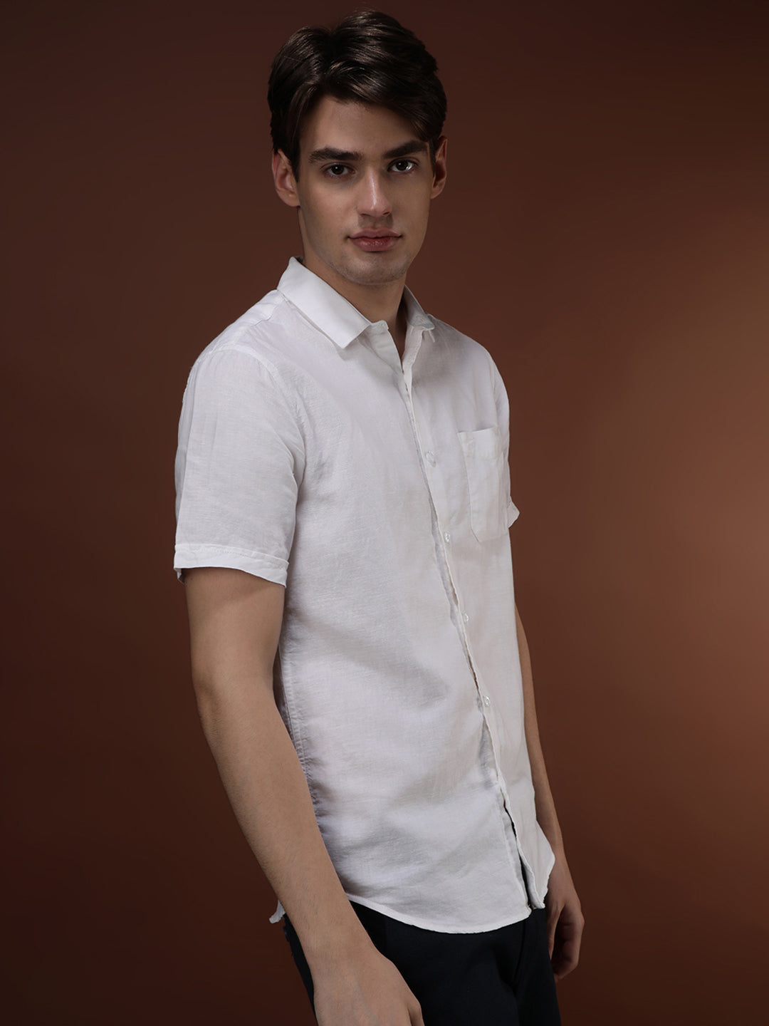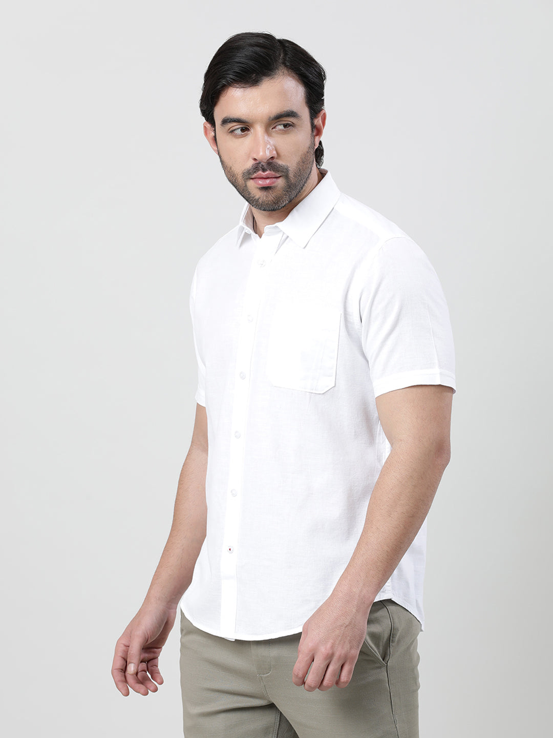 White Solid Casual Half Sleeve 100% Cotton Shirt