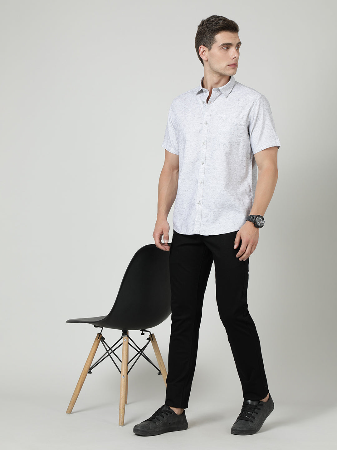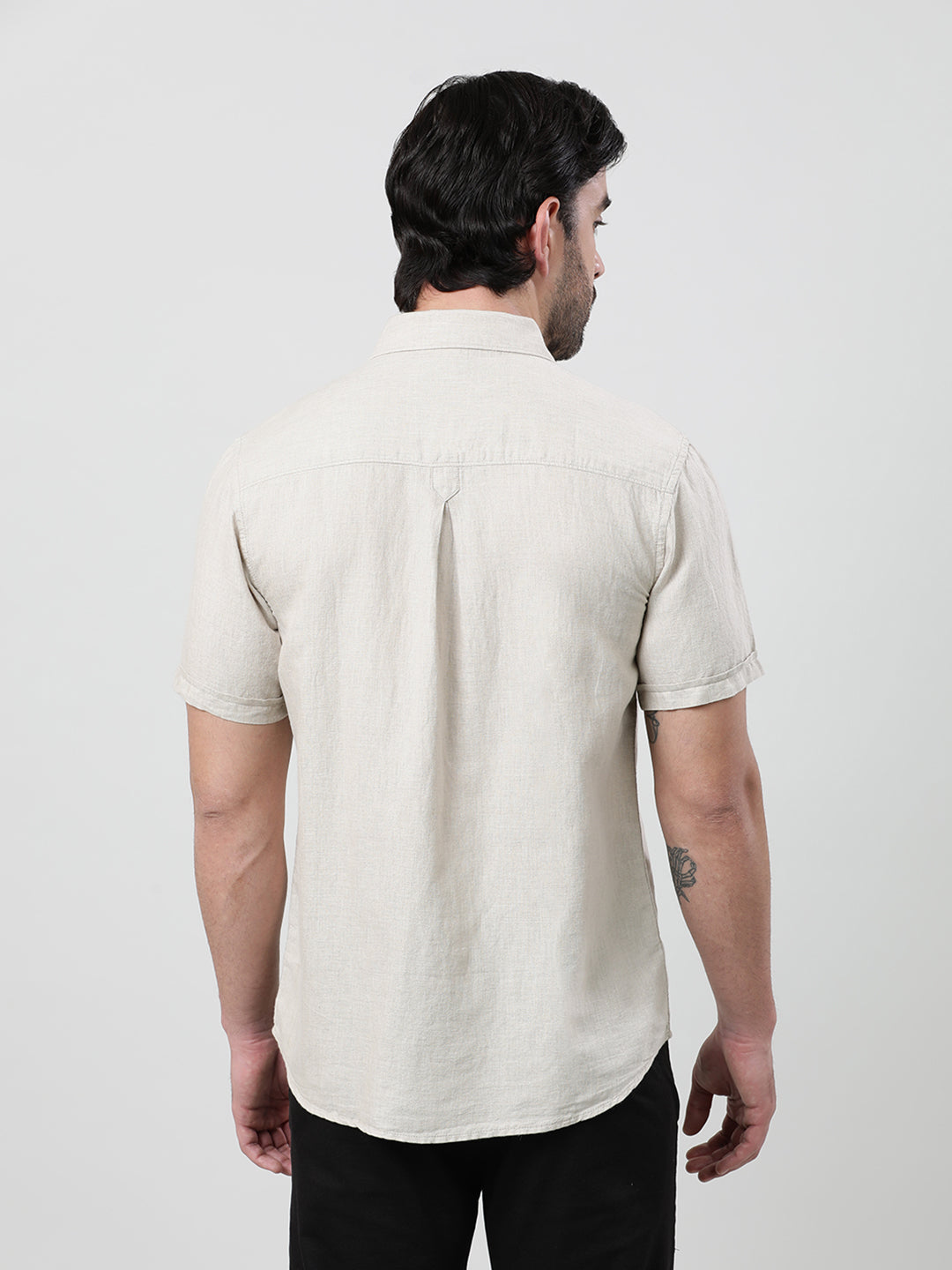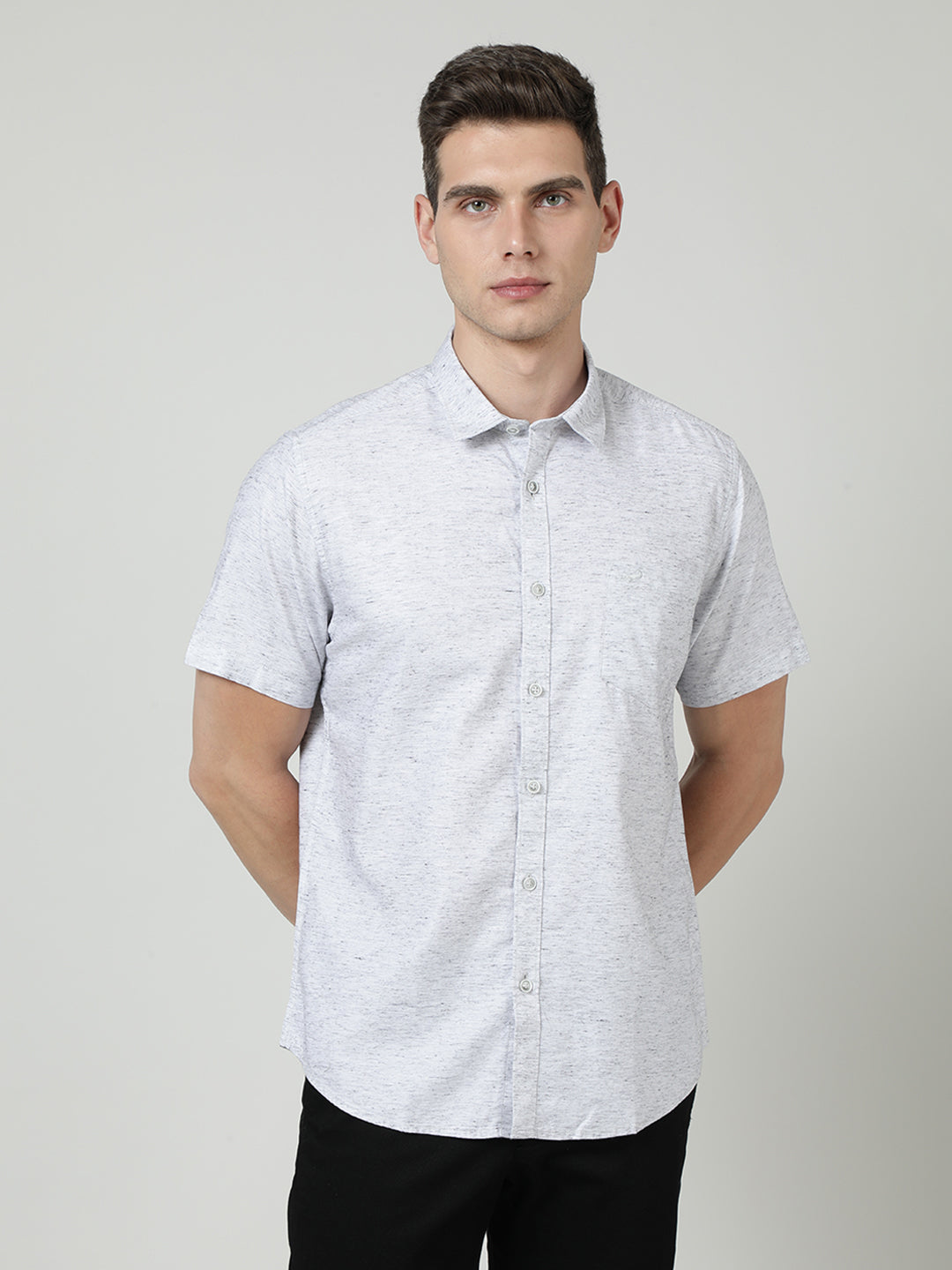 White Solid Casual Half Sleeve 100% Cotton Shirt