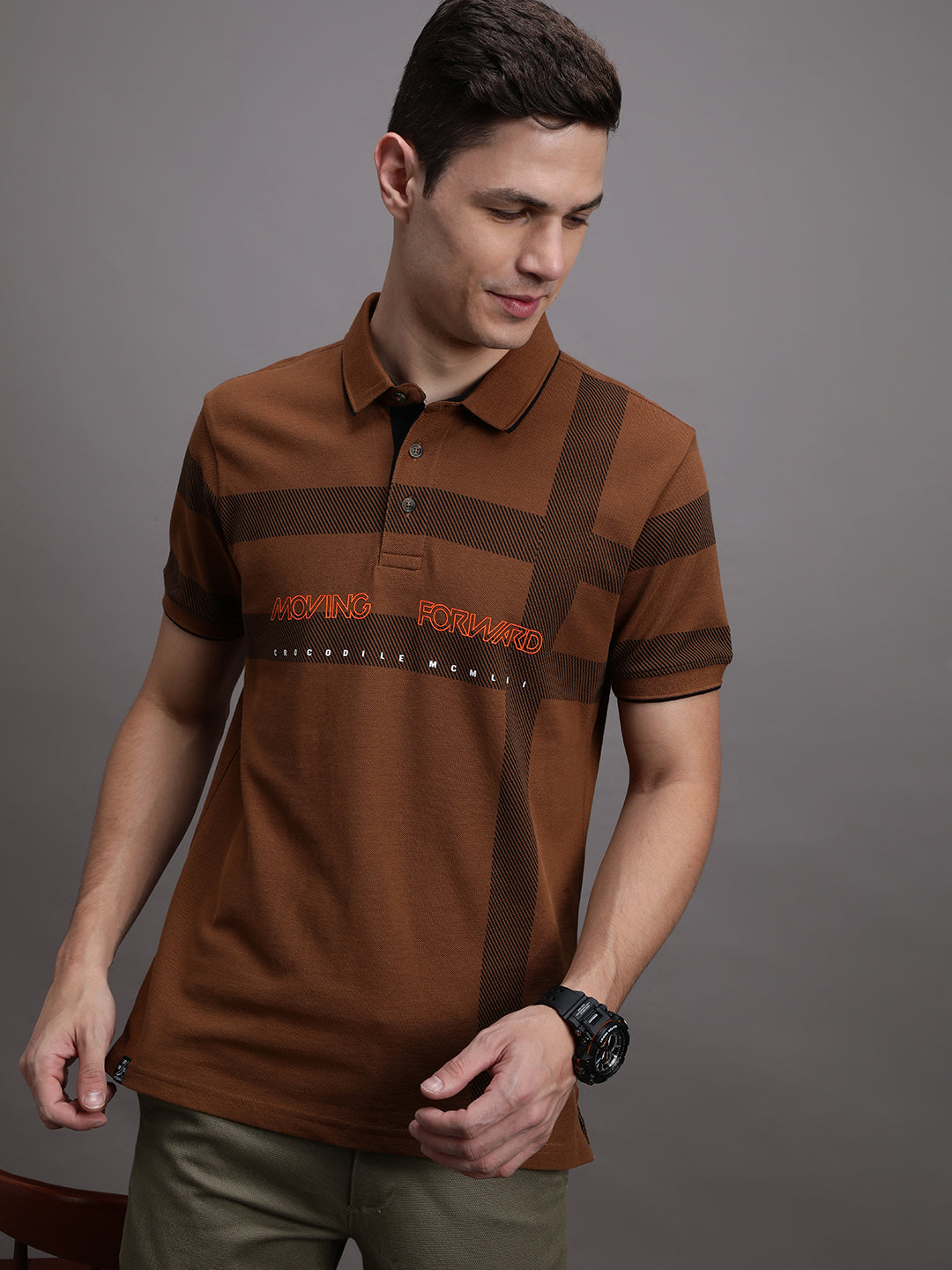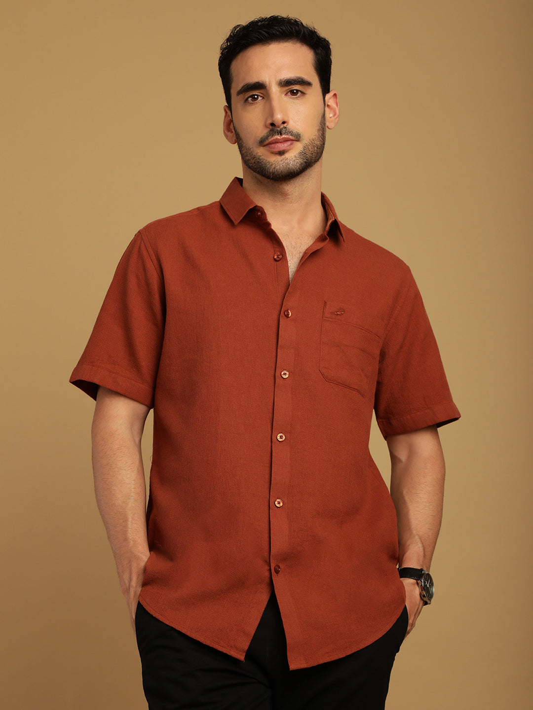 Brown Printed Half Sleeve 100% Cotton Shirt