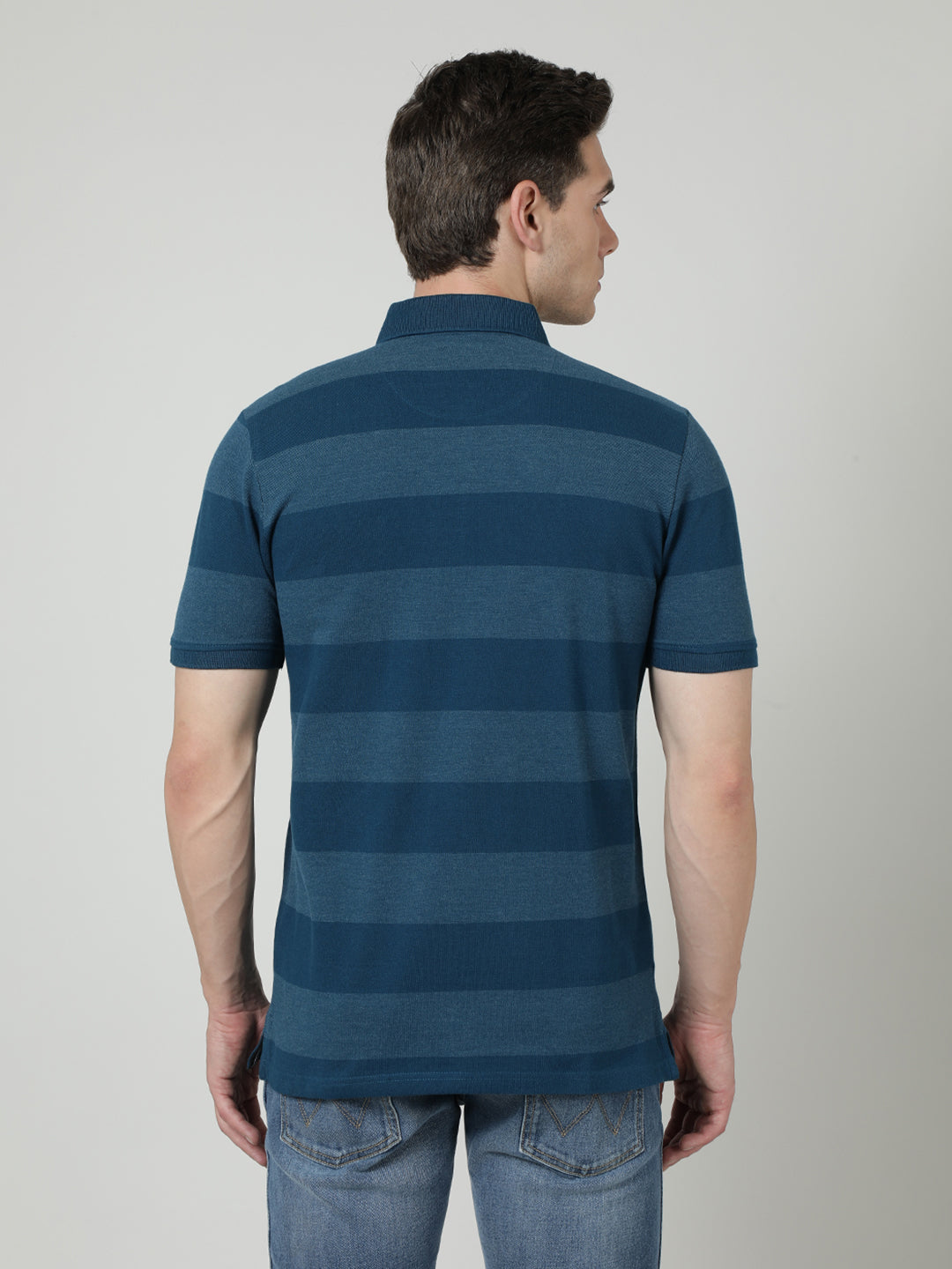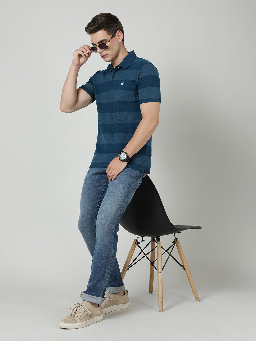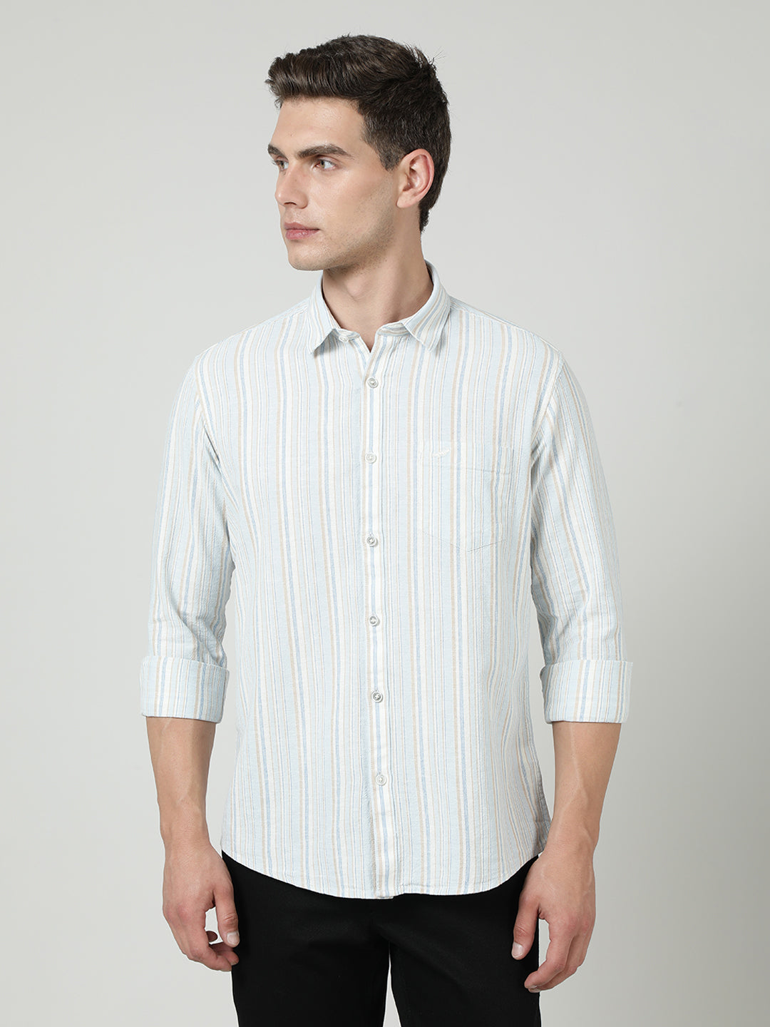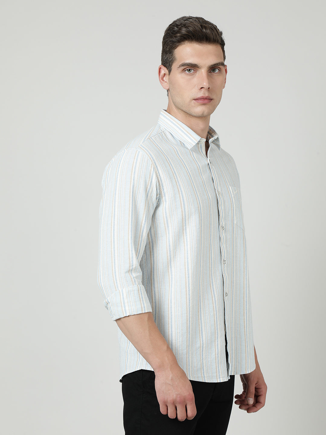 Deep Teal Blue Striped Full Sleeve 100% Cotton Shirt