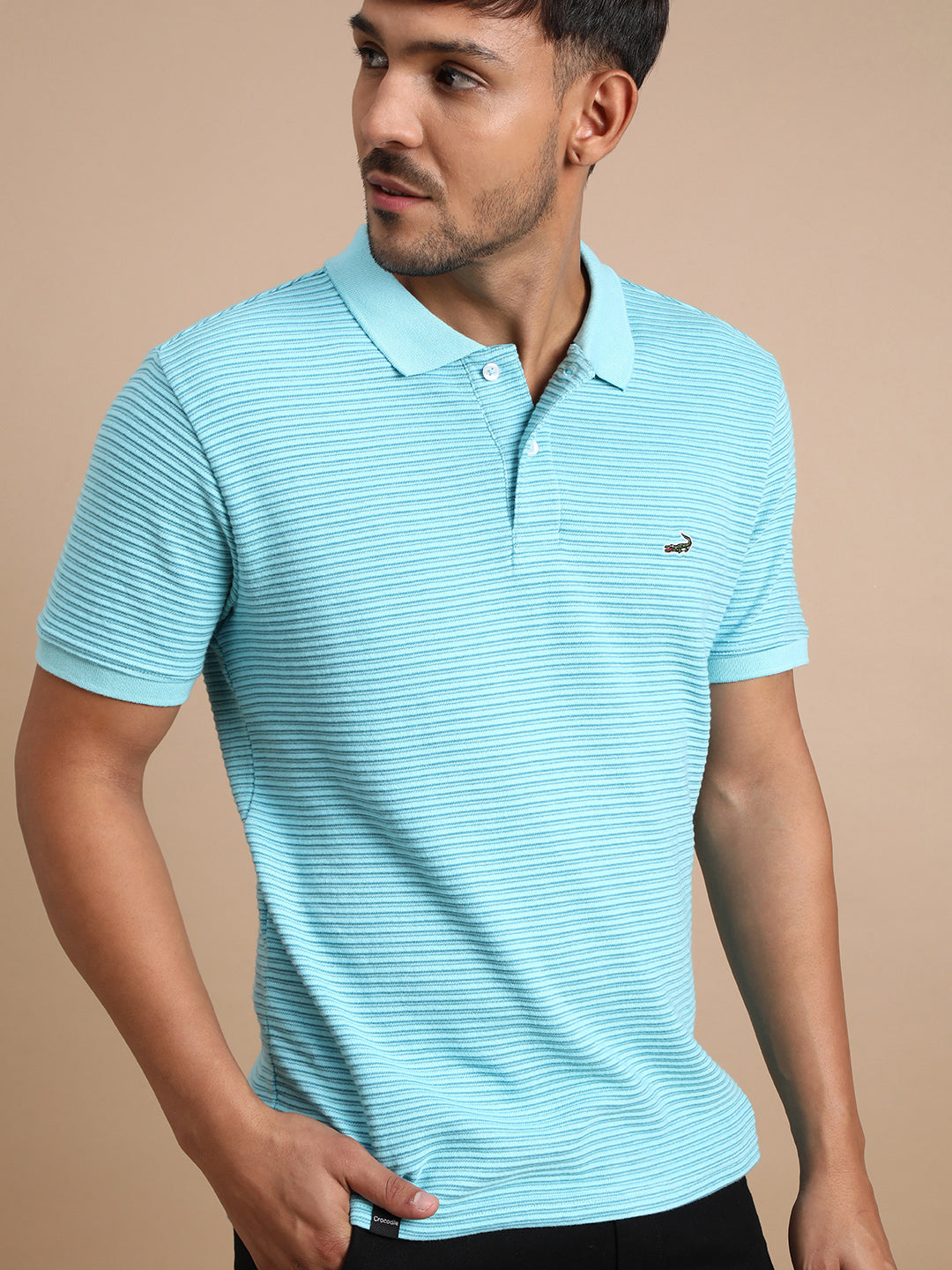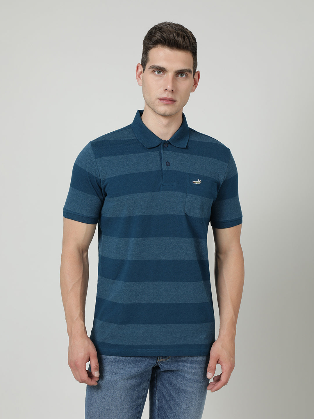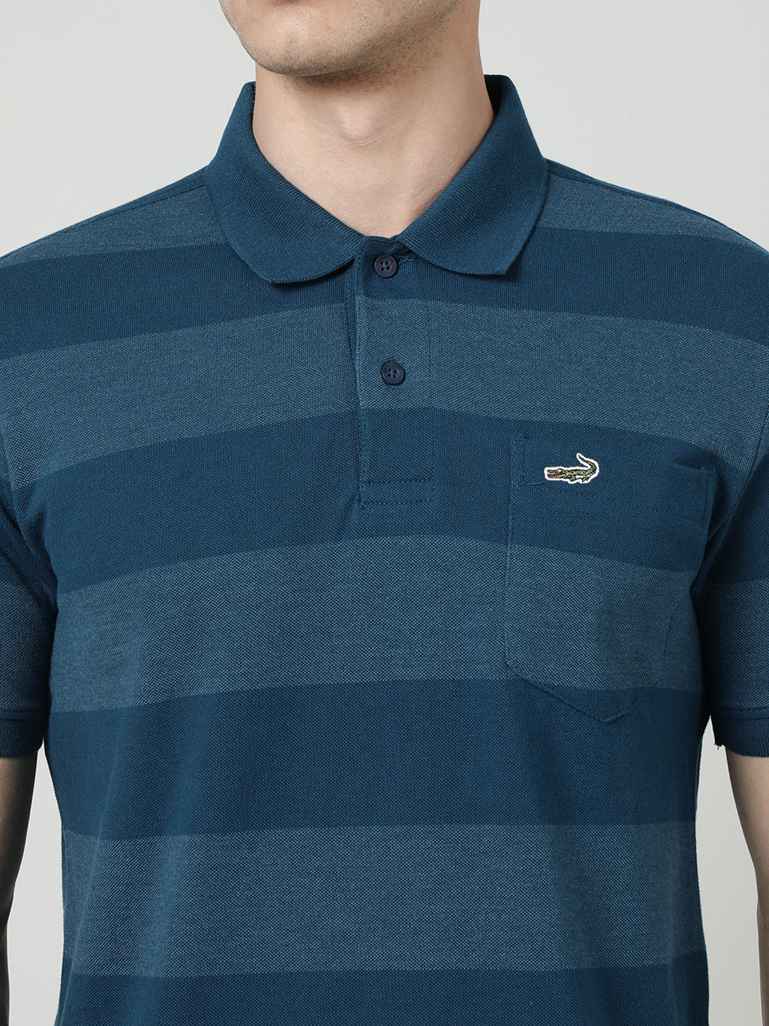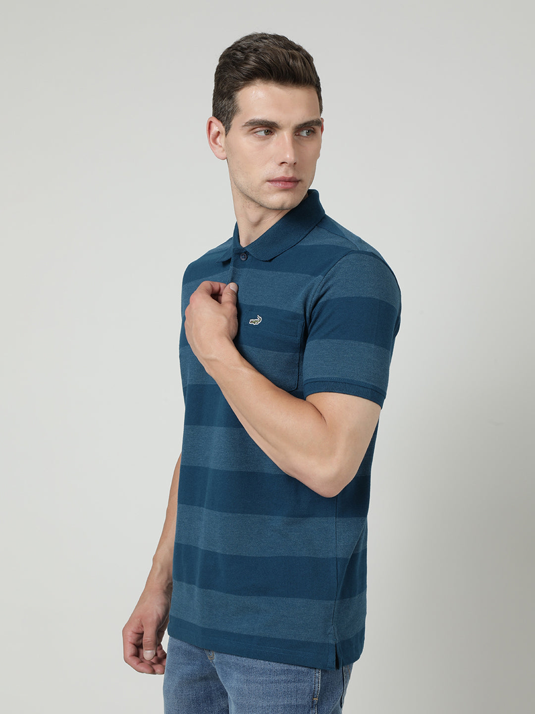 Deep Teal Blue Striped Full Sleeve 100% Cotton Shirt