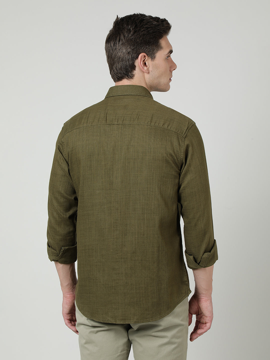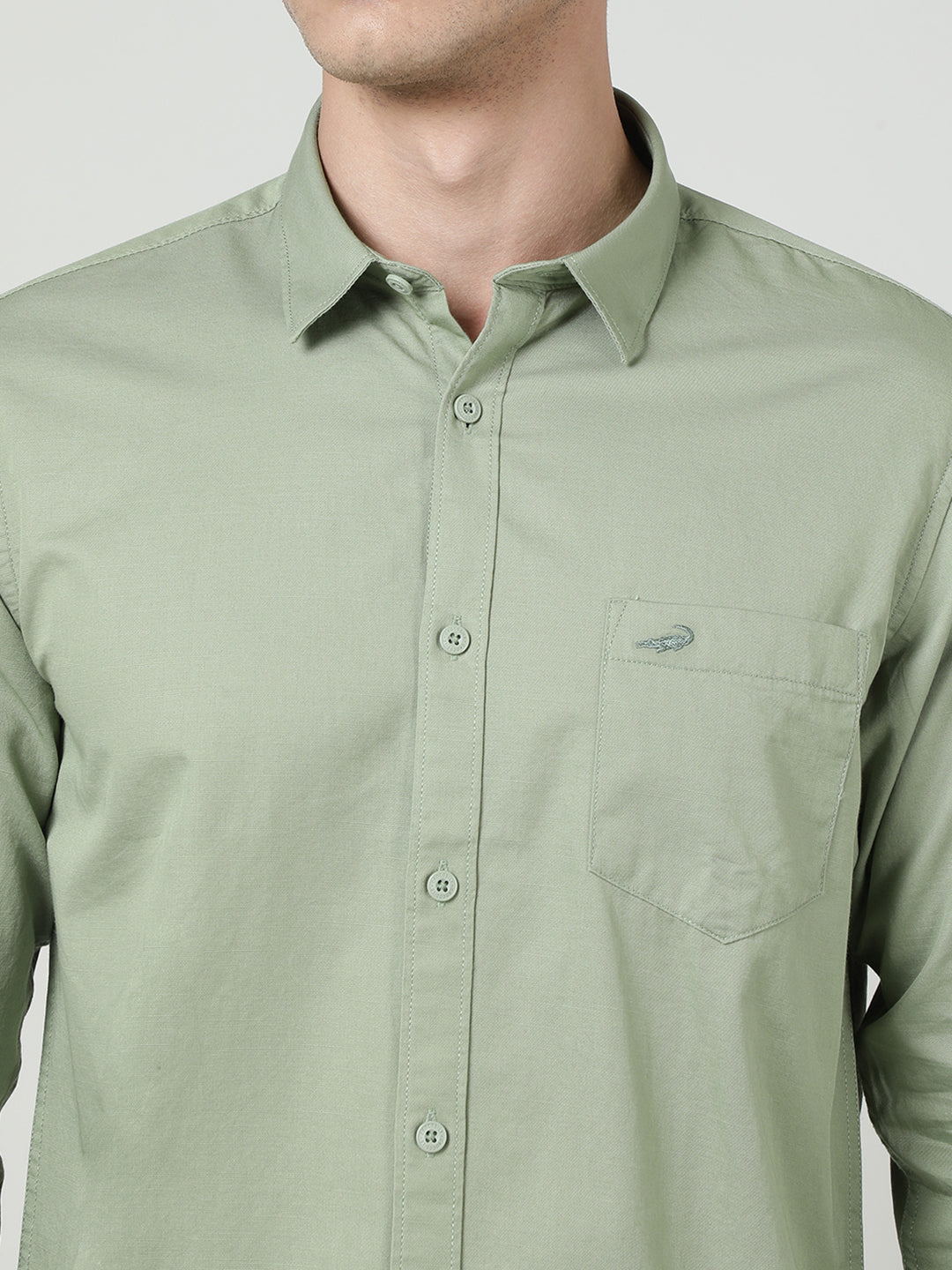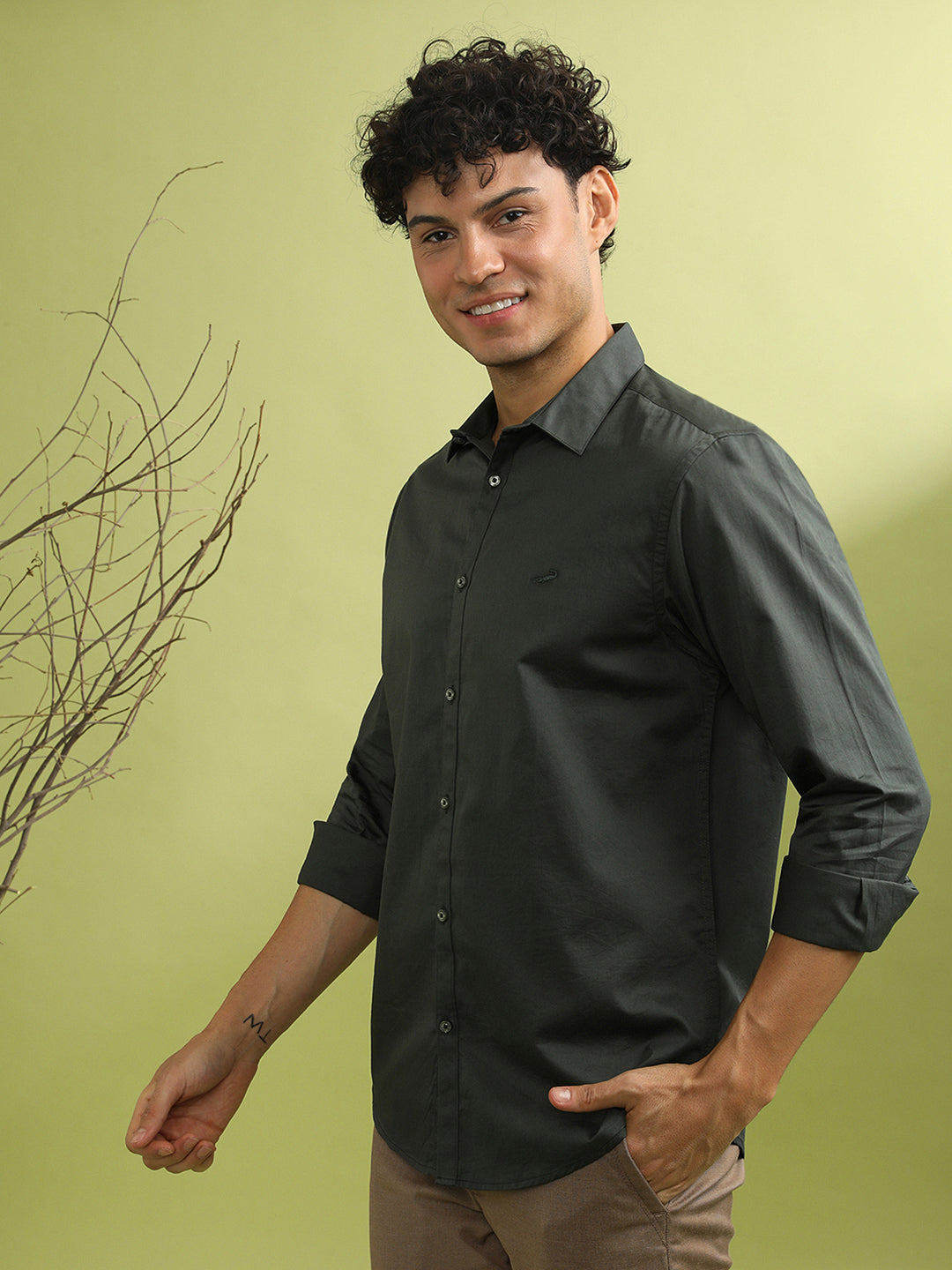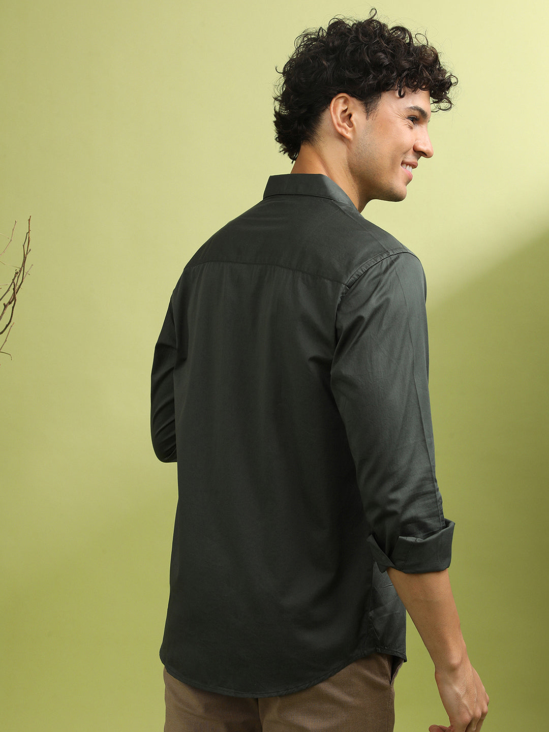Olive Green Solid Full Sleeve 100% Cotton Shirt