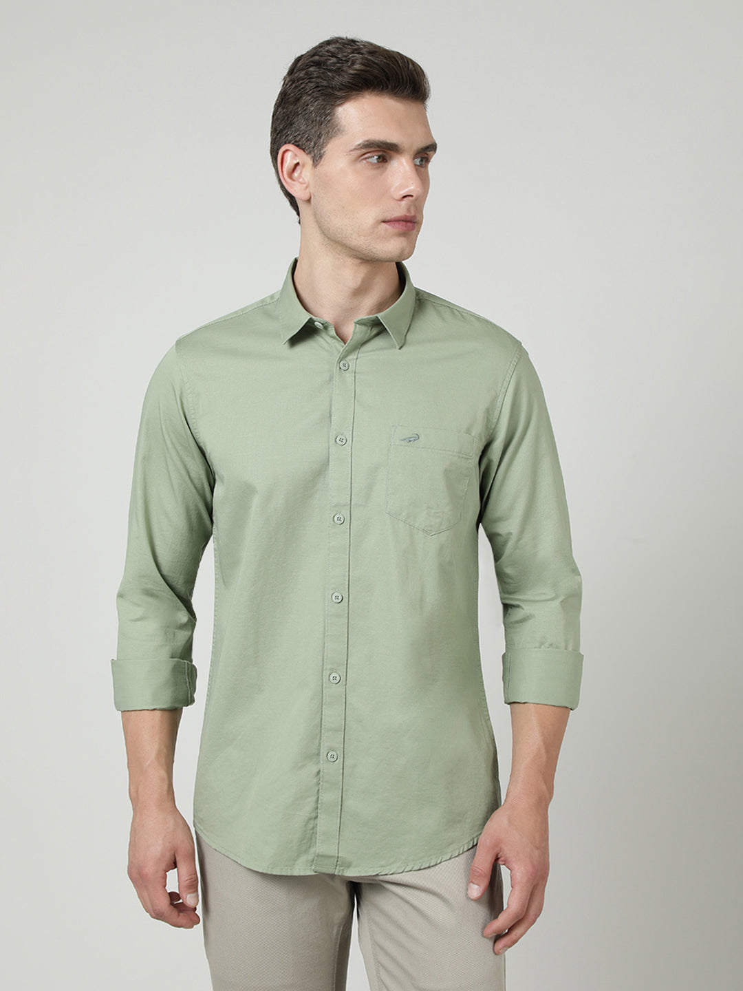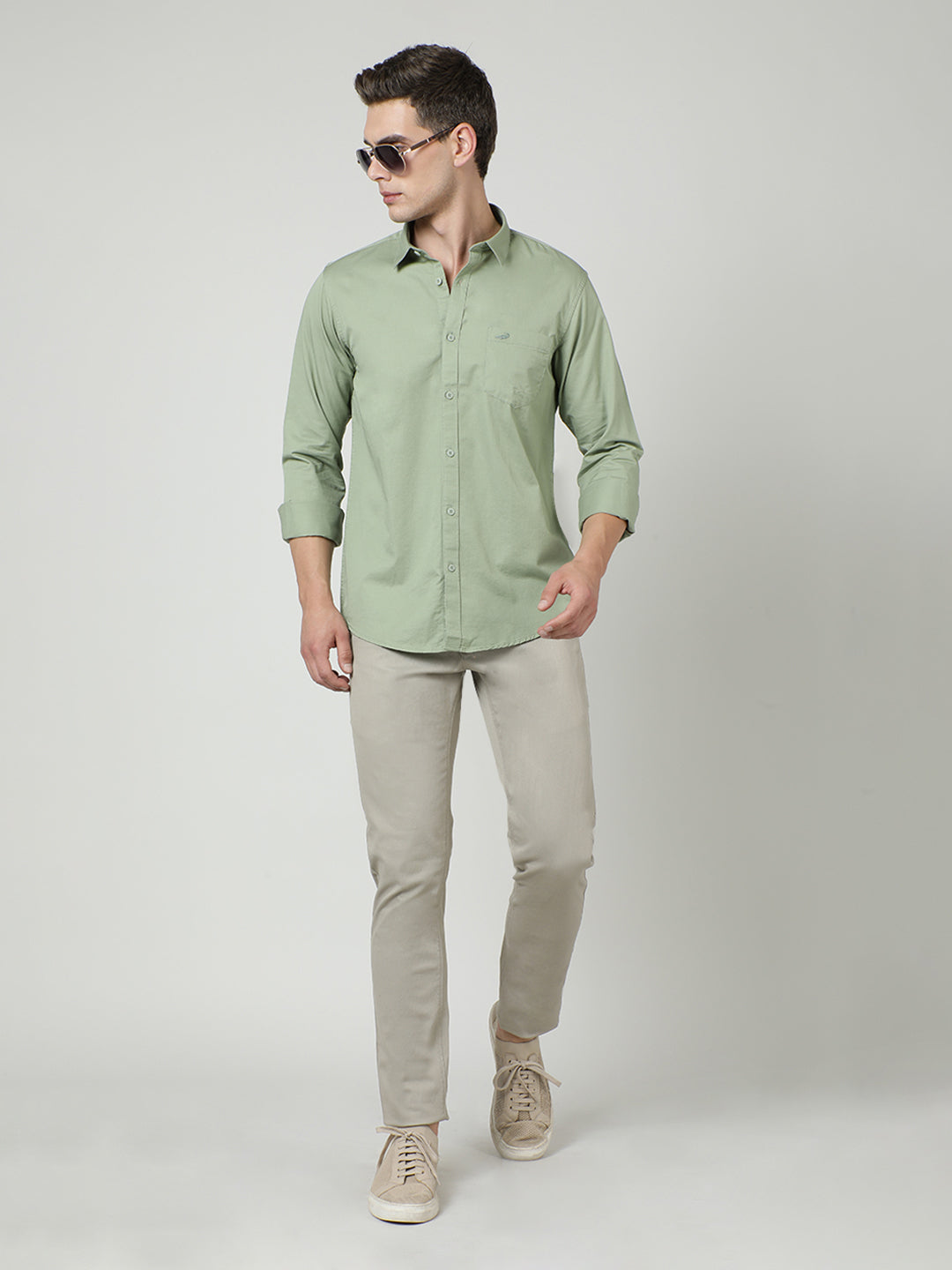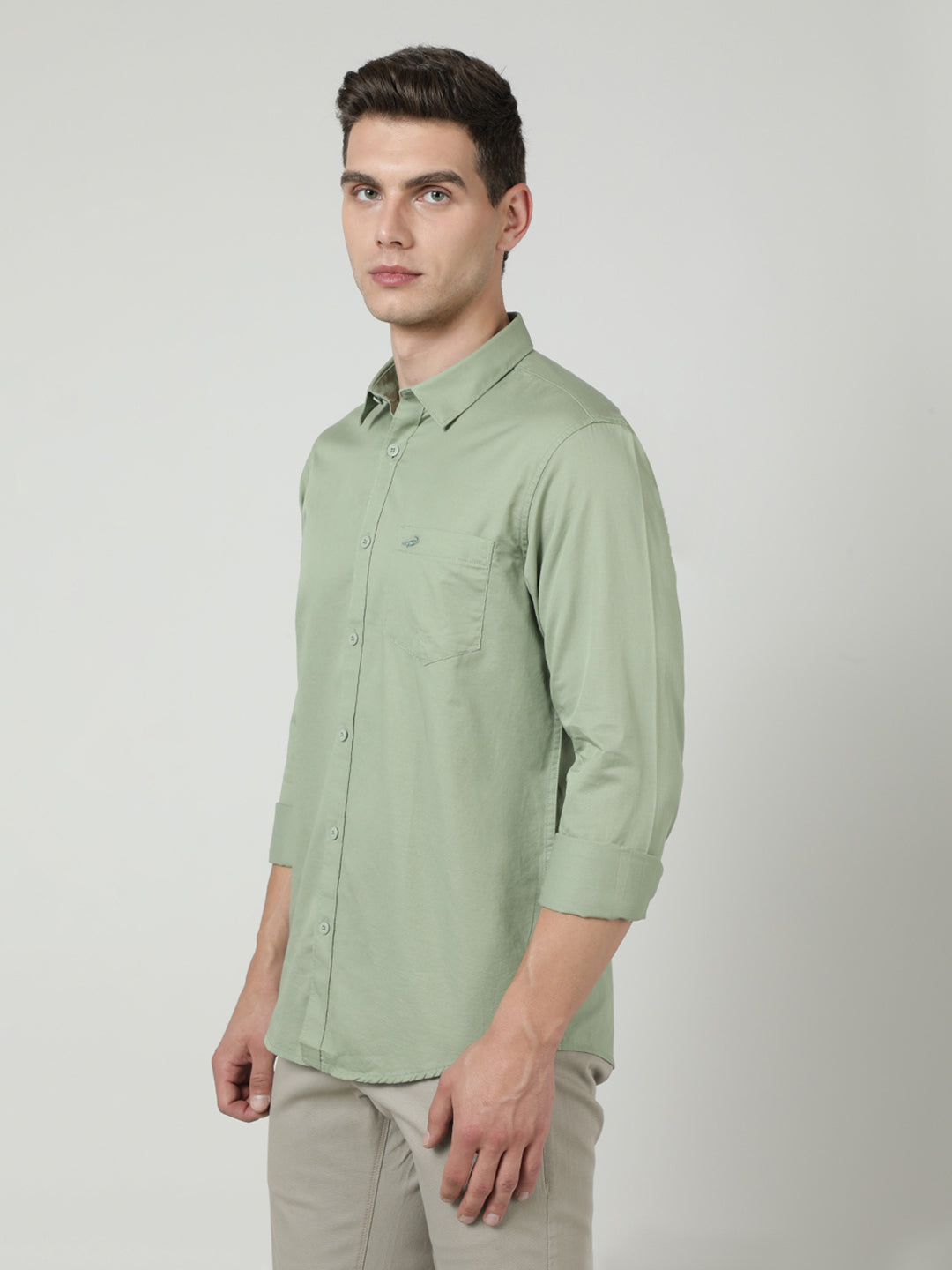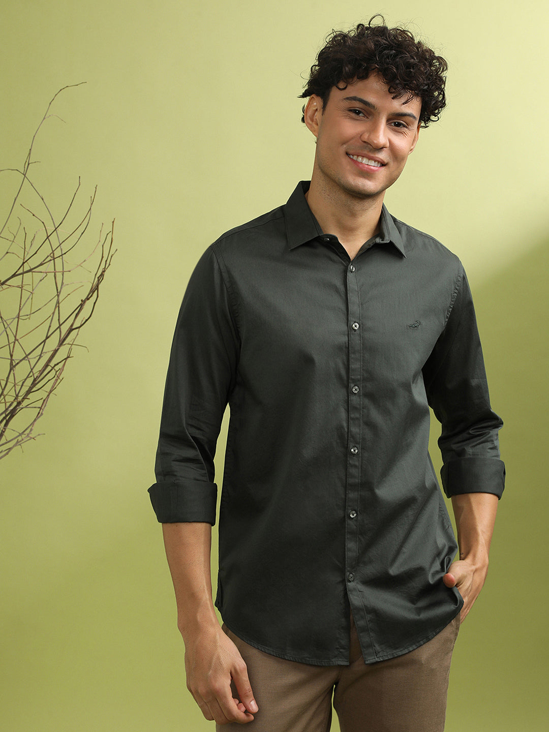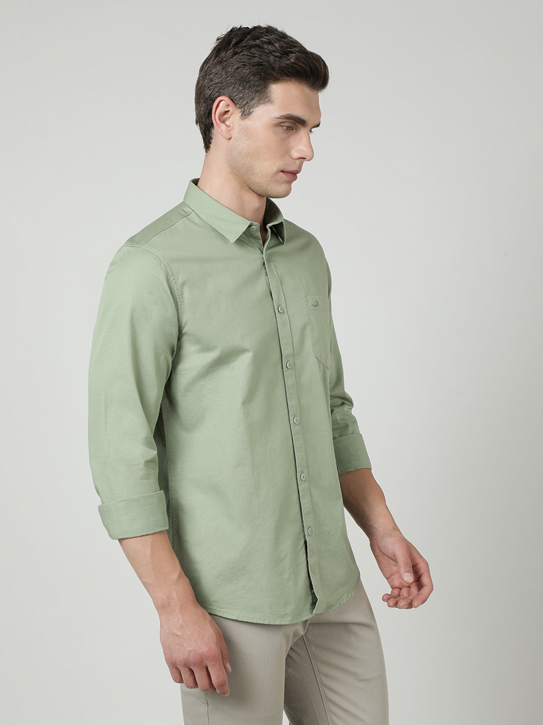 Olive Green Solid Full Sleeve 100% Cotton Shirt
