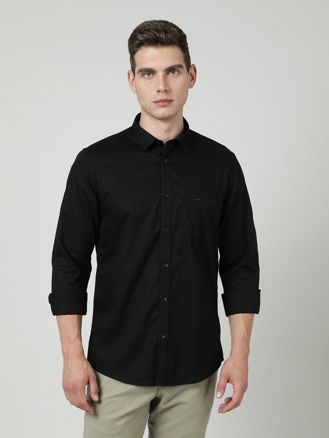 Black Casual Solid Full Sleeve 100% Cotton Shirt