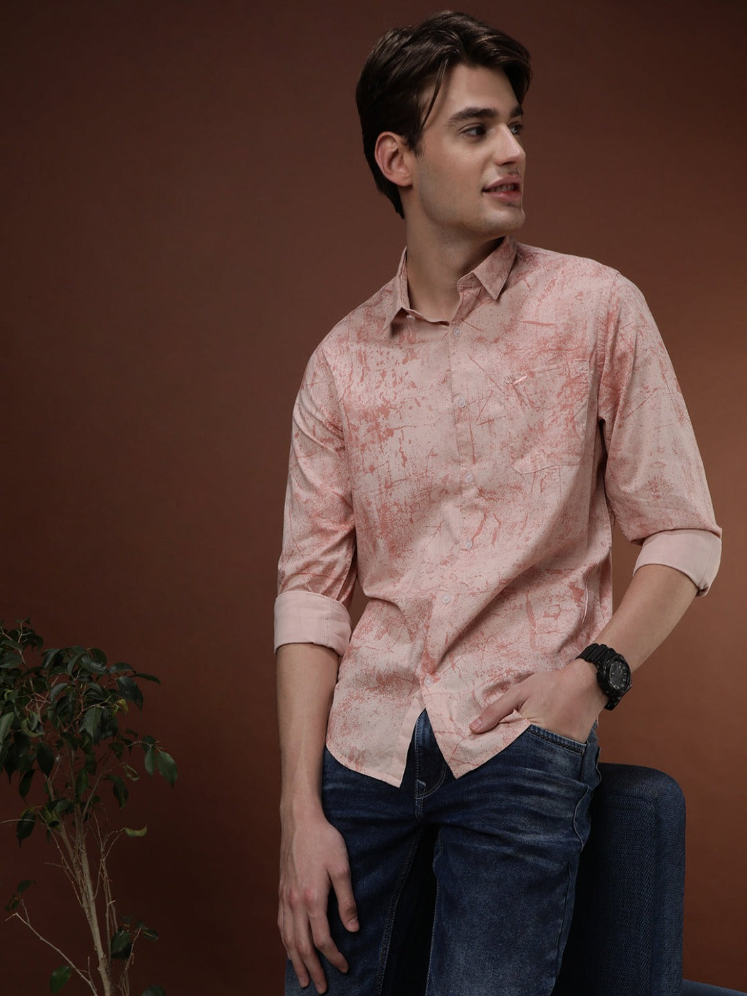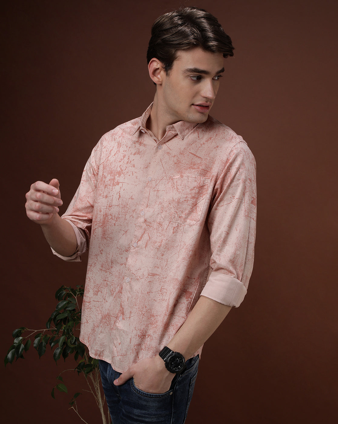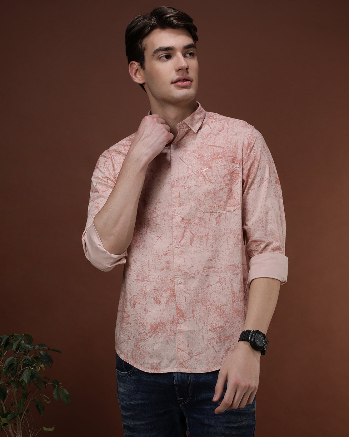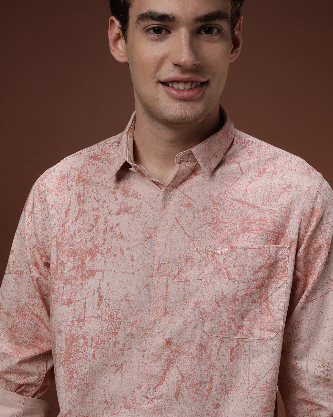 Brown Printed Full Sleeve 100% Cotton Shirt