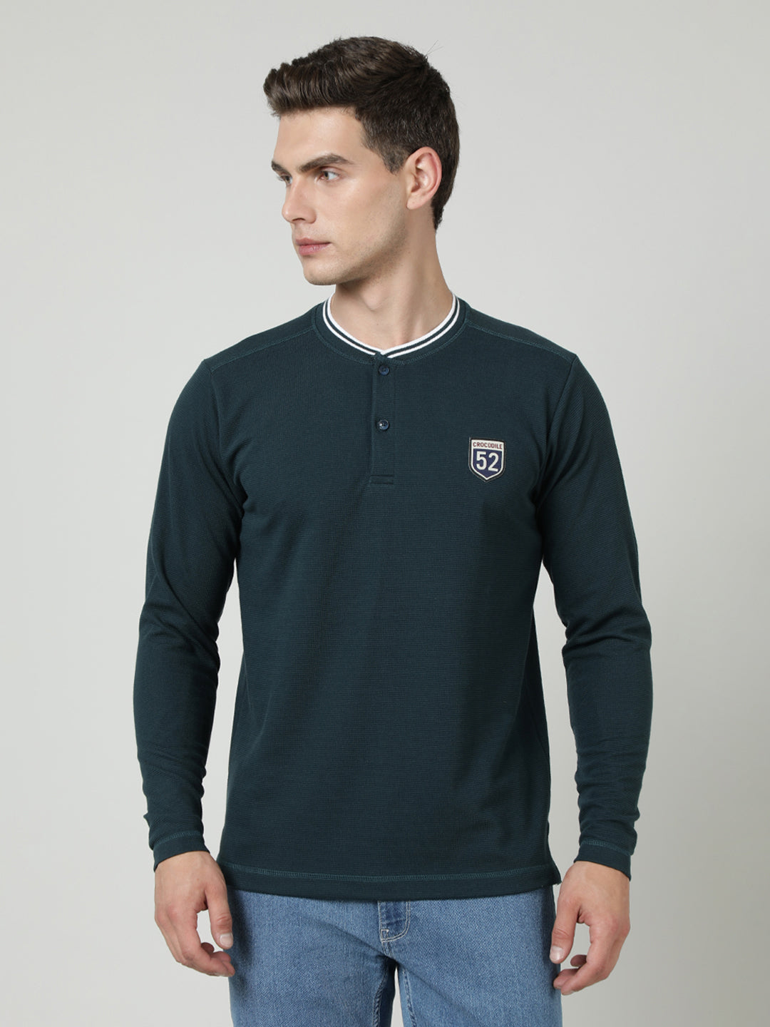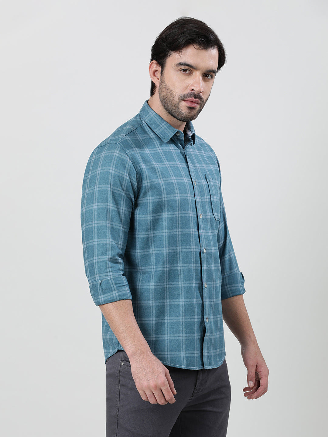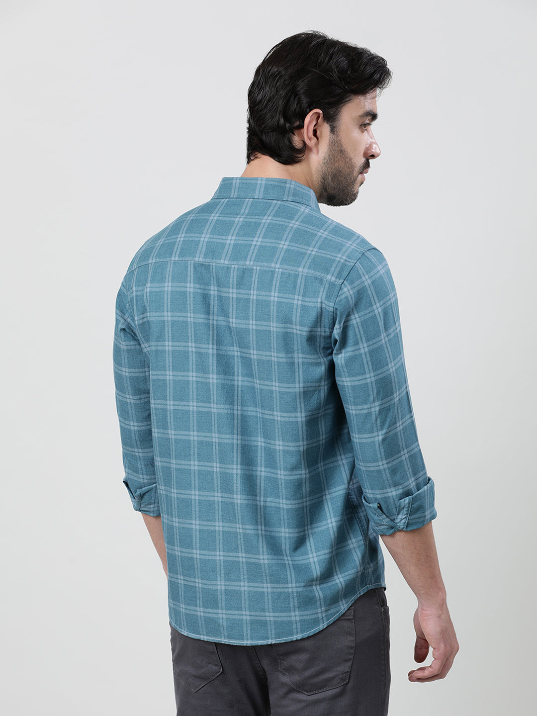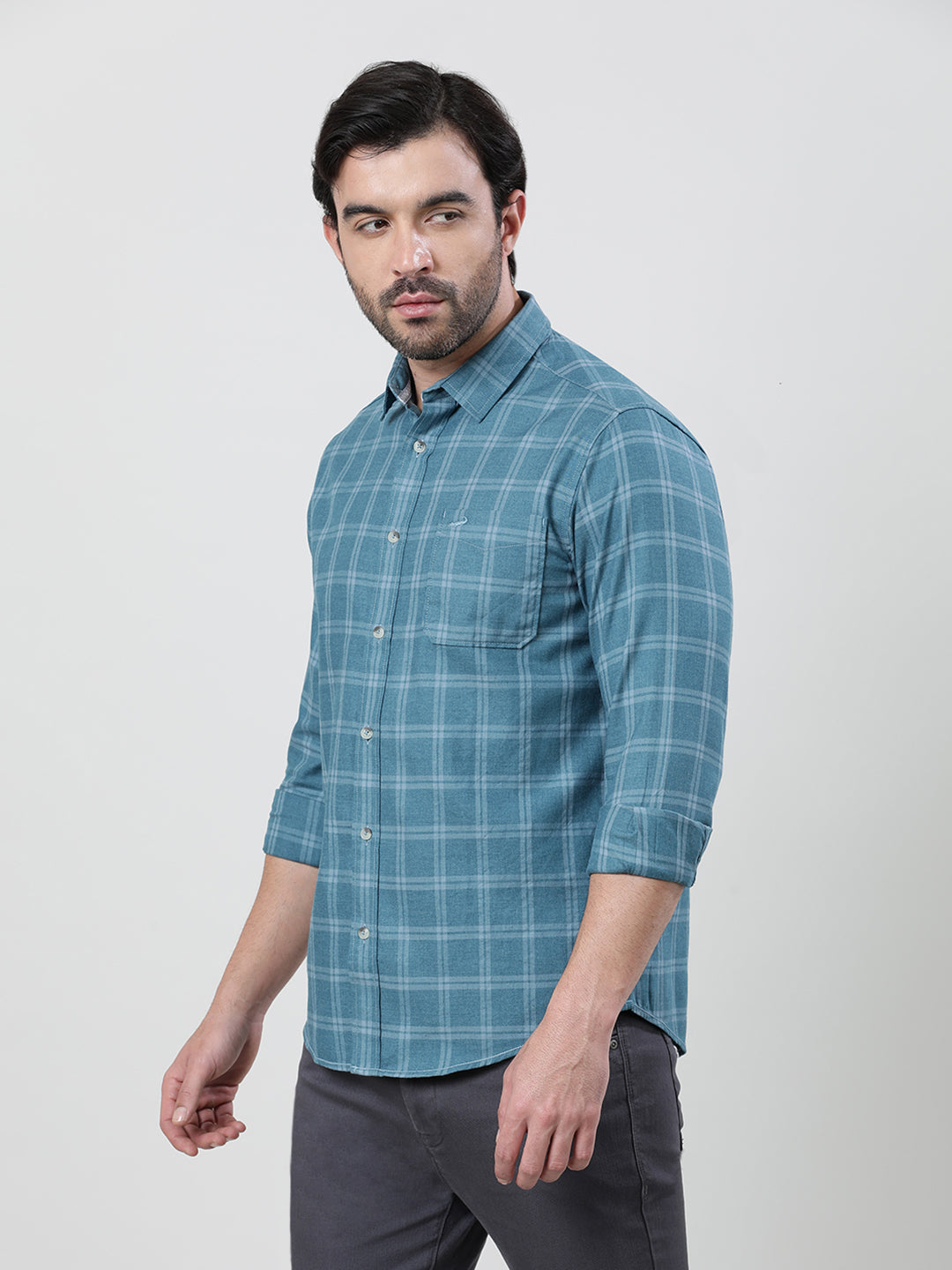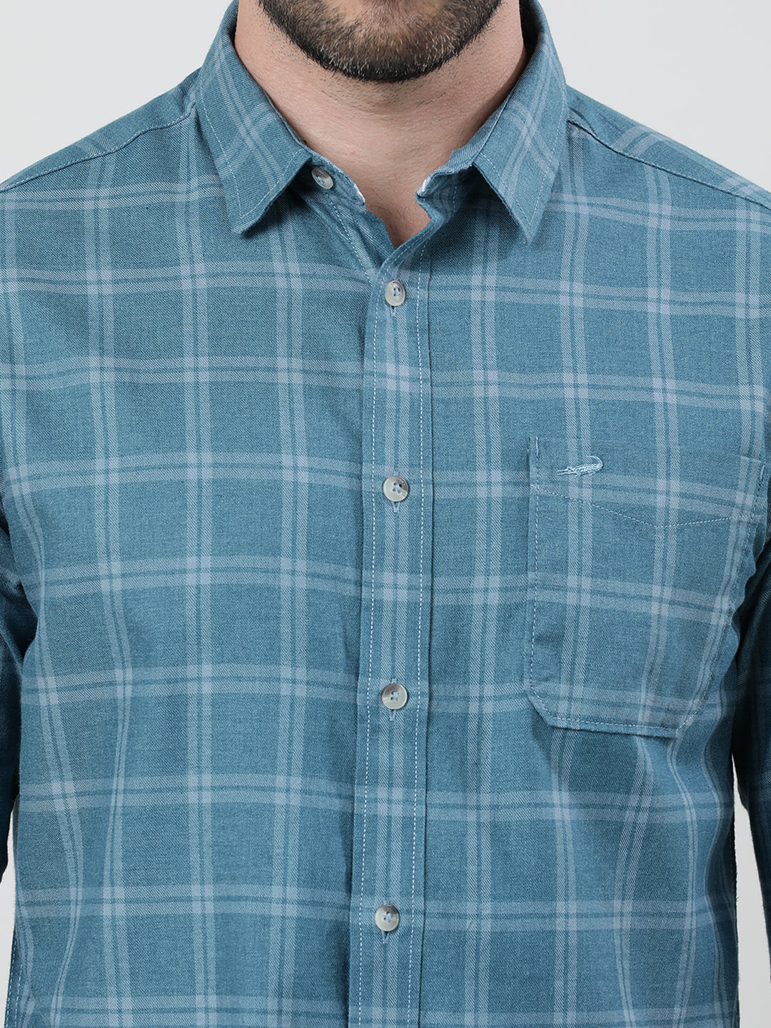 Teal Green Solid Full Sleeve 100% Cotton Shirt